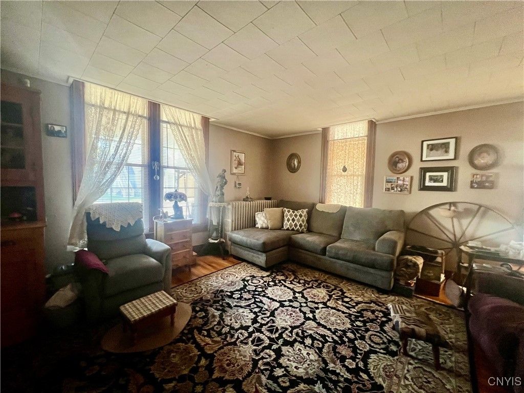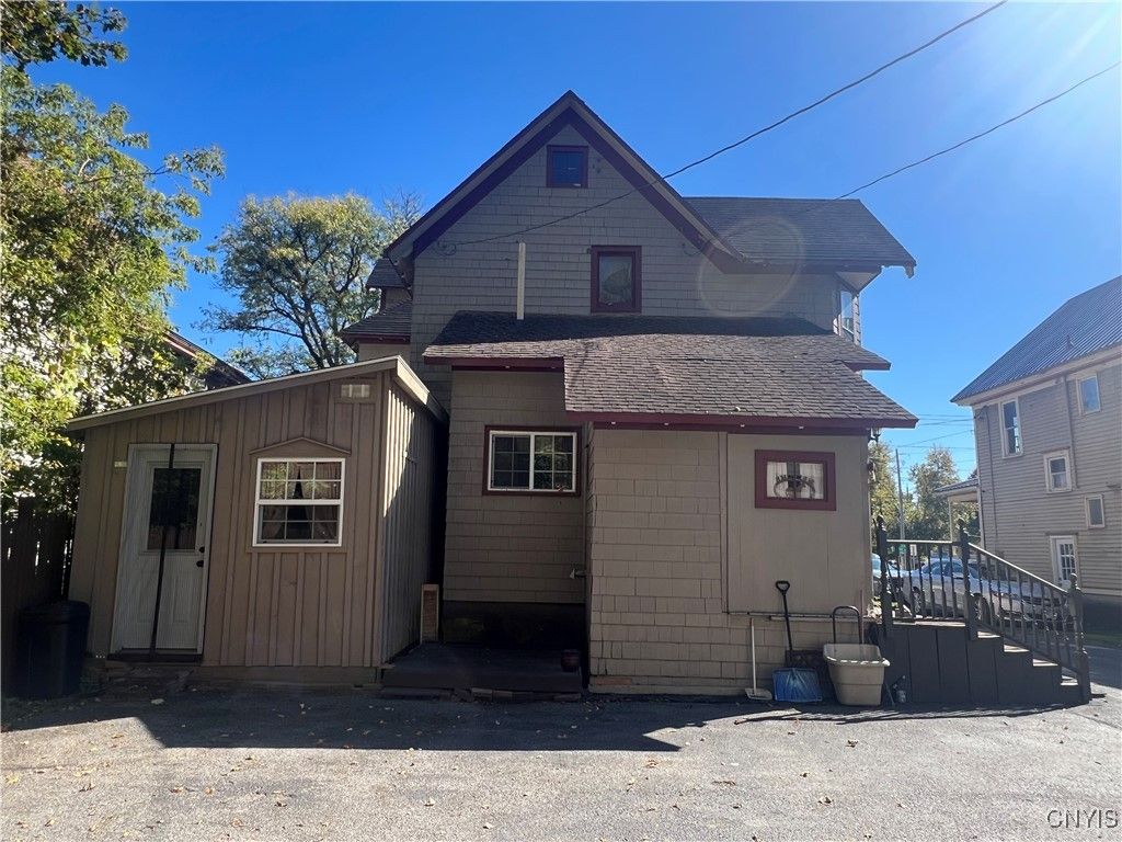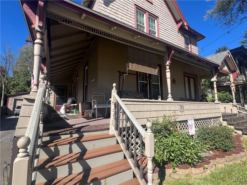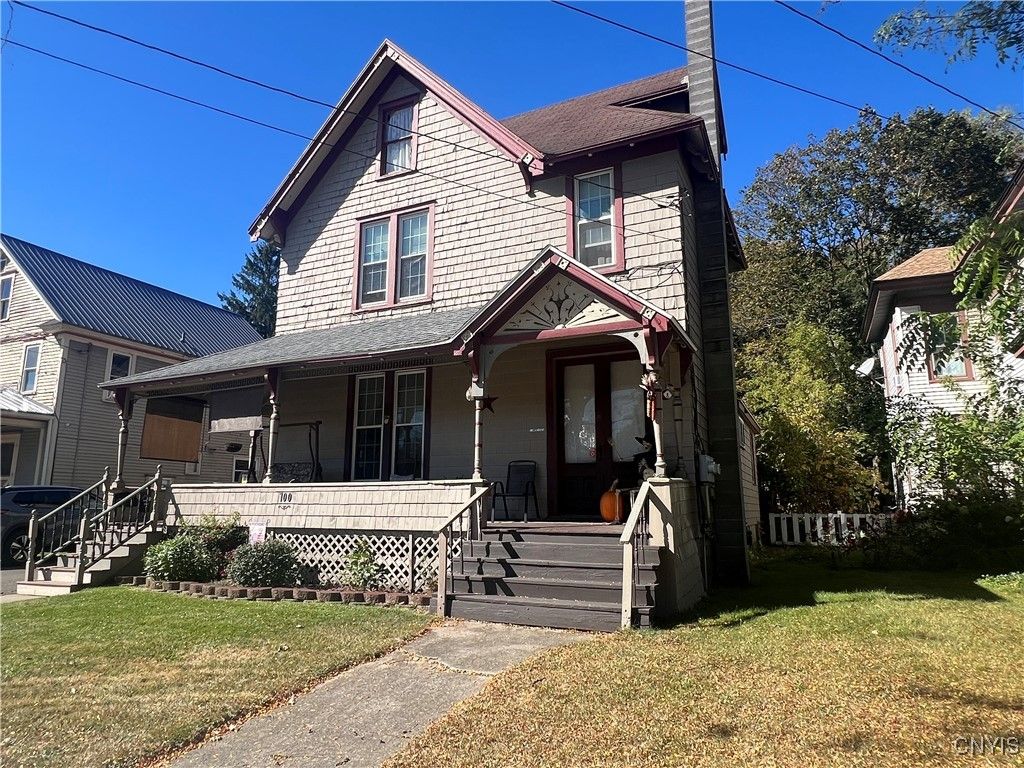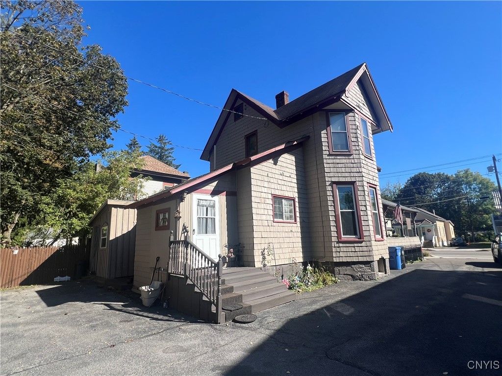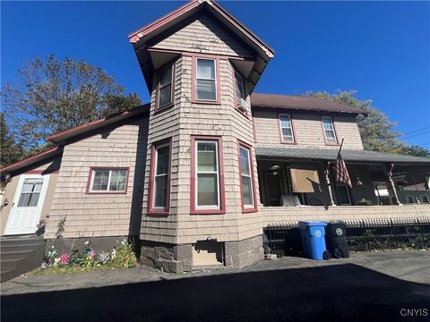 Welcome to this unique 2 story home centrally located in the City of Cortland. Close to all amenities! Shopping, groceries, restaurants, hospitals, parks and so much more. Beautiful front porch for relaxing or watching cars go by. The front porch enters into the dining room, hardwood floors, old wood door trimming, cute kitchen, large living room, one bedroom and bath down. Currently the upstairs is rented which has full amenities, 2 bedrooms and bath, and would make a great in-law suite. Full basement, currently washer and dryer in the kitchen, there is hook up in the basement also. 2 car plus detached garage, that was once a carriage house for storage of horse drawn wagons, with overhead opener and walk-in door, so much storage.This home has so much to offer, black top driveway, and a separate cute shed along side the home. Great for entertaining, play house and endless opportunities. Make your appt. today! To see for yourself!!