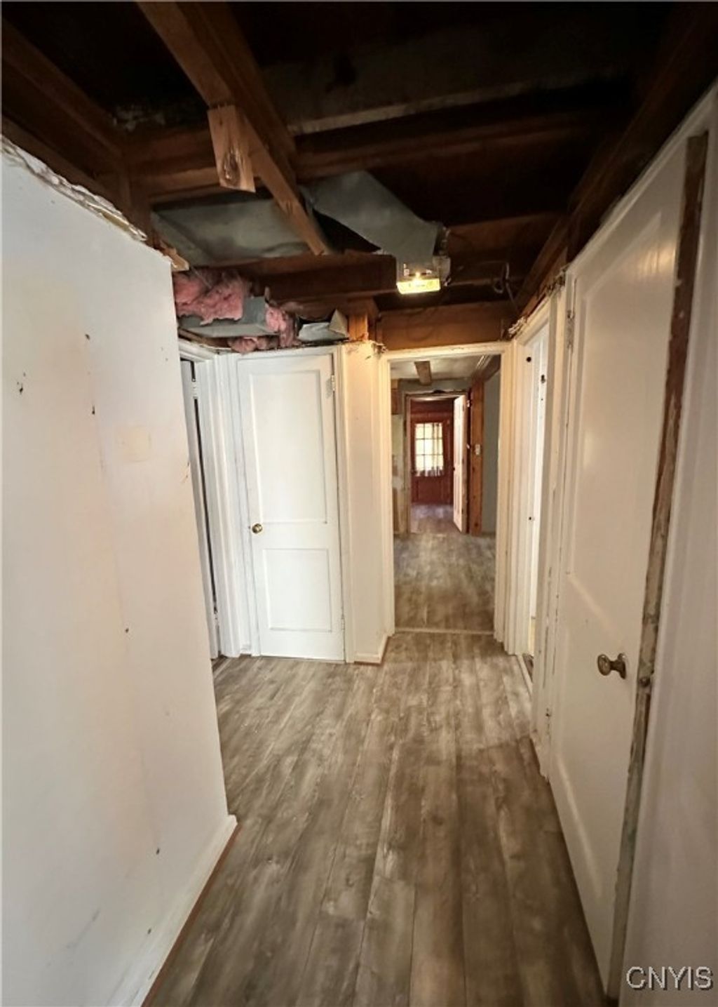 Great opportunity for an investor or owner occupant that is willing to put in some sweat equity. This home features over 1700 sq ft of living space with 3 bedrooms, 1 bathroom, and sits on almost a 1/2 acre lot. The first floor includes a eat in kitchen, spacious family room, bathroom, nice size laundry room, and sitting room/mud room. The second floor has 2 nice size bedrooms. A long breezeway connects the home and the 2 car garage. The private back yard is huge and offers so much potential. This is also a large side yard that offers a nice buffer. This home completed can be worth in excess of $200K. Don't miss out on this opportunity!!
