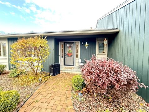 Exceptional opportunity in the highly sought-after Spyglass Townhome & Patio Home Community. Located on a quiet cul-de-sac with minimal traffic and added privacy, this patio home stands out as one of the finest in the development. The main level offers 2,285 sq ft of thoughtfully designed living space, beginning with a spacious foyer that opens into a dramatic great room - ideal for both everyday living and effortless entertaining. Tile flooring flows throughout the living and dining areas, and the open-concept layout can comfortably accommodate gatherings of over 30 people. The bright, highly functional kitchen features granite countertops and a convenient passthrough to the den, library, or office - an inviting space with spectacular hardwood floors, skylights, a gas fireplace, and a large window that fills the room with natural light. This area opens naturally to a private Stampcrete patio and peaceful backyard setting. The primary suite features a generous walk-in closet and a spa-like full bath with radiant in-floor heating. The second bedroom offers remarkable closet space, and the nearby hall bath provides comfort for guests or family. Additional conveniences include first-floor laundry and an attached two-car garage with a limited lifetime-guarantee Penntek floor coating. The unfinished lower level - accessible from inside the home and directly from the garage - offers excellent potential for storage, a workshop, gym, or future living space. Recent updates include a new roof, new skylights, and a whole-house generator. The HOA covers exterior painting, mowing, plowing, front sidewalk shoveling, shrub trimming, and more, ensuring low-maintenance living. A rare blend of privacy, openness, and convenience - all within an impeccably maintained community.