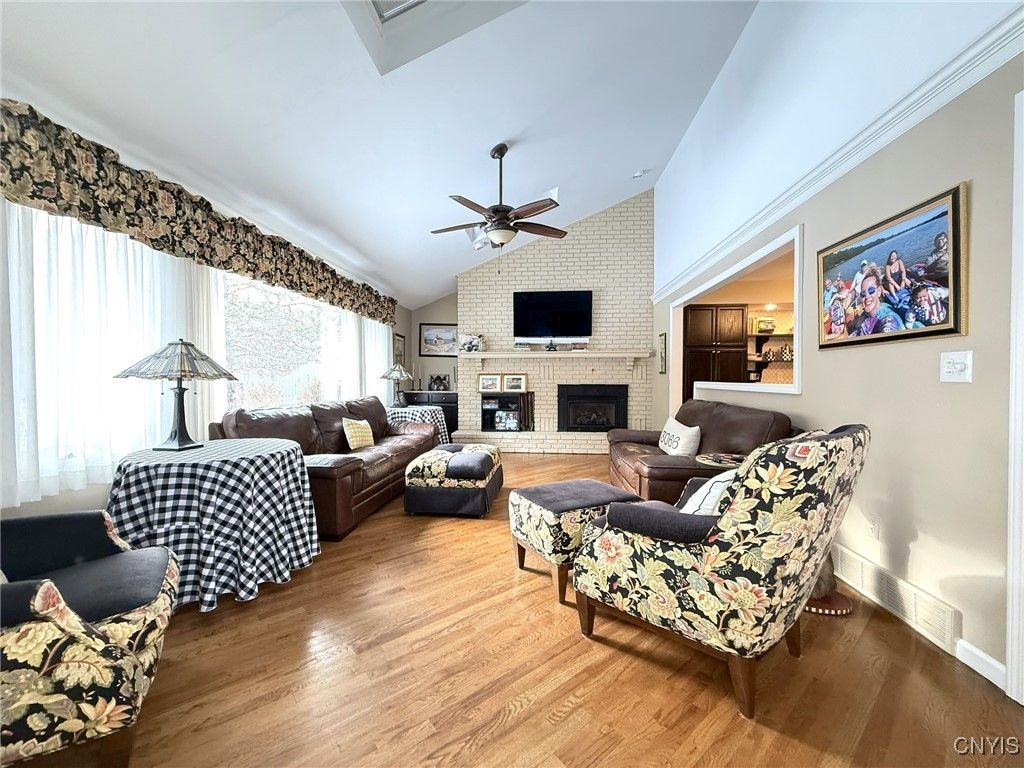 Exceptional opportunity in the highly sought-after Spyglass Townhome & Patio Home Community. Located on a quiet cul-de-sac with minimal traffic and added privacy, this patio home stands out as one of the finest in the development. The main level offers 2,285 sq ft of thoughtfully designed living space, beginning with a spacious foyer that opens into a dramatic great room - ideal for both everyday living and effortless entertaining. Tile flooring flows throughout the living and dining areas, and the open-concept layout can comfortably accommodate gatherings of over 30 people. The bright, highly functional kitchen features granite countertops and a convenient passthrough to the den, library, or office - an inviting space with spectacular hardwood floors, skylights, a gas fireplace, and a large window that fills the room with natural light. This area opens naturally to a private Stampcrete patio and peaceful backyard setting. The primary suite features a generous walk-in closet and a spa-like full bath with radiant in-floor heating. The second bedroom offers remarkable closet space, and the nearby hall bath provides comfort for guests or family. Additional conveniences include first-floor laundry and an attached two-car garage with a limited lifetime-guarantee Penntek floor coating. The unfinished lower level - accessible from inside the home and directly from the garage - offers excellent potential for storage, a workshop, gym, or future living space. Recent updates include a new roof, new skylights, and a whole-house generator. The HOA covers exterior painting, mowing, plowing, front sidewalk shoveling, shrub trimming, and more, ensuring low-maintenance living. A rare blend of privacy, openness, and convenience - all within an impeccably maintained community.