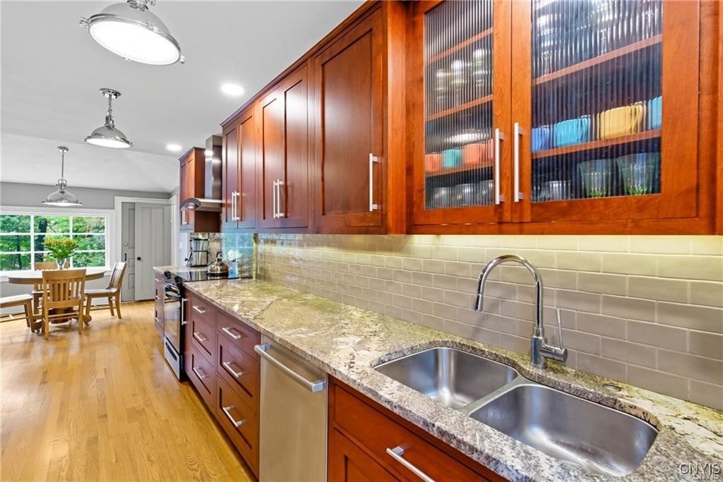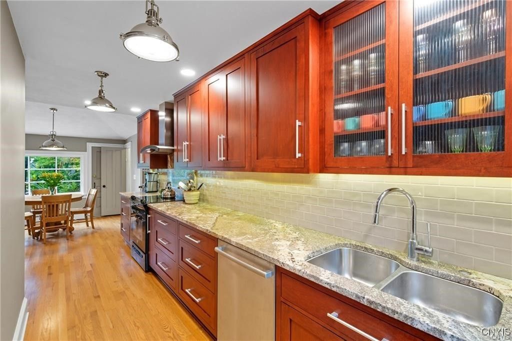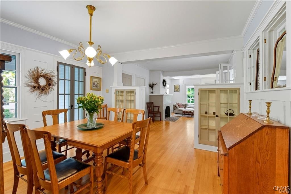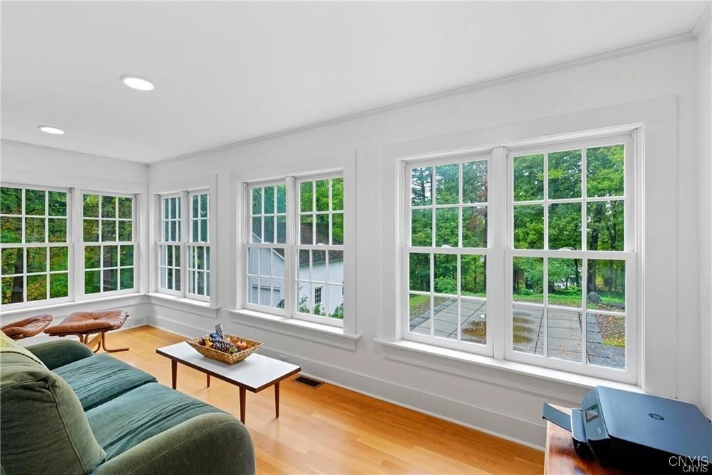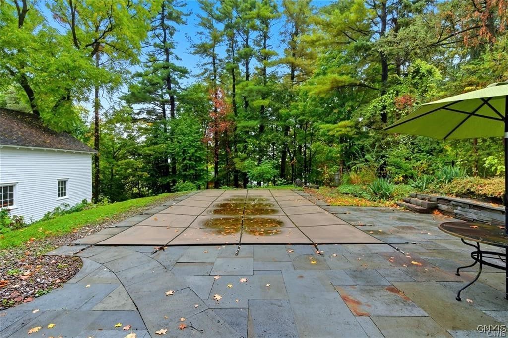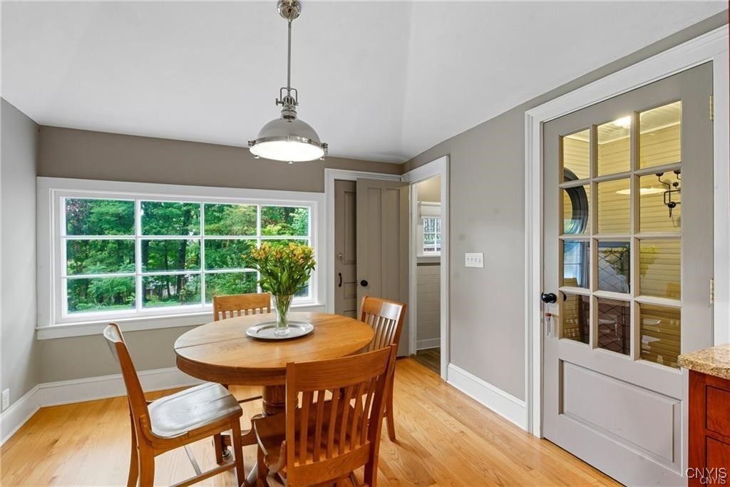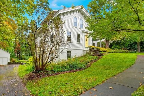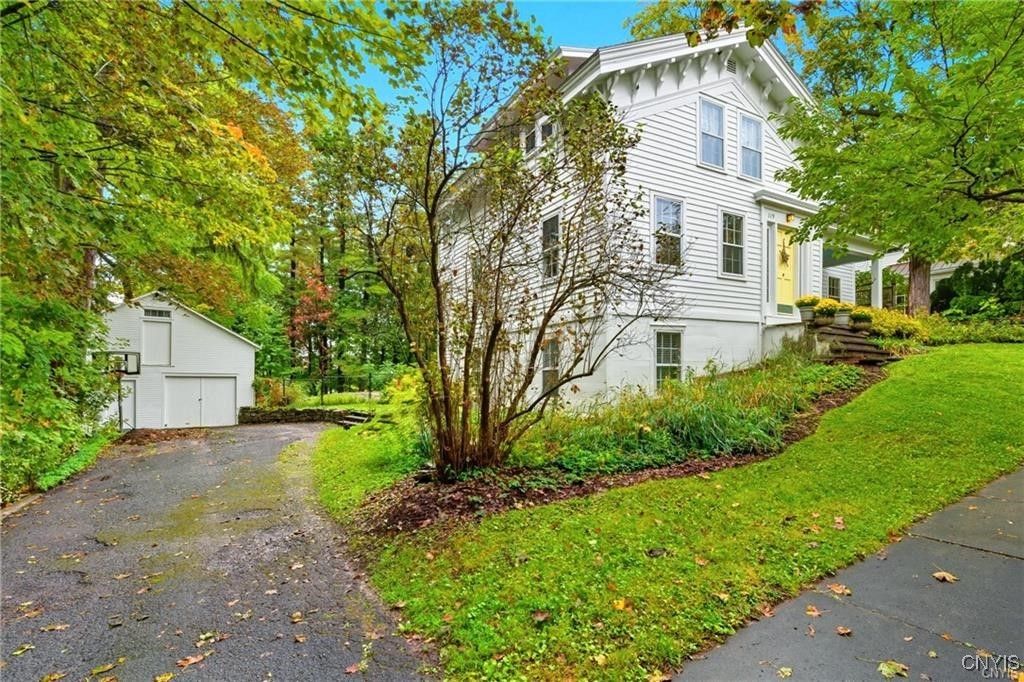 Step into timeless elegance with this 1870 Vernacular Greek Revival in the highly sought-after Village of Fayetteville. This 4- bedroom, 2.5 bath home beautifully blends historic character with thoughtful modern upgrades. Meticulously maintained, it showcases a New custom kitchen 2014, freshly painted interiors, and refinished floors that highlight the home's warmth and charm Outdoors, enjoy a private oasis with a stone patio, and in-ground pool surrounded by custom backyard bluestone, multiple stairs, walls, walkway and low voltage lightening great for entertaining or sit on the patio for a quiet morning coffee. The historic carriage house offers flexible use as a garage or the opportunity to create additional living space. New water line from the street to the house, new copper plumbing, chimney repointed above roof line, exterior painted 2024, new heat exchanger. Set in a welcoming neighborhood with sidewalks, this home is just a short walk to restaurants, shops, banking, the post office, and more. Located within an award-winning school district, this property offers the best of village living - historic charm, modern comfort, and everyday convenience. Pool area has a rough in for a future waterfall feature that would recycle from the pool. Porch was enclosed and is now part of the house, which adds 377 square feet (measured by seller) not listed in public records.
