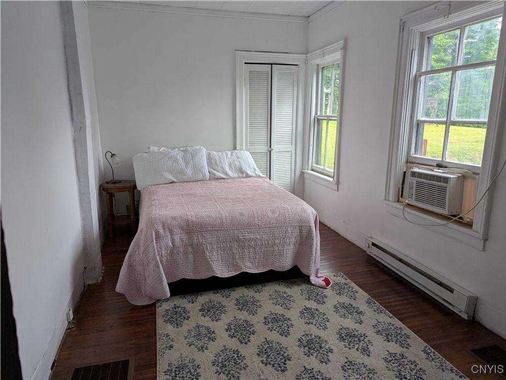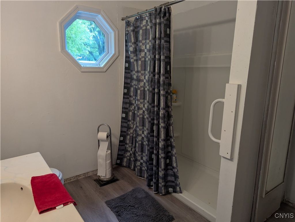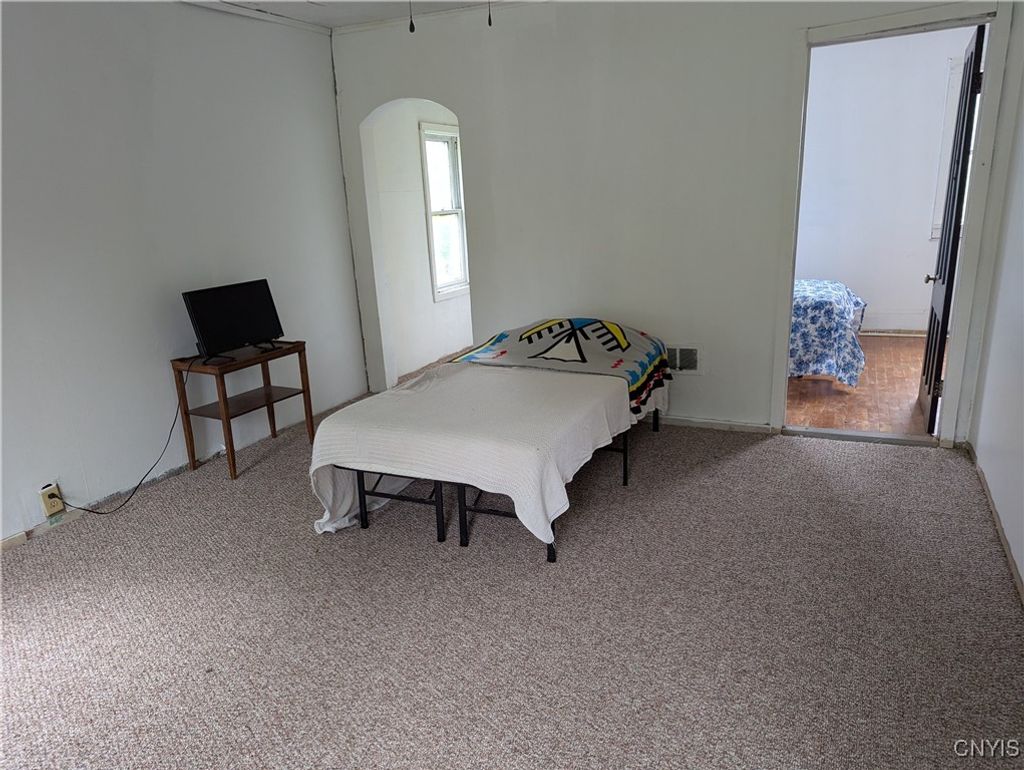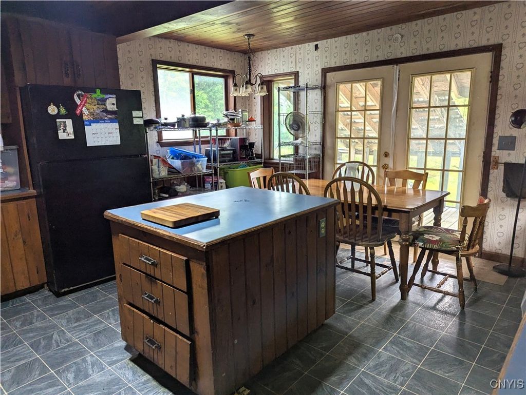Welcome to this Boonville village home featuring an enclosed porch, refinished hardwood flooring and first floor bedroom and bathroom. The spacious country kitchen has a large center island and comes fully applianced with electric stove, refrigerator and dishwasher. At the back of the kitchen is a rear deck with new support beams overlooking the back yard. And off the kitchen is the laundry room and basement access. On the second level are two adjoining bedrooms and walk in attic space for storage. All of this comes with a circular driveway, barn style garage/storage space, 6 new windows, 2 new exterior doors, fresh paint throughout and over 4 acres of land with a stream running at the rear of the property.