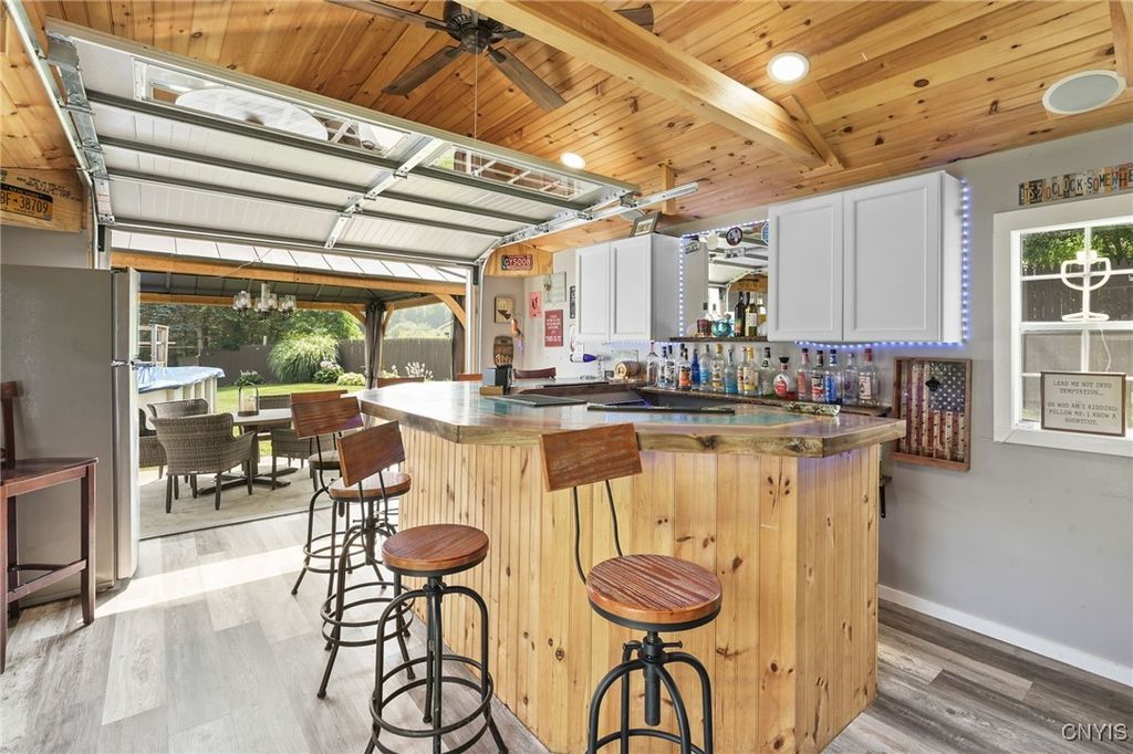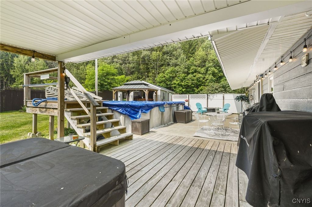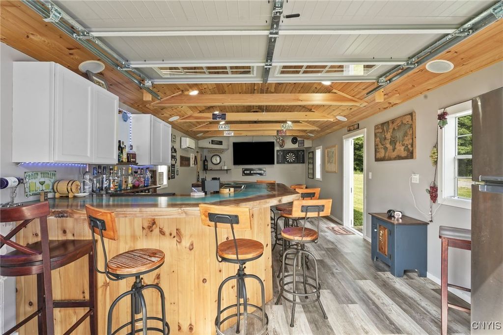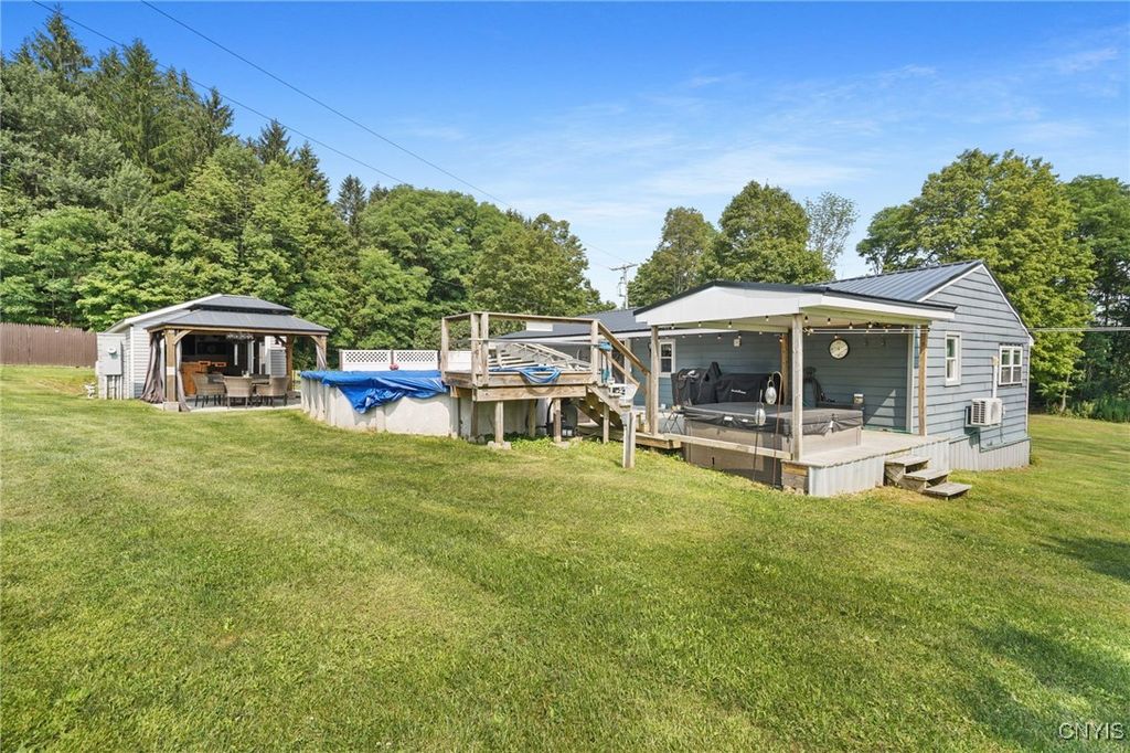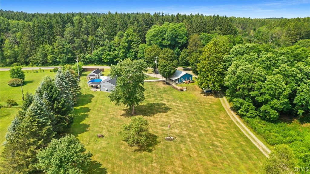 A gorgeous very well-maintained ranch home equipped with an efficient heat pump and central air conditioning. The property and listing details include two parcels. Lick Street property offers unparalleled privacy with vast stretches of state land nearby. Perfect for nature lovers and outdoor enthusiasts. Relax and entertain in style with your very own heated and cooled bar area, seamlessly connected to the pool patio. Enjoy sunny days by the 15' x 24' above-ground chlorine pool or unwind in the 5-year-old hot tub on the stunning concrete patio. You'll love the large 3-bay insulated garage with one heated room upstairs, located down back. The 3-bay garage has solar power and a generator for electric. The heated 2-bay garage is partial insulation and has an expansive rear room that's fully insulated with a heat/AC heat pump. Perfect for a workshop, studio, or year-round workspace. This move-in-ready home truly has it all, privacy, comfort, entertainment area, and plenty of space for work, play, and relaxation! Schedule your showing today or it will be to late!