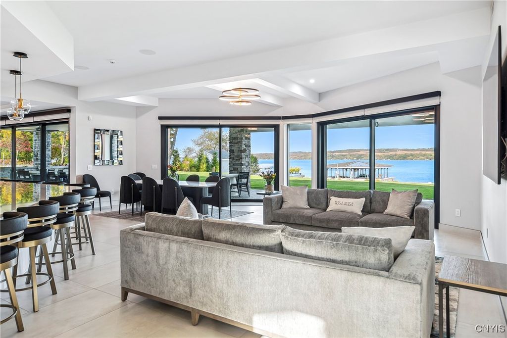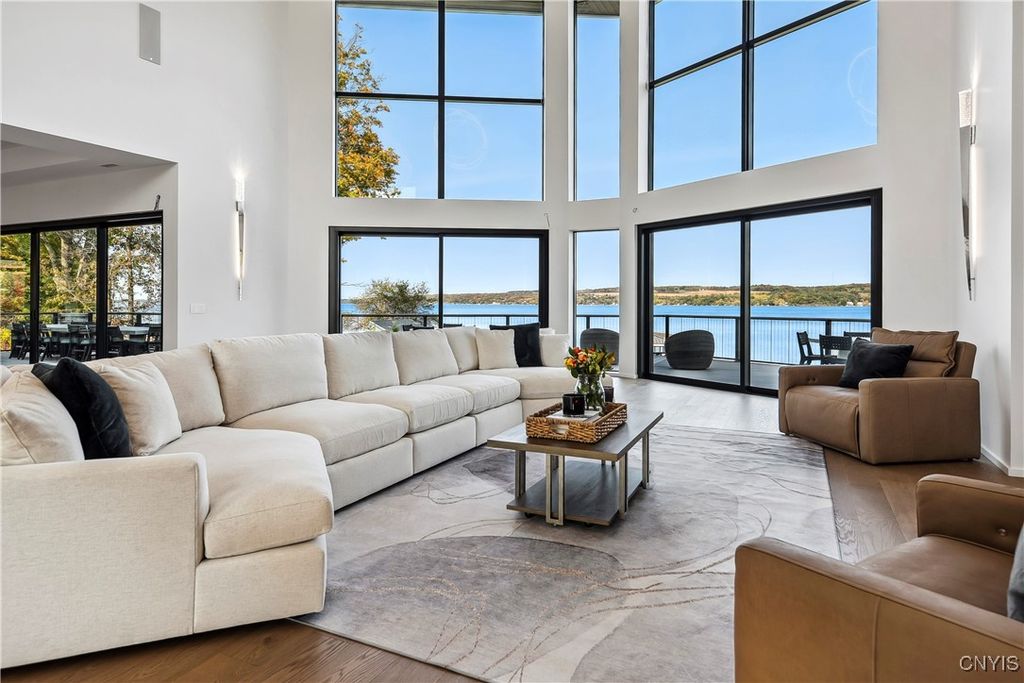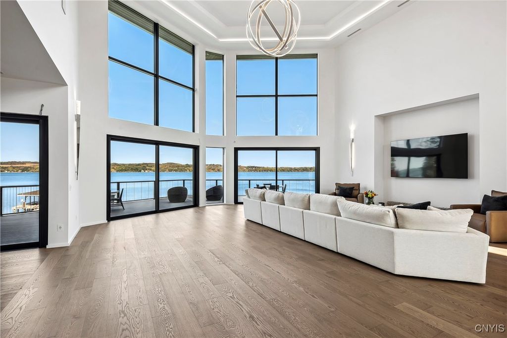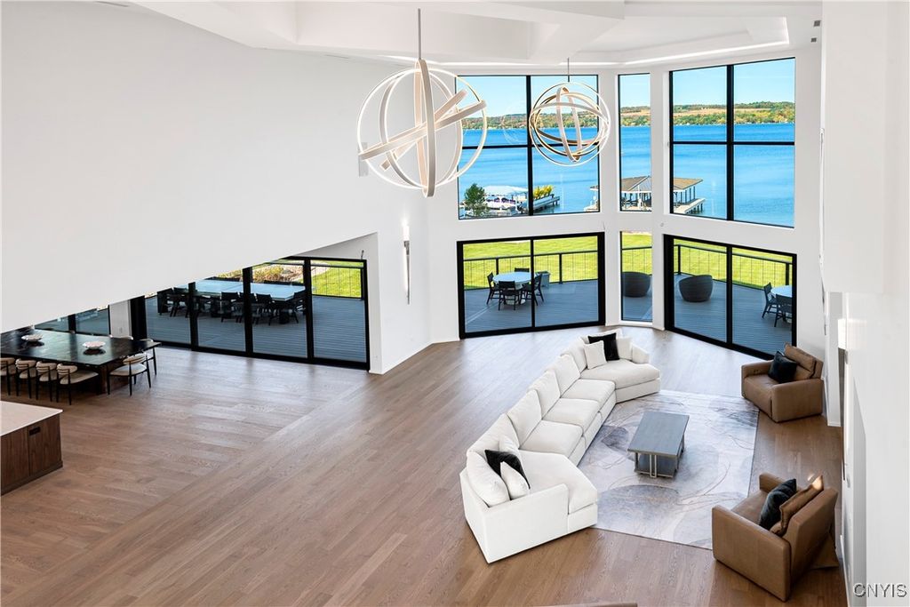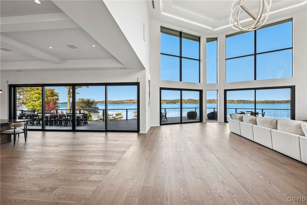 You've reached the pinnacle of success, now come self-actualize at 1812 W Lake Rd and take in this stunning custom-built contemporary home situated on 200 feet of pristine lakefront on Skaneateles Lake. Your fully developed waterfront is perfect for all your lakeside & boating activities & your like new "Mansion" offers luxury living, entertainment & recreation at its finest. Featuring 9 bedrooms, 14 baths, 2 Chef's kitchens, a guest suite, and a full glass elevator accessing all levels of the home, no detail has been overlooked. State-of-the-art technology including Savant WIFI controlled custom blinds and lighting scenes, along with top-notch infrastructure, ensure convenience and comfort. Boasting over 12,000 square feet of living space with an adaptable floor plan, each bedroom comes complete with its own en-suite bath and custom California closets. The home combines open space and privacy, providing a truly luxurious living experience. Located in the prestigious Skaneateles School District and just minutes from the charming Village of Skaneateles, this home offers an extensive list of impressive features and amenities. Make this incredible property your own.