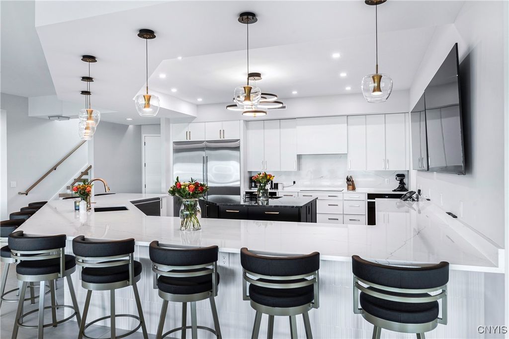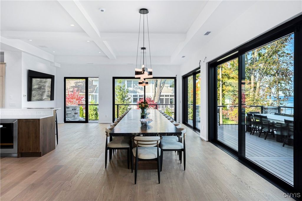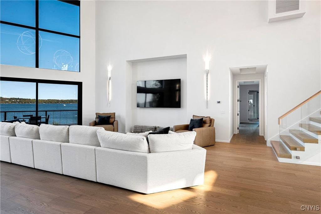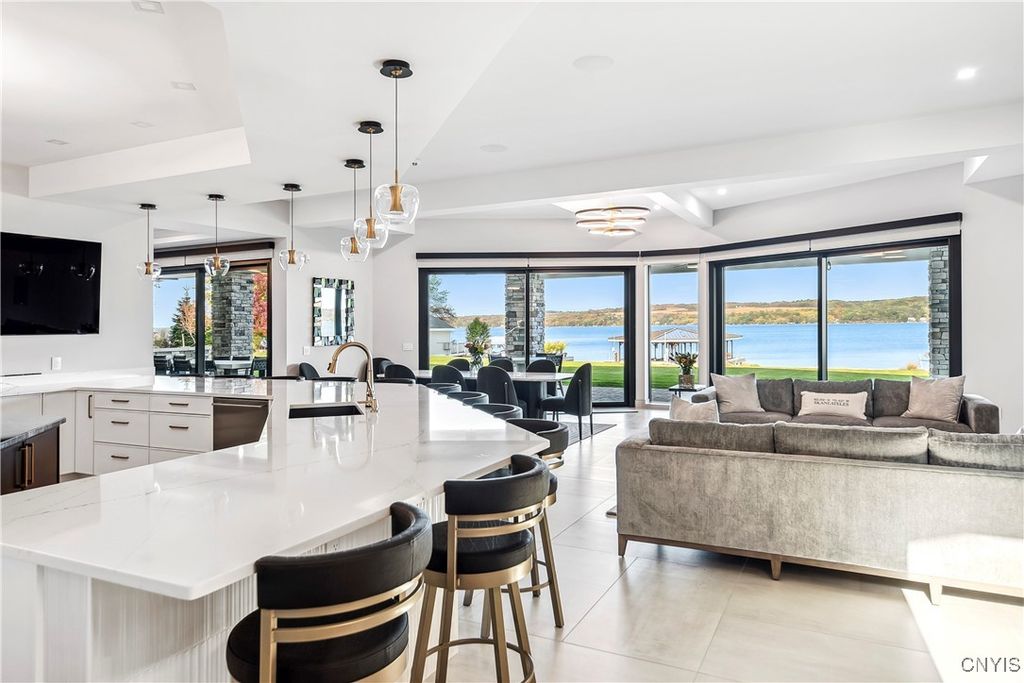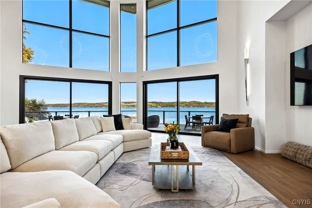 You've reached the pinnacle of success, now come self-actualize at 1812 W Lake Rd and take in this stunning custom-built contemporary home situated on 200 feet of pristine lakefront on Skaneateles Lake. Your fully developed waterfront is perfect for all your lakeside & boating activities & your like new "Mansion" offers luxury living, entertainment & recreation at its finest. Featuring 9 bedrooms, 14 baths, 2 Chef's kitchens, a guest suite, and a full glass elevator accessing all levels of the home, no detail has been overlooked. State-of-the-art technology including Savant WIFI controlled custom blinds and lighting scenes, along with top-notch infrastructure, ensure convenience and comfort. Boasting over 12,000 square feet of living space with an adaptable floor plan, each bedroom comes complete with its own en-suite bath and custom California closets. The home combines open space and privacy, providing a truly luxurious living experience. Located in the prestigious Skaneateles School District and just minutes from the charming Village of Skaneateles, this home offers an extensive list of impressive features and amenities. Make this incredible property your own.