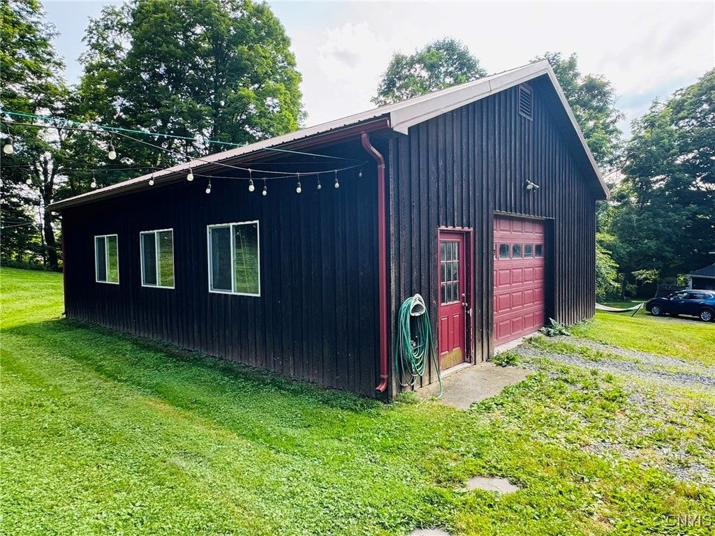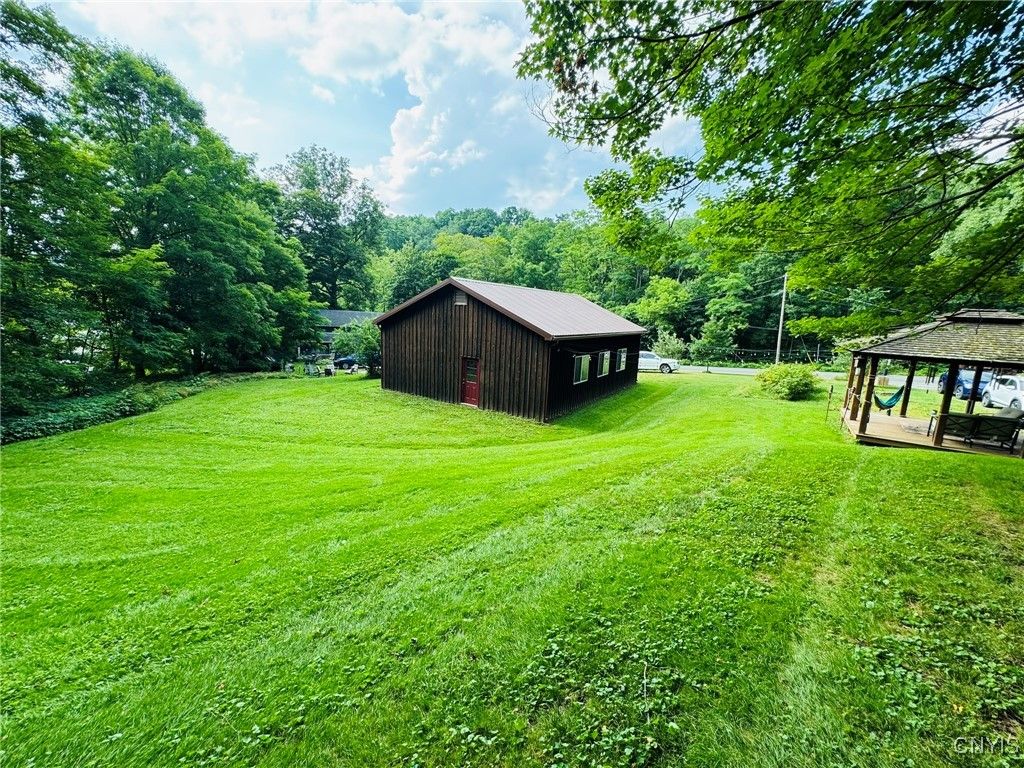 Enjoy the best of both worlds - peaceful country living with convenient village amenities! Nestled on 1.44 acres just outside the village of Moravia, this charming home invites you to embrace the outdoors with fruit trees, maple taps, and a lovely gazebo for relaxing. You're just a short trip to the grocery store and the scenic trails of Fillmore Glen State Park, village dining, and the lake! The property includes two sheds plus a spacious 20x40 outbuilding with a concrete floor, running water, and separate electric - perfect for hobbies, storage, or a workshop. Enjoy the ease of first-floor living with a bedroom, full bath with walk-in shower, and laundry. The kitchen features granite countertops and stainless steel appliances. Upstairs offers two more bedrooms, a second full bath, and a built-in hallway office - ideal for working from home. This home is being sold due to a military relocation, otherwise the sellers would live there forever!