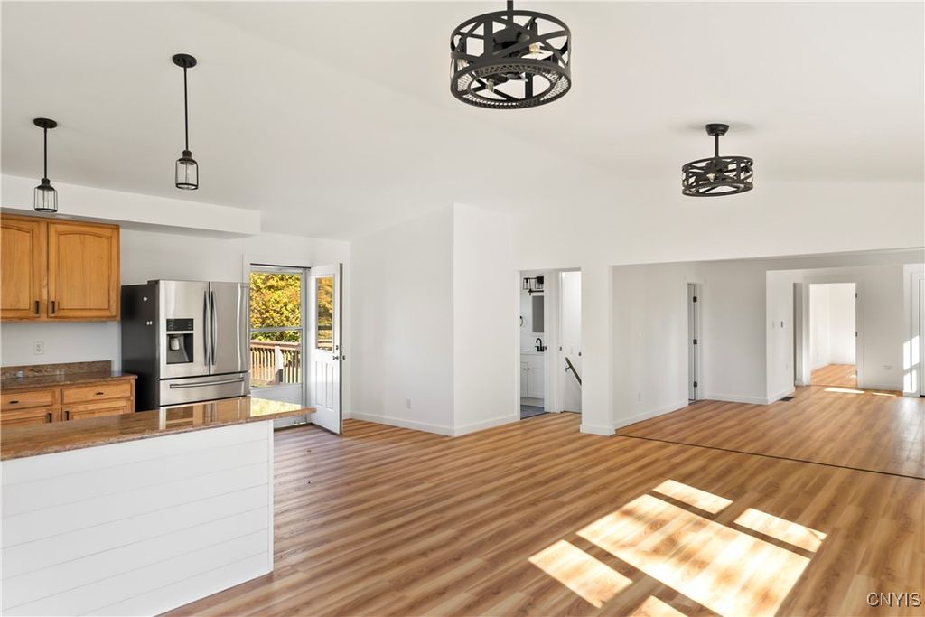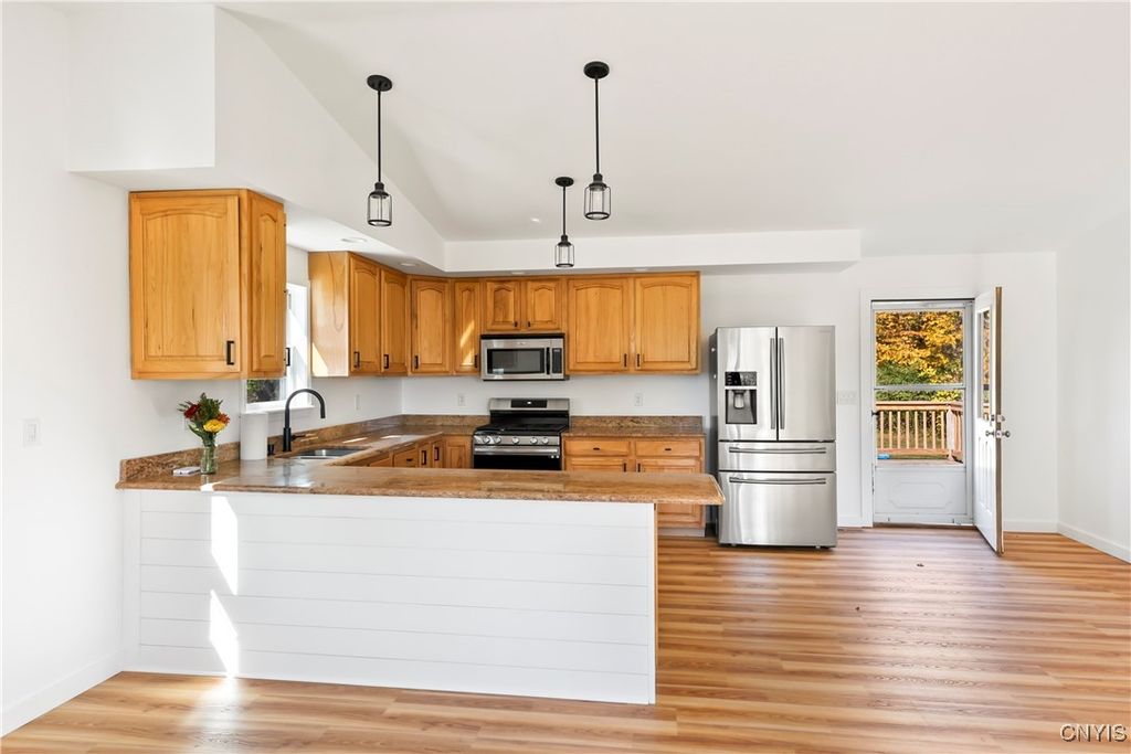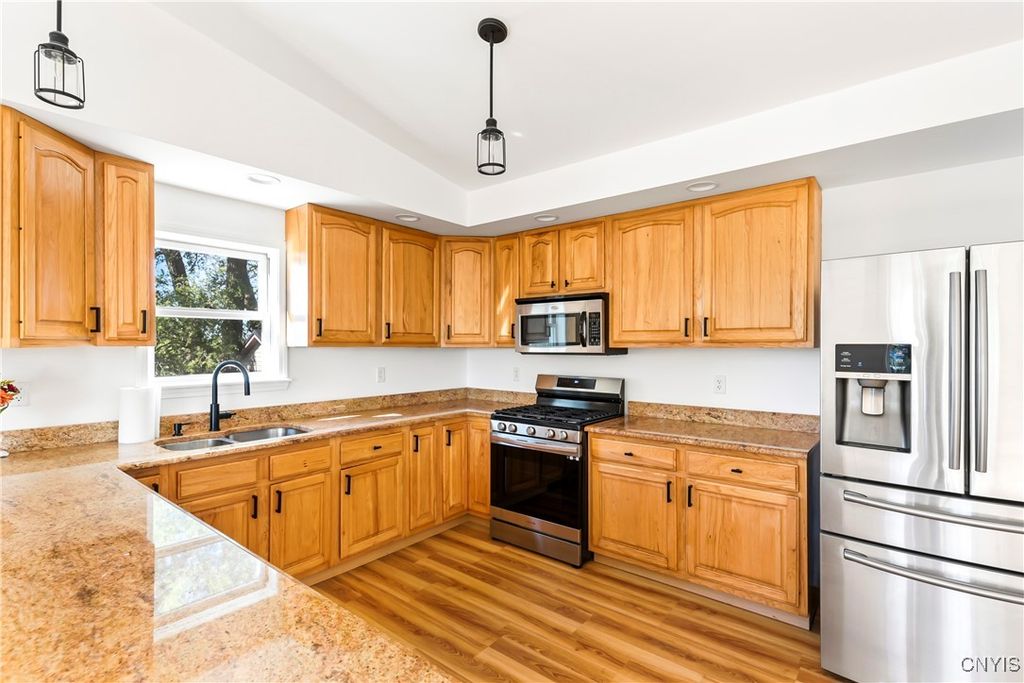 Experience country living at its finest in this stunning, fully renovated home set on more than an acre of peaceful land. Thoughtfully updated from top to bottom, it perfectly blends modern design with timeless rural charm. Step inside to discover an open and inviting floor plan with all-new flooring throughout and freshly painted interiors that create a bright, welcoming atmosphere. The gorgeous kitchen features granite countertops, brand-new stainless-steel appliances, and stylish lighting - ideal for both everyday living and entertaining. Enjoy the comfort of updated full and half baths, upgraded electrical, new storm doors, and energy-efficient improvements including a new roof and windows. A new water treatment system and well pump add peace of mind. The finished walk-out lower level provides flexible living space, including a bedroom with an egress window - perfect for guests or multi-generational living. Outside, relax or entertain on one of the three decks: a covered front deck, spacious rear deck, and a private side deck off the primary bedroom. An oversized shed with a garage door offers additional storage or hobby space. With fresh landscaping and plenty of room to enjoy the outdoors, this move-in-ready home combines comfort, style, and the serenity of country living. Some photos have been virtually staged. Actual above grade square footage differs from public records and estimated from the floor plans as 1,548 with an additional 769 square feet in the finished basement for a total of 2,317 square feet.