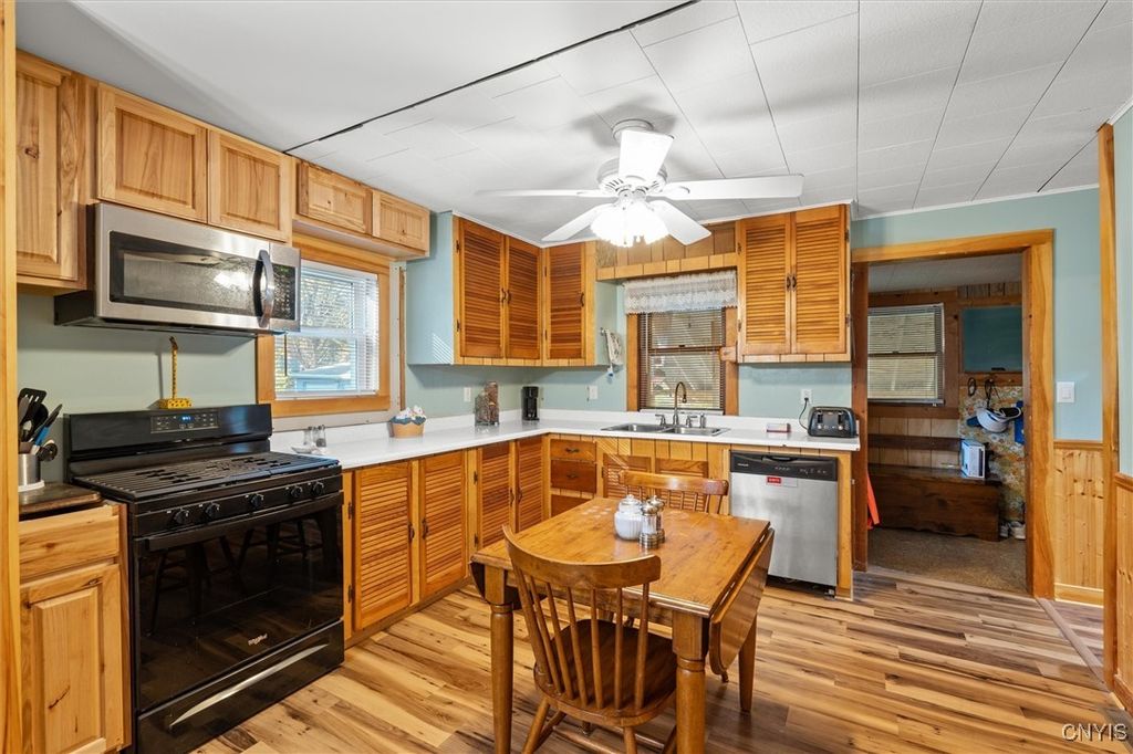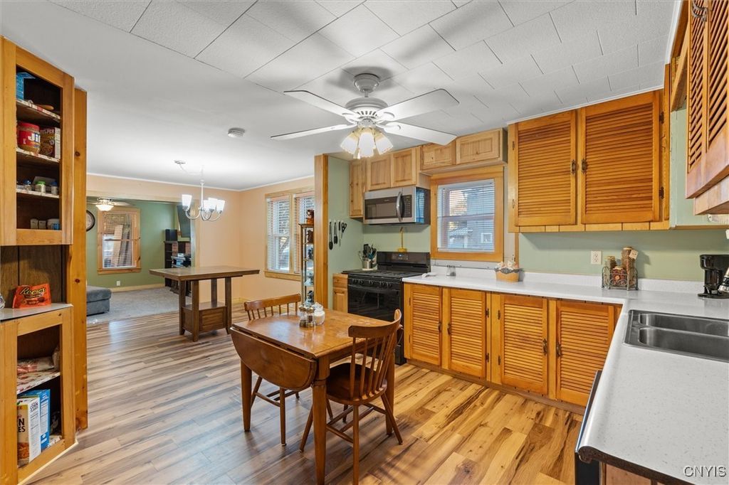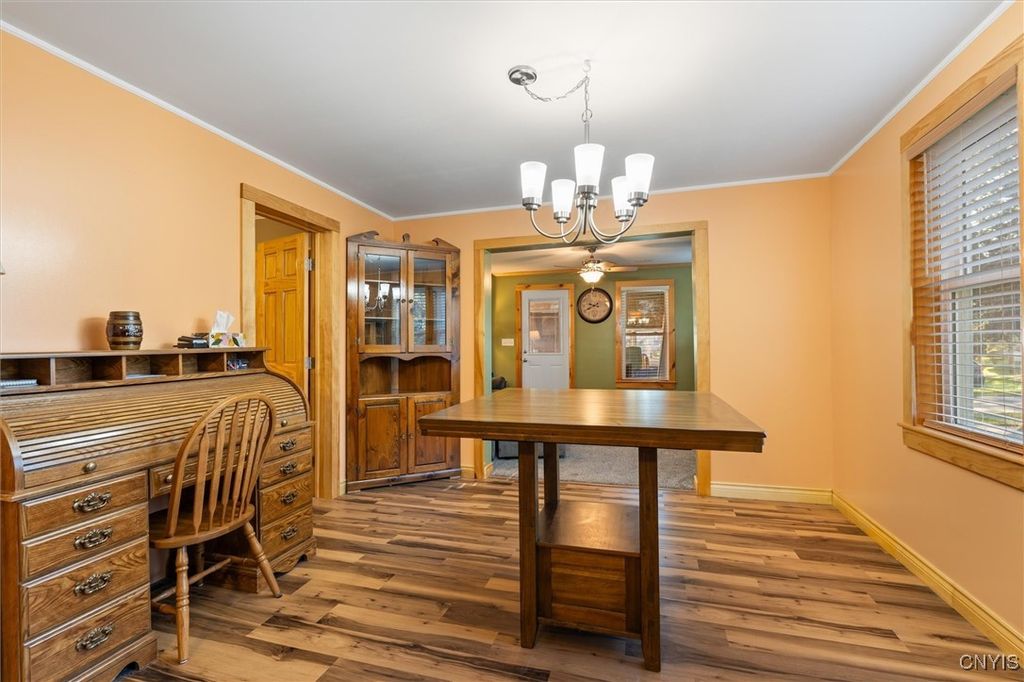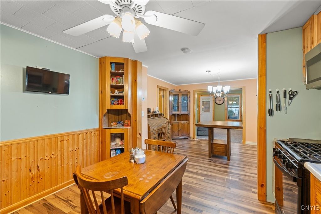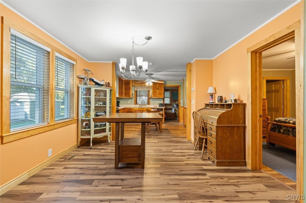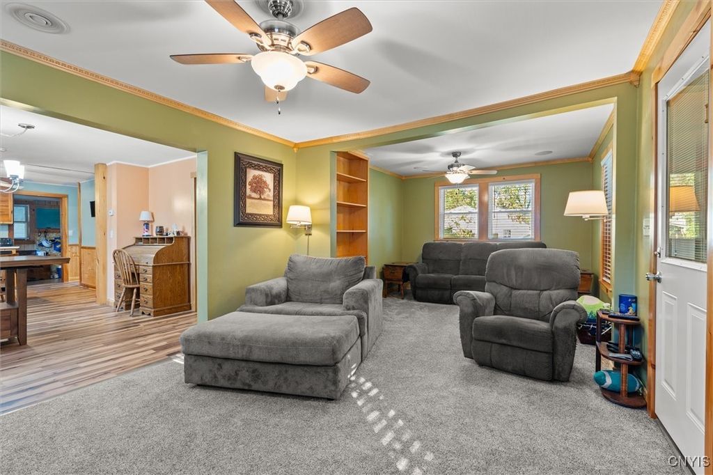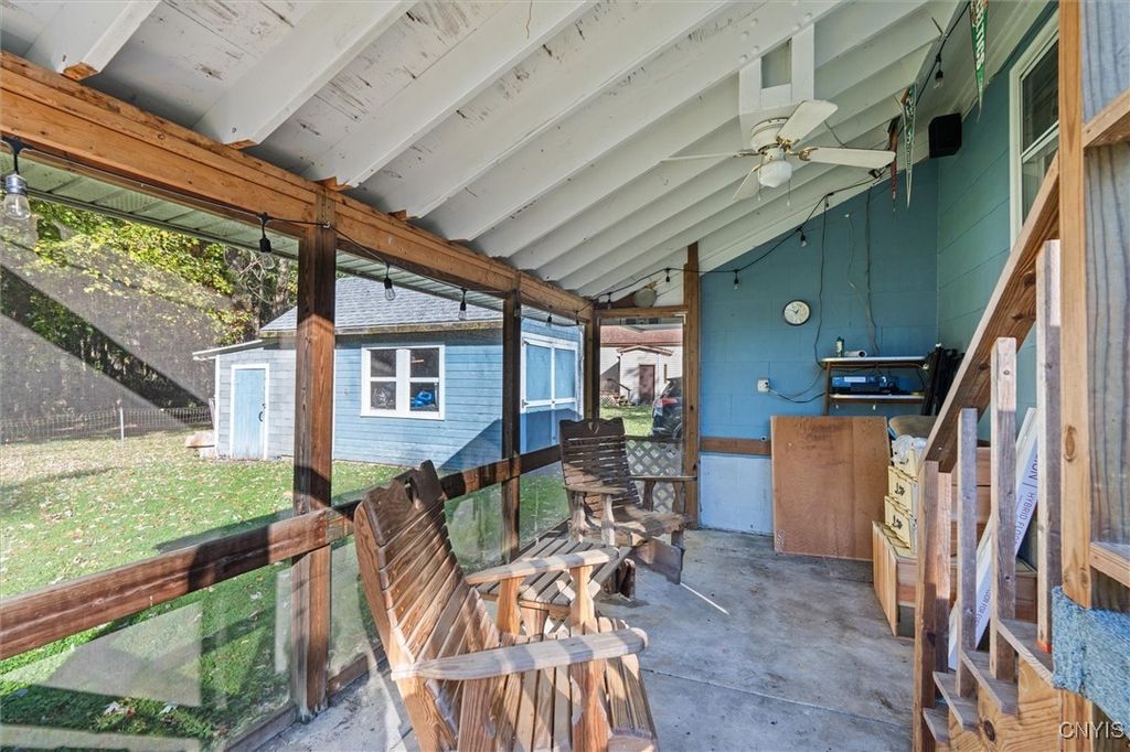 Exceptional Value in Oneida! Don't miss this incredible opportunity to own a spacious home on a double city lot with plenty of room to relax and enjoy. This property features two garages and two driveways. A 2-car garage to park your cars plus an additional 1-car garage currently used as a workshop, perfect for hobbyist or extra storage. Inside, you'll find 4 bedrooms, including a first-floor primary suite complete with laundry and a private 1/4 bath for convenience. The remodeled full bath on the first floor adds a modern touch, while the enclosed front porch, back mudroom, and screened-in back porch provide versatile spaces for every season. A rare find offering space, function, and value, all in a great Oneida location!