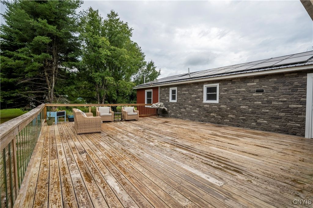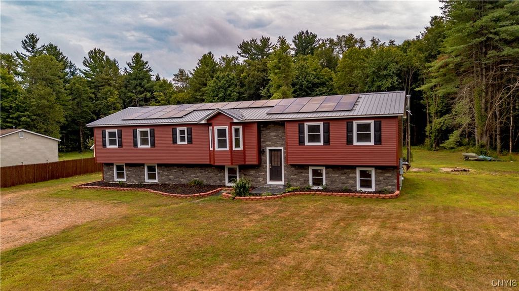 Excited to introduce this country retreat, 229 County Route 23a! Situated on nearly 1.5 acres in the Central Square District & just 30 minutes from the city! This 6 bedroom Raised Ranch has been completely updated into an energy efficient compound! 60 grid-fed solar panels & duel geothermal heating system were installed in 2021, resulting in a $17/month utility bill! Energy Star windows & LED lighting makes this home extremely efficient! Freshly painted with BRAND NEW carpet throughout, you're not going to want to miss this one! An eat-in kitchen with beautiful wooden cabinets, farmhouse sink & SS appliances! A wet bar with extra freezer space divides the kitchen & the ENORMOUS primary suite! The MASSIVE suite features plenty of natural light, room for couches & ensuite with walk-in tiled shower! Enjoy the convenience of first floor laundry & an updated bathroom with tub! Two more generous sized rooms on the first story offering lots of closet space! The ground level includes another entertaining space with wood stove & three more finished bedrooms! The backyard oasis features a 52x30 back deck overlooking your country paradise! A LARGE chicken coop & garden limits your grocery trips & enriches your off grid lifestyle! The detached garage has poured concrete floor & BRAND NEW roof! Entire house & garage has new siding! This home has all the bells & whistles, make it your HOME!