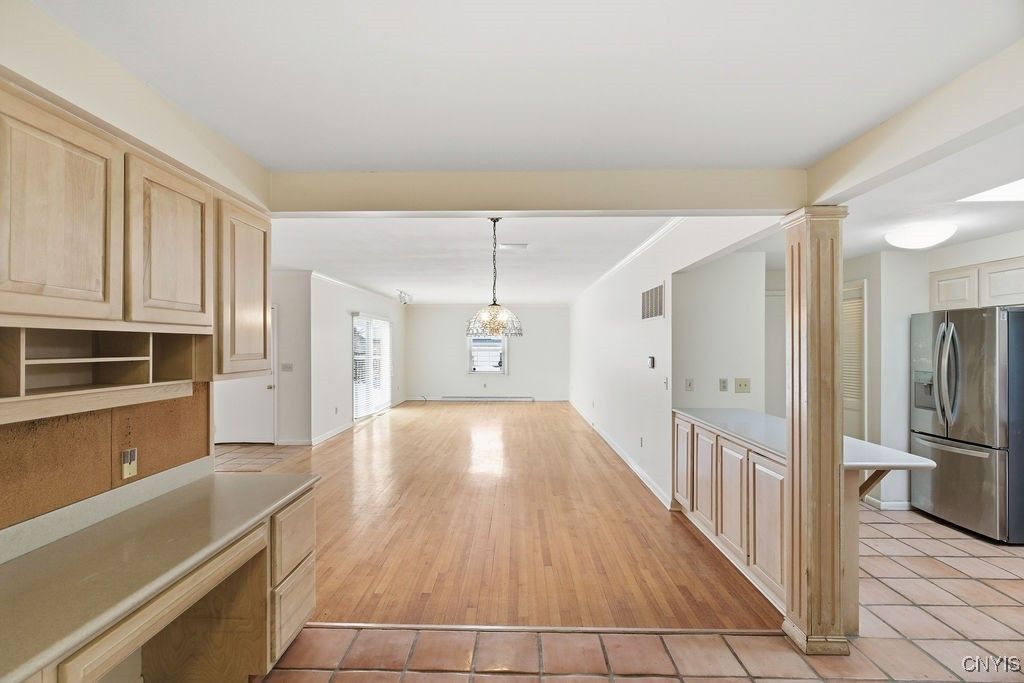 This one level condo at The Orchard in Fayetteville has so many great features and is ready for its new owner. Freshly painted throughout, this home offers an open floor plan, hardwood floors, gas fireplace w/ built-ins and a sliding door that leads to a lovely, private patio. The kitchen features a breakfast bar, stainless steel appliances, a pantry and a convenient coat closet off the garage. A built-in desk area provides the perfect spot for a compact home office. The primary suite offers a walk-in closet and a private bath with ample storage. The second main floor bedroom features double closets and is located next to the second main level full bath. The lower level includes an additional family room, along with adjacent, unfinished storage space that houses the utilities and the washer/dryer. There is a 2 car attached garage. The HOA covers the roof, lawn care, snow removal and more, making everyday living simple and stress-free. Deadline for offers is Sunday 2/8 at Noon.