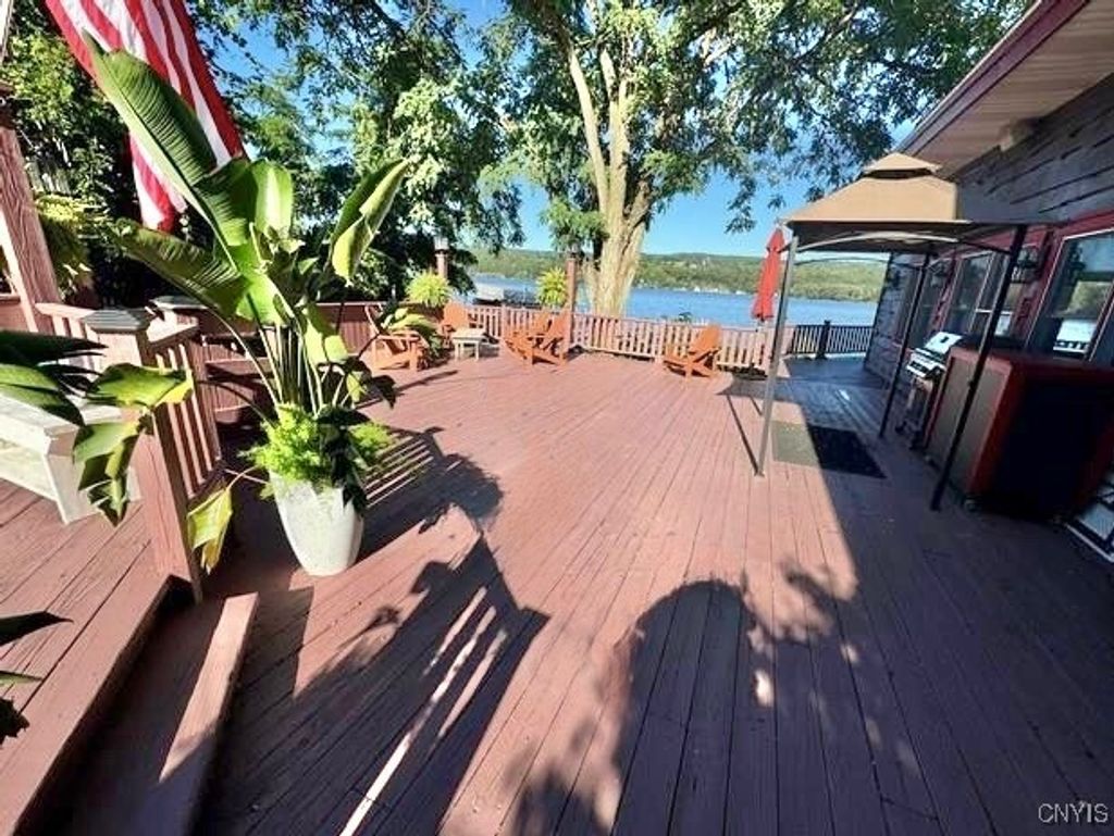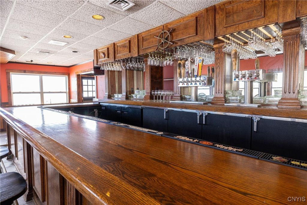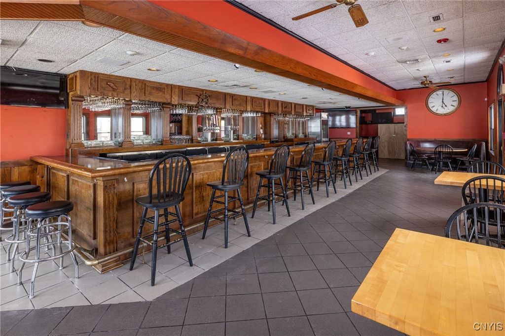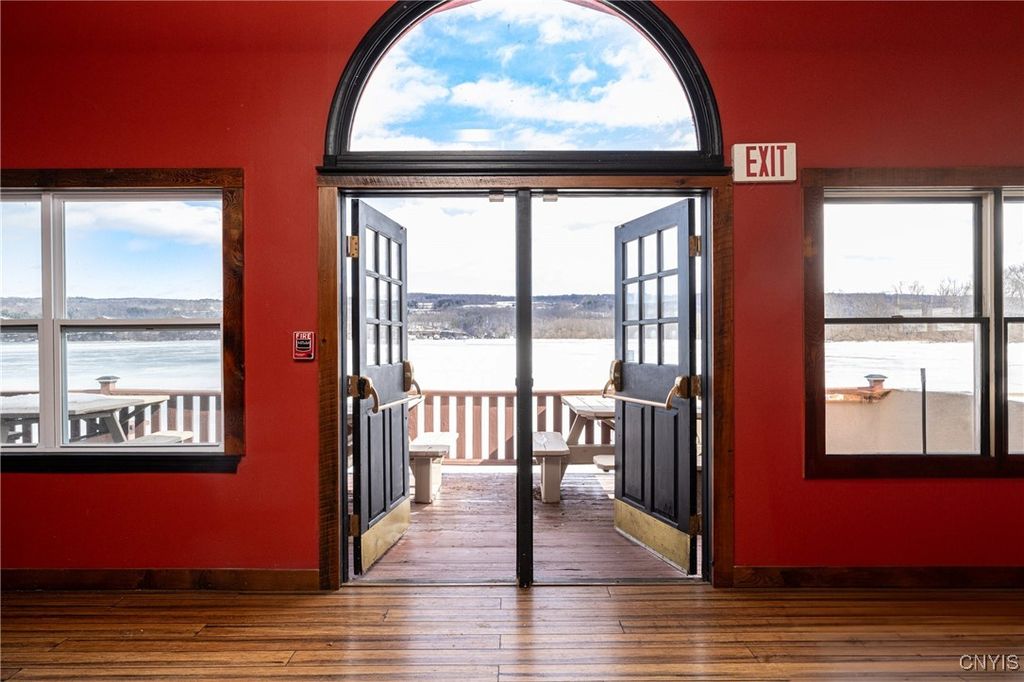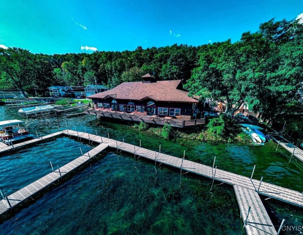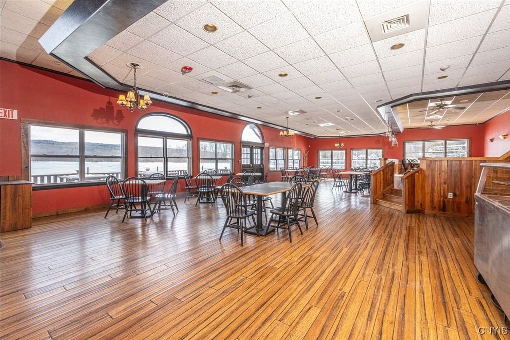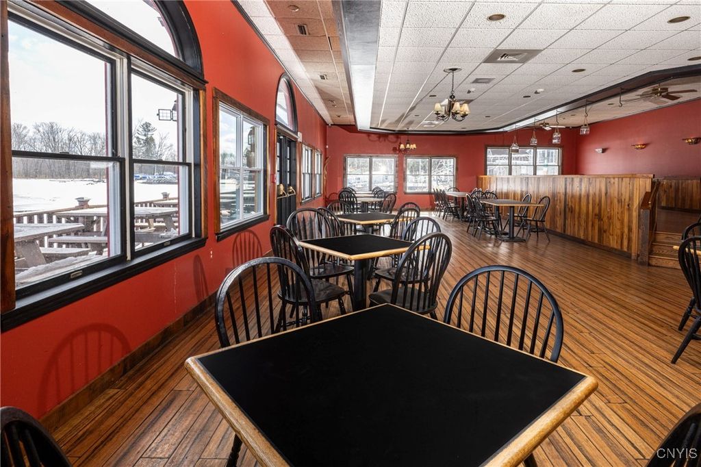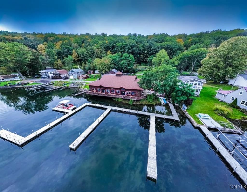Owasco Lake property with 140 feet level lake front, multiple docks, lakeside deck, situated on half an acre is being offered turn-key. This southwestern shore structure is just shy of 4700 sq ft most recently operated as a restaurant / bar offers a huge dining room overlooking the lake, full bar in separate tavern room, commercial kitchen, restrooms, massive deck for seasonal seating, ample parking, and multiple docks for waterfront access. Recent updated mechanicals and cosmetics include central AC, 2 furnaces, hot water heater, water filtration system (ability to draw from lake / spring), roof, painted siding and flooring. Property is offered as both a single-family residence and as a commercial listing due to sizable waterfront presence, building footprint, zoning within the township; create your dream lake house, event center, condos, short term rentals or other investment opportunities! Listed in MLS as COM S1613989