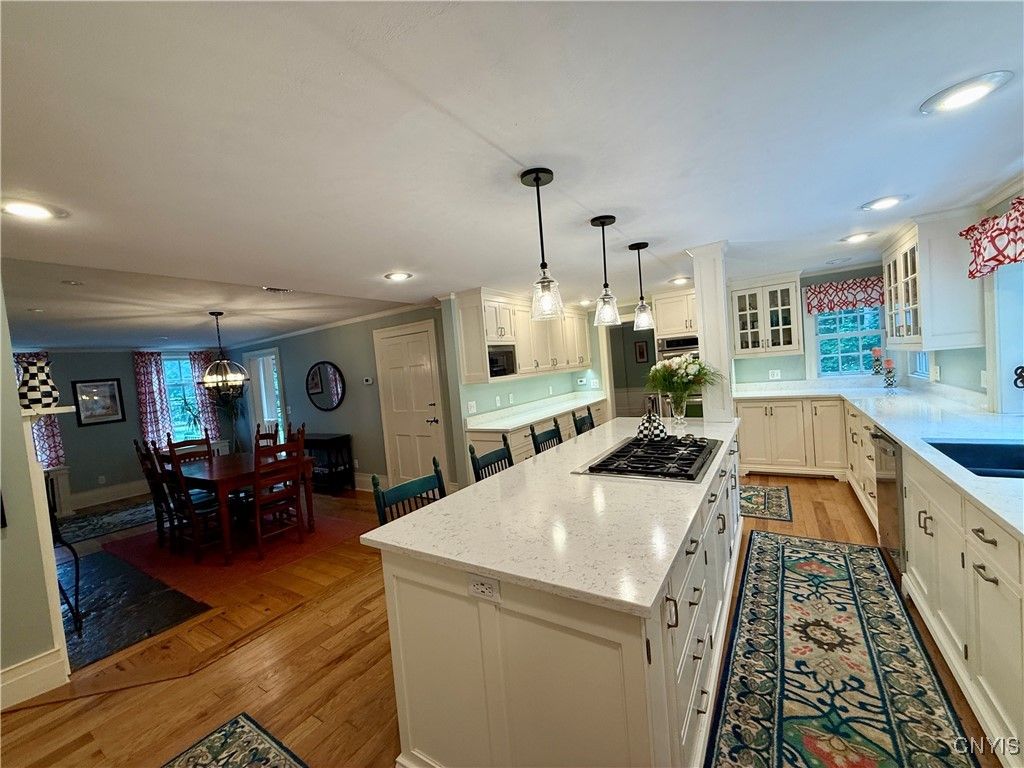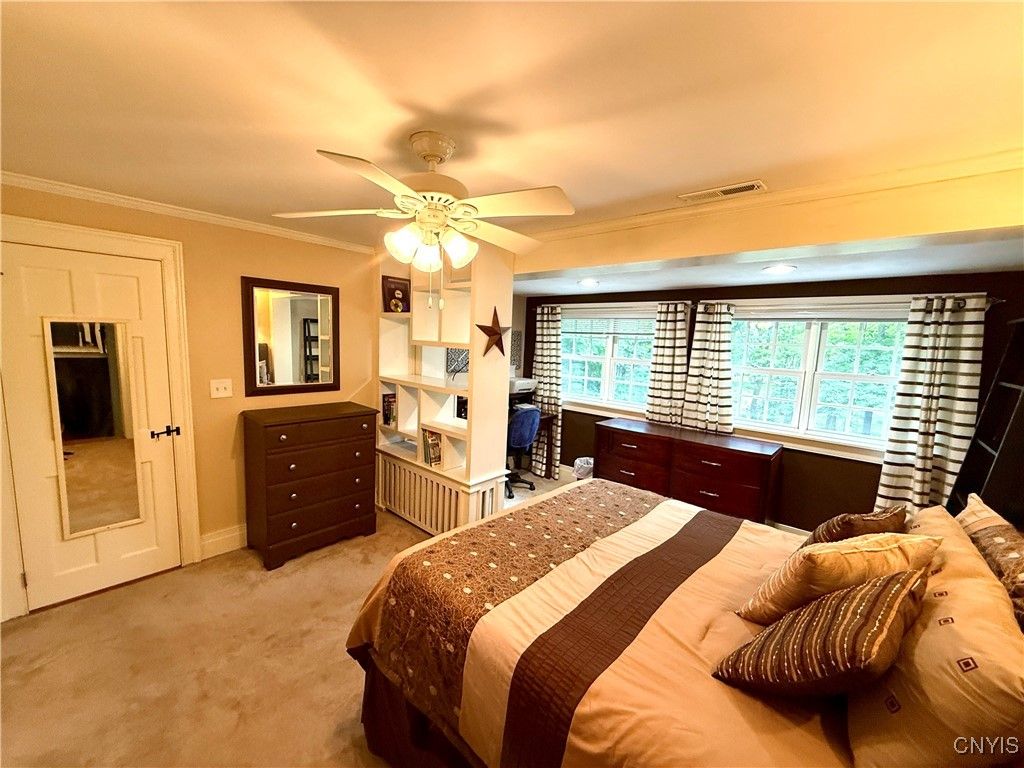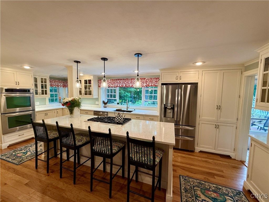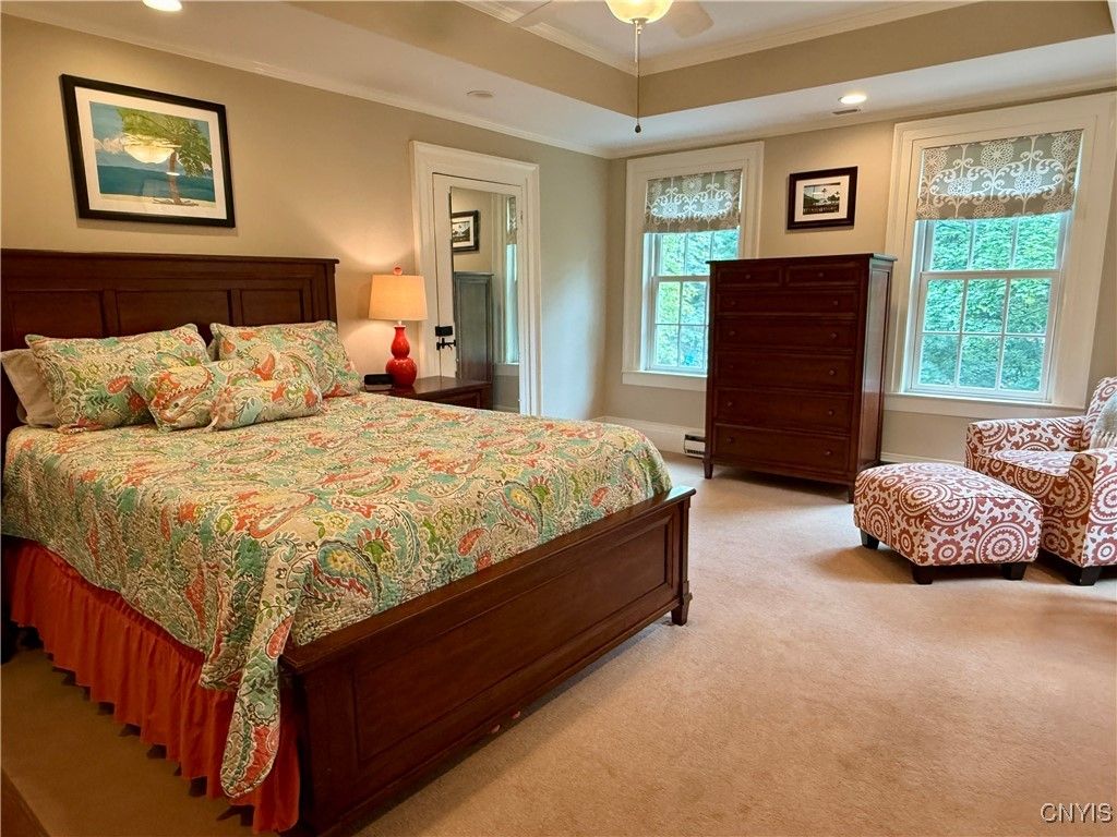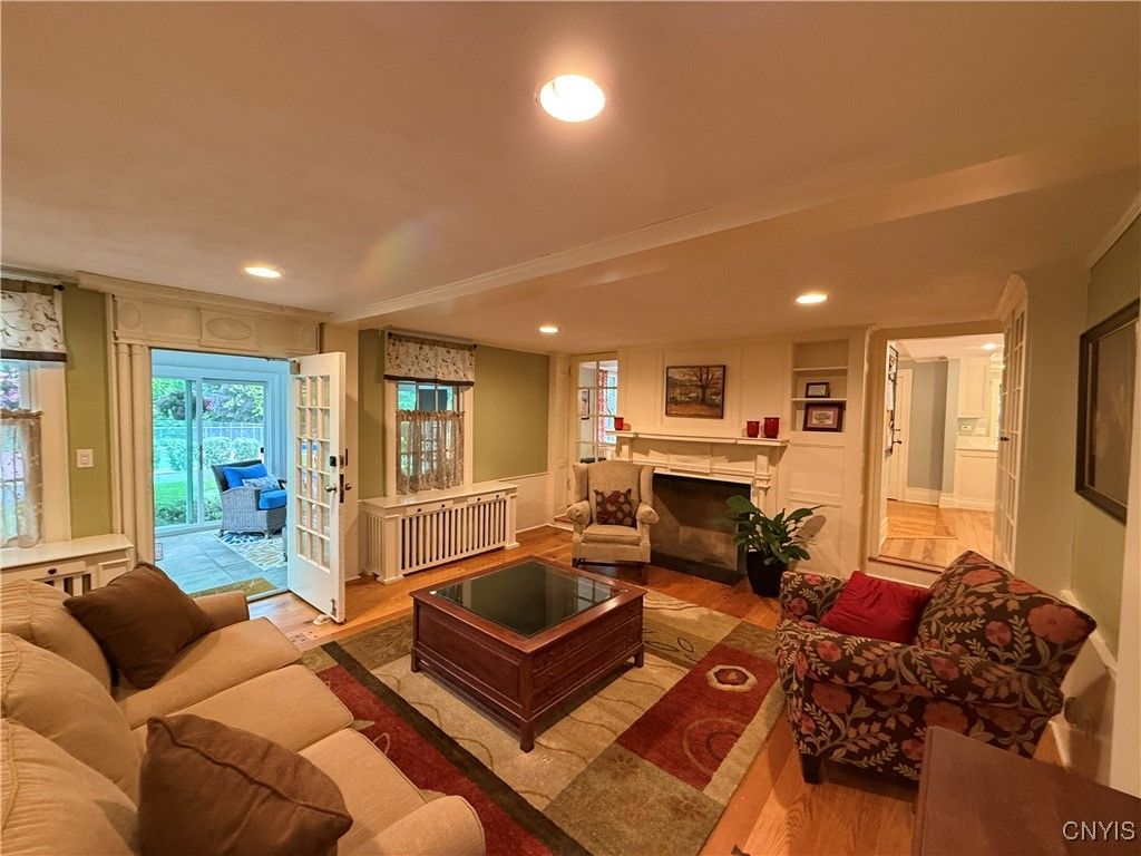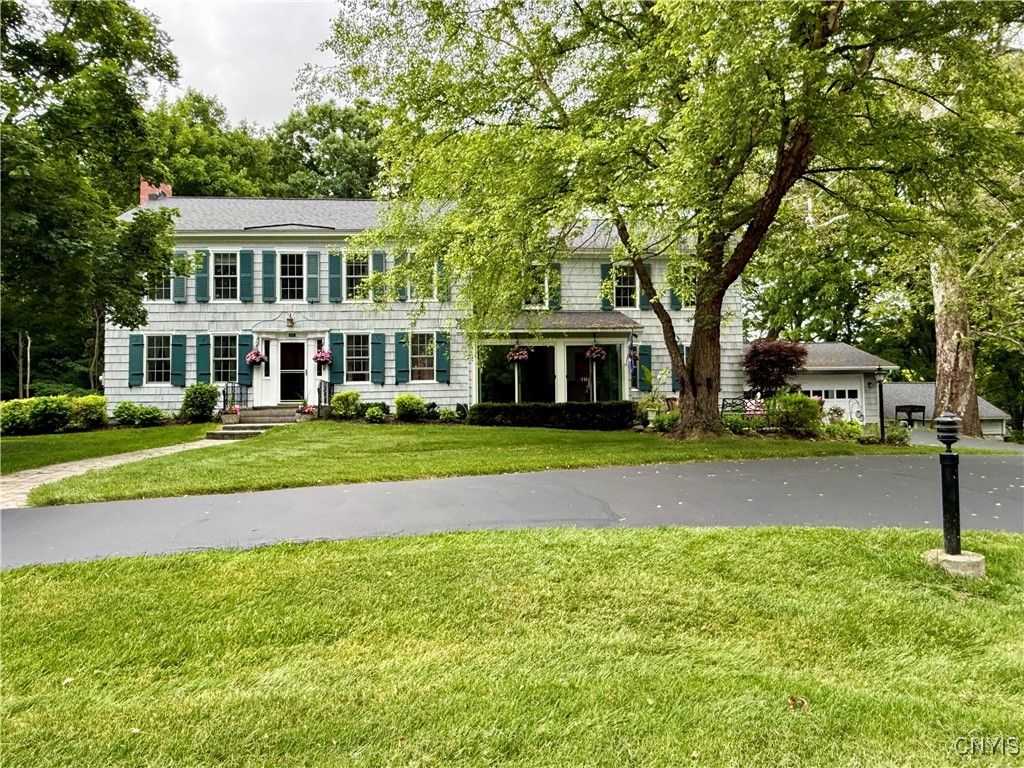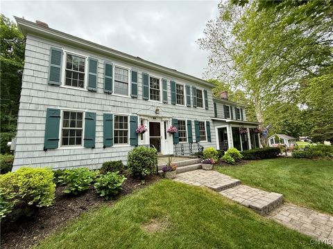 Historic Elegance Meets Modern Luxury on 2.7 Acres in the Heart of Fayetteville Built in 1828, this one-of-a-kind Colonial masterpiece blends timeless beauty w/contemporary comfort. Set on a meticulously landscaped 2.7-acre lot in the heart of the Village of Fayetteville, the property welcomes you with a stately circular driveway, guiding you past tennis/pickleball court, in-ground pool w/slide & diving board. The grounds offer a serene, park-like atmosphere where every day feels like a vacation. Lovingly restored this historic gem retains its architectural integrity while offering modern updates. Inside, you'll find 5 generously sized bedrooms and 2.5 beautifully renovated bathrooms. The layout includes a formal dining room, living room, cozy family room & a glass-enclosed porch - perfect for relaxing. Original details abound, including 6 fireplaces w/preserved mantels & stunning hardwood floors - some w/rare pegged bow-tie inlays - adding warmth, character, & sophistication. At the heart of the home, the chef's kitchen features radiant heated floors, quartz countertops, crisp white cabinetry & a five-burner Wolf gas cooktop w/retractable vent. The kitchen flows seamlessly into the breakfast room, dining room, family room & opens to a sprawling composite deck overlooking lush green space & mature shade trees - ideal for entertaining or simply unwinding outdoors. The luxurious primary suite offers a gas fireplace, a walk-in dressing area w/ample closets & a spa-inspired ensuite bathroom featuring heated floors, dual-sink vanity & a shower with three shower heads. Upstairs, you'll also find a utility room w/washer, dryer & built-in ironing board, plus a stylishly updated full bath w/a walk-in shower, built-in bench & recessed shower niche. The barn was converted into a 2-story club house/barndominium. Additional features includes a two-car garage, newer replacement windows, recessed lighting, a multi-zone boiler system, central air & a 200-amp electrical panel. A rare chance to own a stunning piece of Fayetteville's history - expertly reimagined for modern living. All within walking distance to local shops, restaurants & Wellwood School.