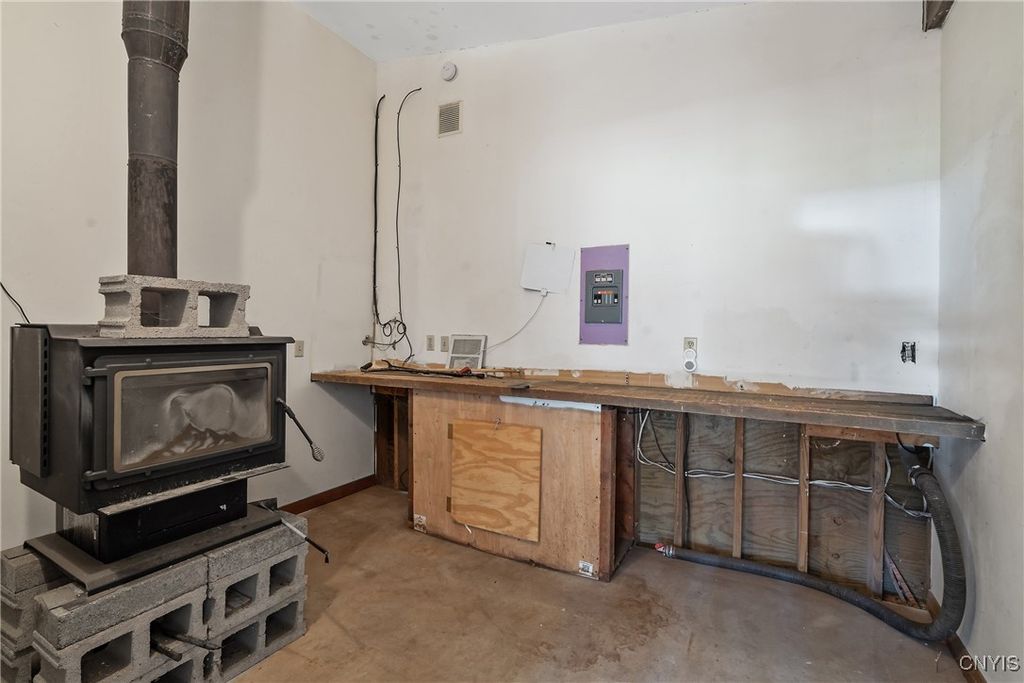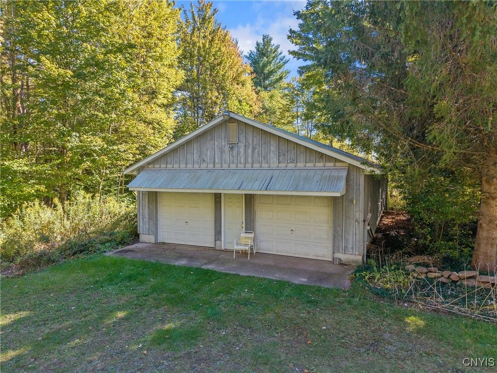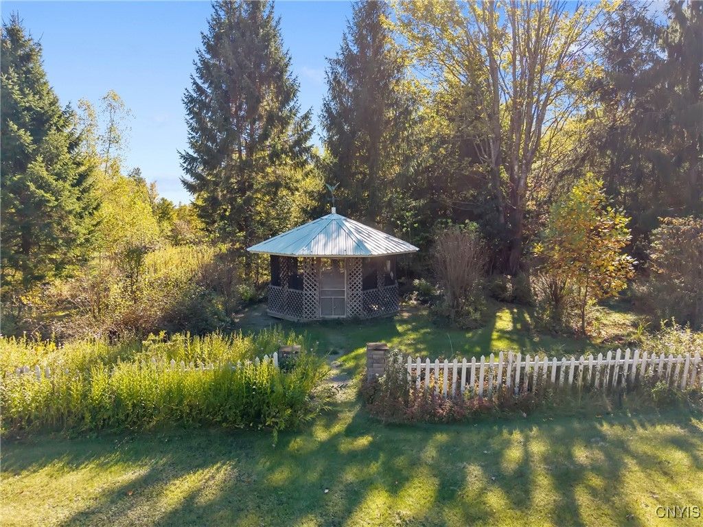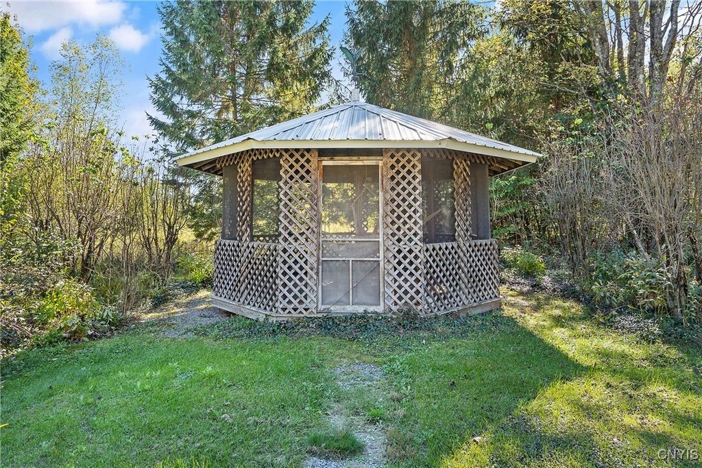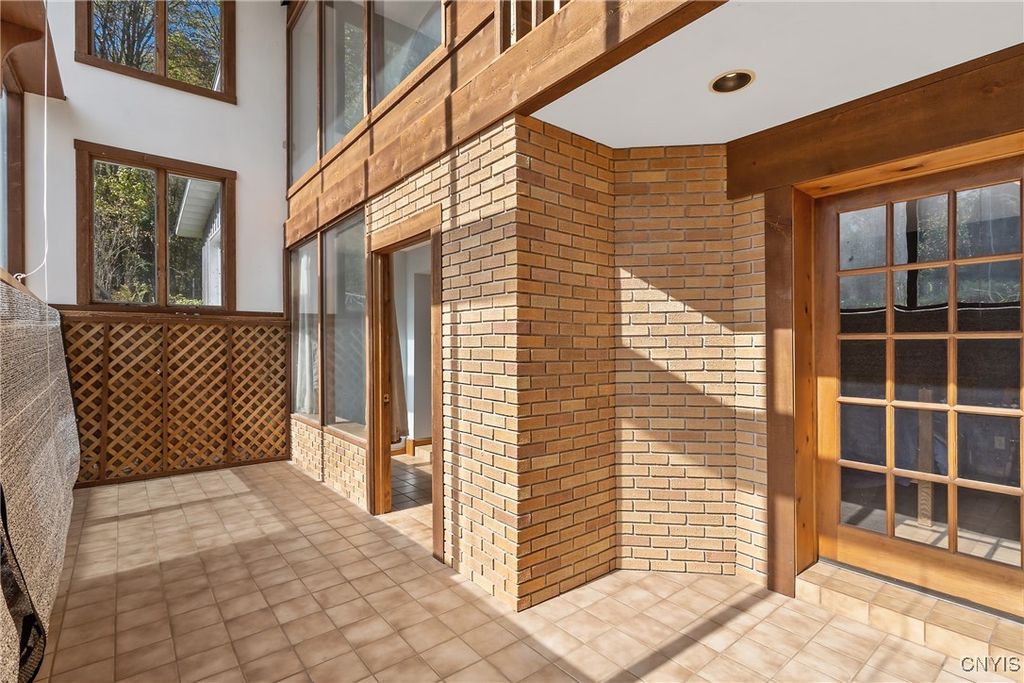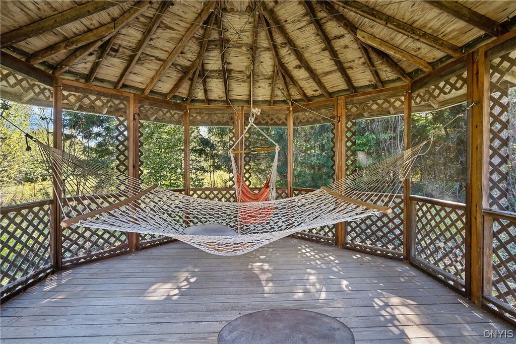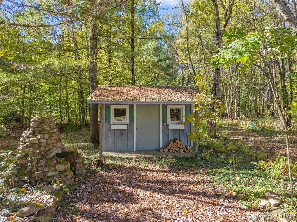 Welcome to Hilltop Hideaway, a truly one-of-a-kind passive solar home designed to live in harmony with the seasons. If you've ever dreamed of waving goodbye to your heating bills, this home makes it possible! Built directly into the hillside, its natural berm design and two-story wall of south-facing glass capture sunlight throughout the day to warm the interior and help keep it cool during the summer months. Spanning nearly 2,000 square feet, this custom-built retreat offers three to five bedrooms and two full baths in a layout that blends comfort with creativity. The main level features three bedrooms including a brand-new primary bathroom, a spacious craft or hobby room, and multiple walkouts to the Sunspace Atrium.On the second level, you'll find a vaulted living room with exposed wood beams and a stunning brick fireplace, a bright open kitchen and dining area, an office (or 4th bedroom),even a hidden loft library accessed by ladder - a charming surprise that adds to the home's personality and warmth. The home's defining feature is the two-story Sunspace Atrium - an extraordinary light-filled area that serves as both a greenhouse and a natural heat source. Each bedroom opens into this space through French doors and private balconies, letting in sunlight and offering gorgeous views of the property's wooded surroundings. It's a dream come true for gardeners, plant lovers, or anyone who craves the serenity of natural light year-round. When it comes to comfort, you'll have your choice of three heat sources - a wood furnace that radiates heat through the concrete floor slab, a cozy wood stove, and a propane fireplace. The back of the home is built into the earth, providing exceptional insulation and energy efficiency.Outside, you'll find two garages, an attached two-car and a detached oversized two-car with a heated workshop in back plus a full gym/mechanical space, a garden shed with patio and fire pit, and a screened-in gazebo tucked among the trees for the perfect private retreat. Set on over 27 wooded acres, it offers privacy, tranquility, and endless opportunities for outdoor enjoyment.
