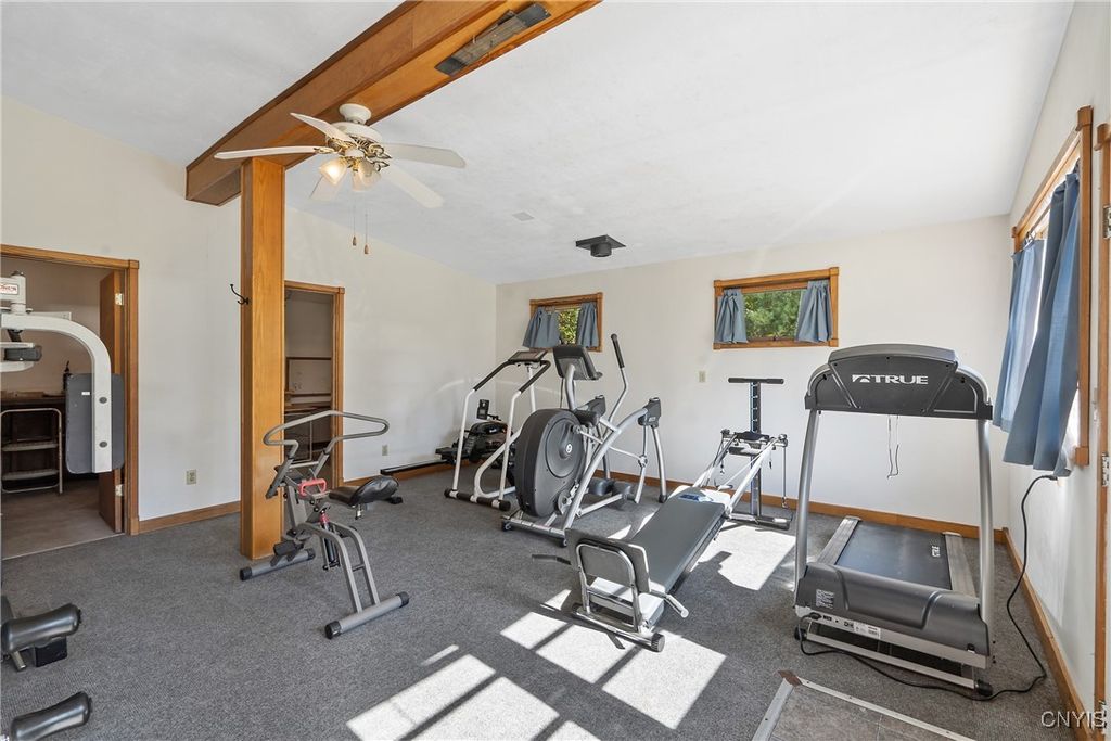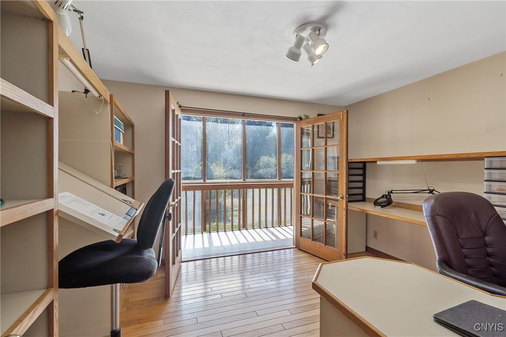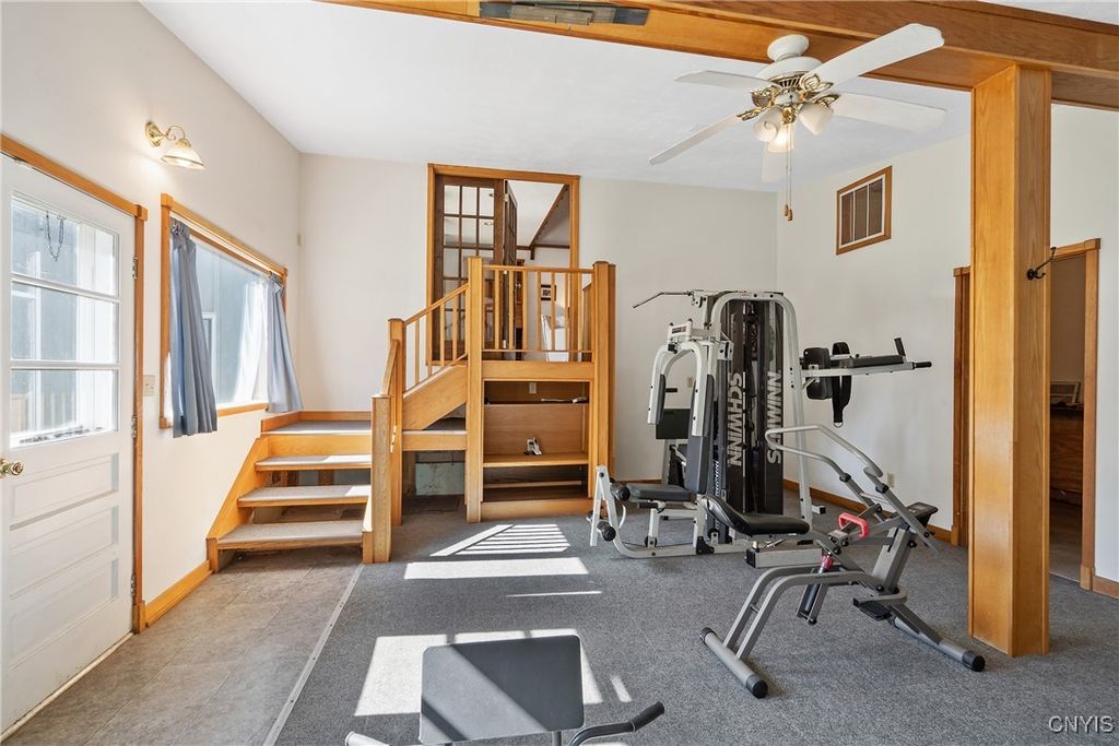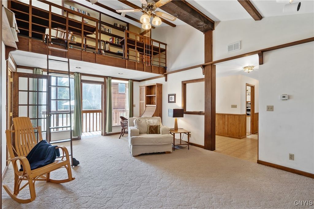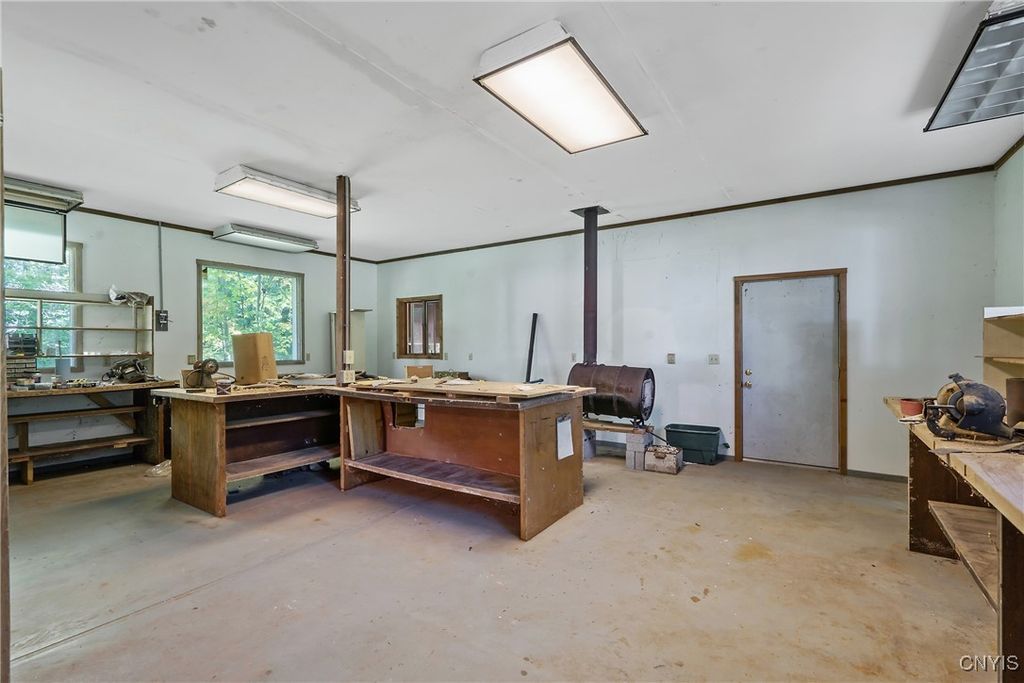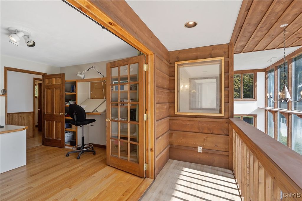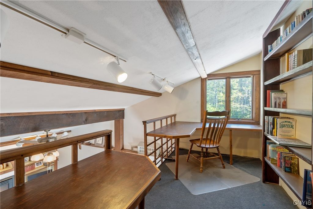 Welcome to Hilltop Hideaway, a truly one-of-a-kind passive solar home designed to live in harmony with the seasons. If you've ever dreamed of waving goodbye to your heating bills, this home makes it possible! Built directly into the hillside, its natural berm design and two-story wall of south-facing glass capture sunlight throughout the day to warm the interior and help keep it cool during the summer months. Spanning nearly 2,000 square feet, this custom-built retreat offers three to five bedrooms and two full baths in a layout that blends comfort with creativity. The main level features three bedrooms including a brand-new primary bathroom, a spacious craft or hobby room, and multiple walkouts to the Sunspace Atrium.On the second level, you'll find a vaulted living room with exposed wood beams and a stunning brick fireplace, a bright open kitchen and dining area, an office (or 4th bedroom),even a hidden loft library accessed by ladder - a charming surprise that adds to the home's personality and warmth. The home's defining feature is the two-story Sunspace Atrium - an extraordinary light-filled area that serves as both a greenhouse and a natural heat source. Each bedroom opens into this space through French doors and private balconies, letting in sunlight and offering gorgeous views of the property's wooded surroundings. It's a dream come true for gardeners, plant lovers, or anyone who craves the serenity of natural light year-round. When it comes to comfort, you'll have your choice of three heat sources - a wood furnace that radiates heat through the concrete floor slab, a cozy wood stove, and a propane fireplace. The back of the home is built into the earth, providing exceptional insulation and energy efficiency.Outside, you'll find two garages, an attached two-car and a detached oversized two-car with a heated workshop in back plus a full gym/mechanical space, a garden shed with patio and fire pit, and a screened-in gazebo tucked among the trees for the perfect private retreat. Set on over 27 wooded acres, it offers privacy, tranquility, and endless opportunities for outdoor enjoyment.