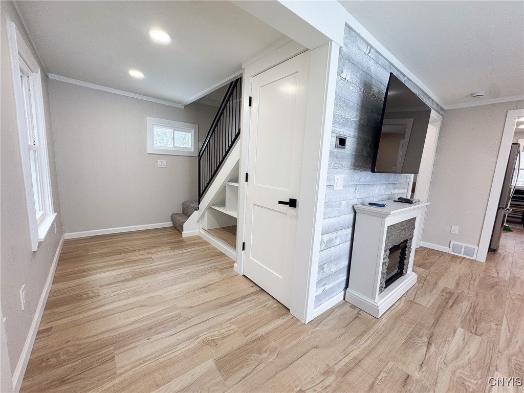 Do not judge a book by its cover this home is that statement's biggest testament! What you see from the outside is only a small part of the story because the interior of this home has been fully remodeled into a fresh, modern, move in ready space that feels completely transformed the moment you walk in. Inside you will find brand new finishes, updated flooring, a beautifully redone kitchen, and a clean, contemporary bathroom that give the entire home a bright and stylish feel with Lake Right! Every detail has been thoughtfully updated, creating a comfortable and low maintenance living space from day one. Functionality is a huge bonus here with a first floor bedroom, full bathroom, and laundry all on the main level. This layout offers easy everyday living and is perfect for anyone looking to avoid stairs or simply enjoy the convenience of having the main living essentials all on one floor. Upstairs, the additional room offers great flexibility and could easily be used as a second bedroom, bonus room, home office, guest space, or hobby area depending on your needs. One of the standout features is the lake rights on Owasco Lake, giving you access to two shared docks. Whether you want to place a boat hoist, take your boat out for the day, or simply enjoy time by the water, this is a rare opportunity to enjoy lake living without the full waterfront price tag. Spend your summers on the water relaxing, swimming, or entertaining friends and family just minutes from your front door. Outside, the property includes a detached garage, ideal for parking, storage, or workshop space. The home truly has so much potential on the exterior. With some new siding and added curb appeal, you could easily bring the outside up to the same level as the beautiful interior and instantly build even more value. This is an ideal option for buyers looking for a turnkey interior, lake access, and the chance to add their own finishing touches outside. Whether you are searching for a year round home, a weekend getaway, or an investment opportunity, this property combines modern updates, Owasco Lake rights, a flexible layout, and future upside all in one. OPEN HOUSE WED 2/11 4pm-6pm