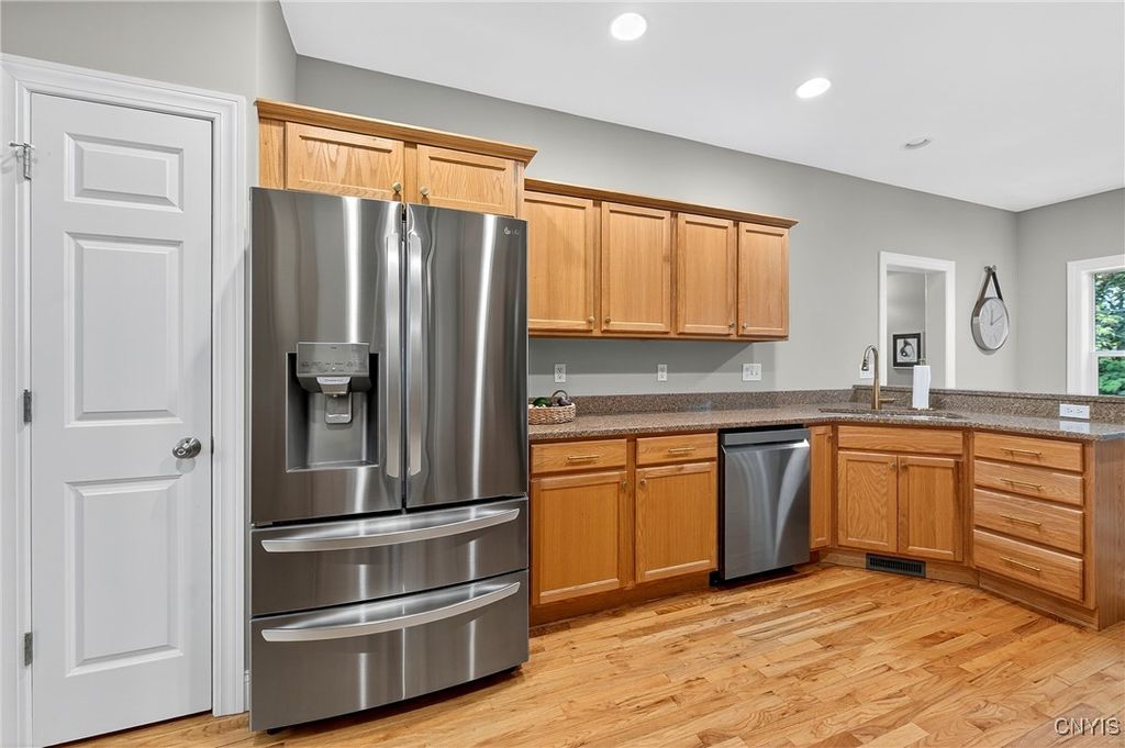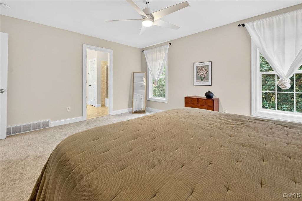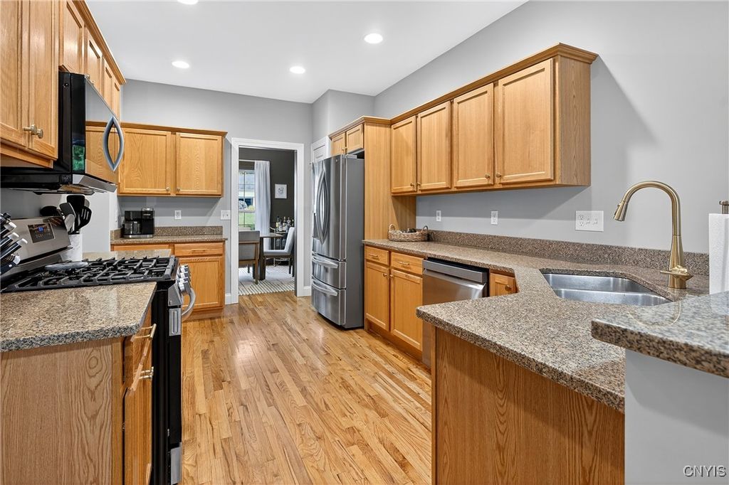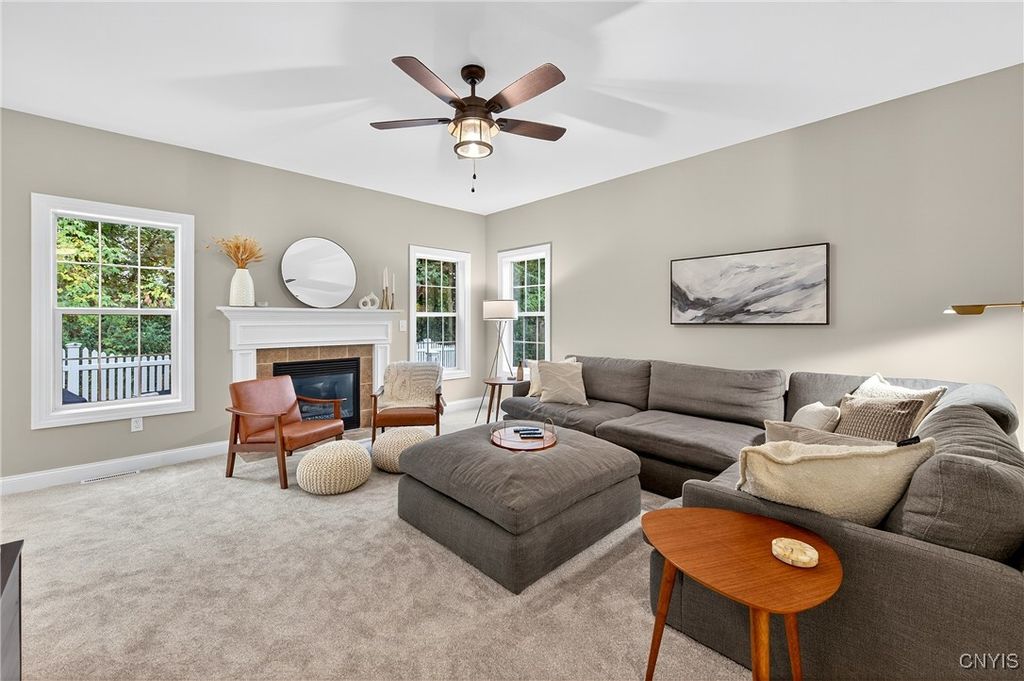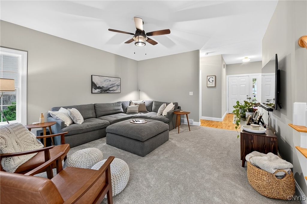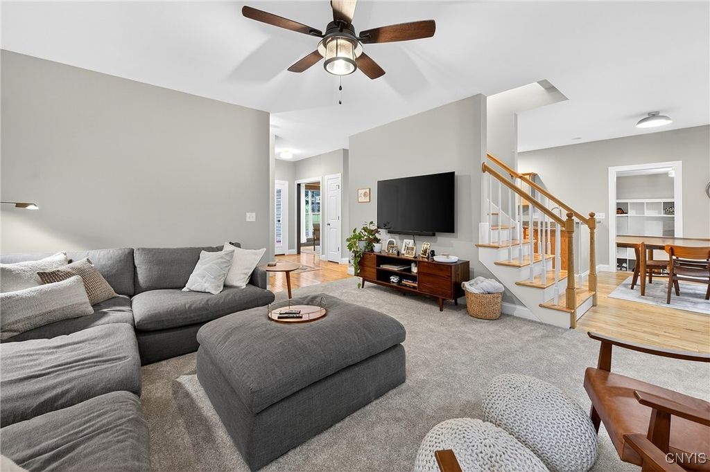Discover this beautifully maintained 4-bedroom, 2.5-bath home at the end of a quiet dead-end street in the award-winning Fayetteville-Manlius School District. The primary suite is expansive, featuring an ensuite bathroom and two spacious walk-in closets. All bedrooms boast brand-new flooring, and the finished basement adds versatile living space for family, guests, or recreation. Enjoy a bright and airy living room, a formal dining area, and a large eat-in kitchen perfect for gatherings and everyday living. Additional highlights include a convenient laundry/mud room and a thoughtful layout that combines comfort and functionality. Don't miss this exceptional home in a prime location! Tax record square footage does not reflect ~600sqft in the finished basement (with second egress) as measured by the seller.
