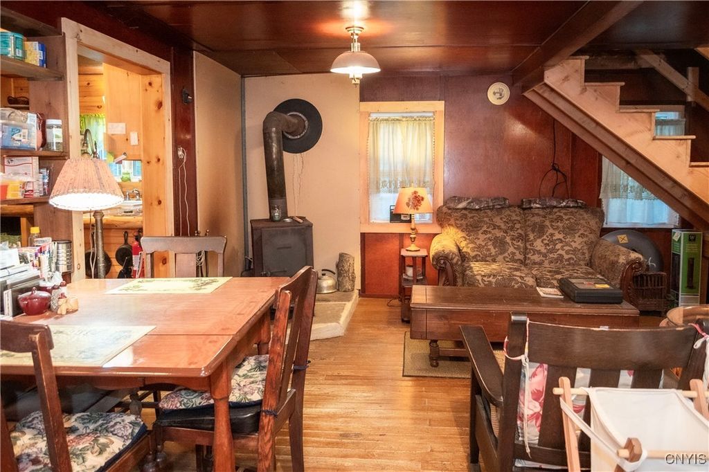 Escape to your ADK Retreat! This charming 4 bedroom 1 bath cottage, blends classic warmth with modern updates! An updated primary bedroom and a dedicated laundry area add comfort and convenience, while a full basement offers excellent storage or workshop potential. Relax on the inviting three- season front porch, perfect for morning coffee or enjoying the quiet evening breeze. Inside, cozy up in front of the wood-burning stove on those crisp Adirondack nights. Join the Otter Lake Association for easy lake access, which ensures endless opportunities for swimming, paddling and lakeside relaxation.Ideally located close to snowmobile trails, skiing and all that Old Forge has to offer. A large adjacent lot conveys, providing extra space for recreation, privacy or futures plans. This ADK cottage is ready for you to enjoy all that the mountains have to offer!
