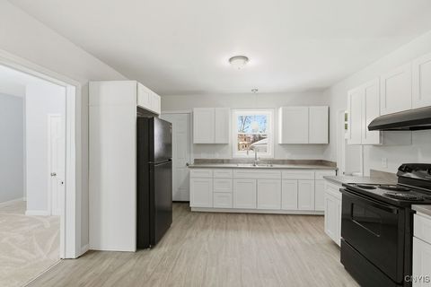 Purchasers must be first-time homebuyers and are subject to income limits (80% AMI and below) and owner-occupancy requirements pursuant to New York State Homes & Community Renewal's Legacy City ACCESS Program. Purchasers must complete income qualification and homebuyer education training with a HUD-certified homeownership counselor prior to purchase. Property being sold on first-come-first-serve basis with offers to be considered in the order they are received (to be considered, package must include a copy of Purchaser's preapproval and purchase offer contract containing language in Section 26 indicating Purchaser represents their household income is within 80% AMI and below). Prior to Seller signature, Purchaser will need to obtain income verification from OHDC. Deed restriction and second lienholder information in attachments. Great opportunity to own this remodeled 5 bedroom, 1.5 bathroom, 1,836 sq ft home with spacious detached garage! Convenience of second floor laundry hookup saves your back countless trips up and down stairs. First level with large open living room, first floor bedroom, plus separate office/den. Second level offers 4 bedrooms, full bathroom and second floor laundry hookups. Location makes for manageable commute to Syracuse or Oswego!