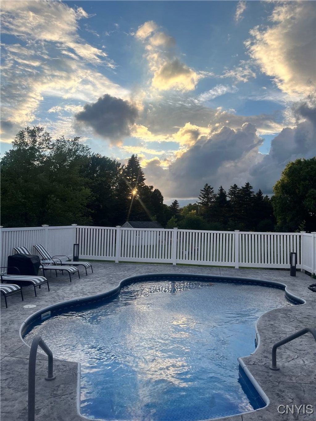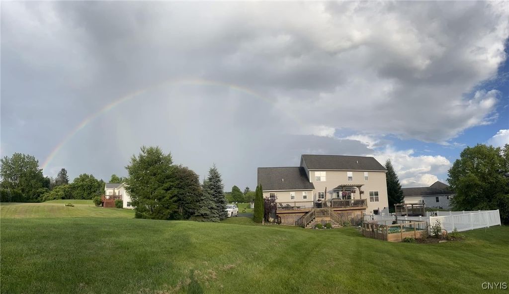 At the end of a quiet cul-de-sac in Marcellus sits this beautiful four-bedroom home on over an acre of land. Tucked away yet welcoming, it's the kind of place where life naturally unfolds. Inside, freshly painted walls are filled with natural light throughout. Brand-new carpet runs through three of the four bedrooms and the front living room, adding warmth and comfort underfoot. The primary suite is a peaceful retreat, featuring a spacious walk-in closet and a private bath with dual vanities that make busy mornings a breeze. The heart of the home is the granite kitchen, offering generous counter space and an abundance of cabinetry - ideal for everything from everyday meals to holiday gatherings. A bright eat-in area with multiple windows overlooks the backyard, while a door leads out to a large deck, perfect for morning coffee or evening dining. Stainless steel appliances complete the space. Nearby, the mudroom keeps daily life organized and includes convenient first-floor laundry. Formal living and dining rooms frame the front of the home, ready for celebrations, quiet conversations, and lasting memories. The family room offers a cozy atmosphere, especially on cold nights gathered around the gas fireplace. Downstairs, the finished walkout lower level opens up endless possibilities. Whether you envision a game room, home theater, exercise space, or additional living area, there's room for it all - along with ample storage and a newly added half bath. Step outside to a backyard designed for relaxation and entertaining, featuring a hot tub, in-ground pool, fire pit, and the serenity of over an acre of private outdoor space. This isn't just a house - it's a place where mornings begin softly, evenings end by the fire or under the stars, and every detail is designed for comfort, connection, and home. Why build when you can have all of this, ready and waiting? Square footage of lower level is roughly 602 square feet and was calculated.