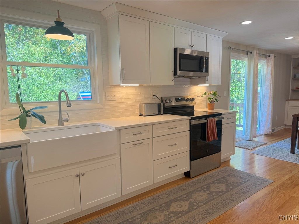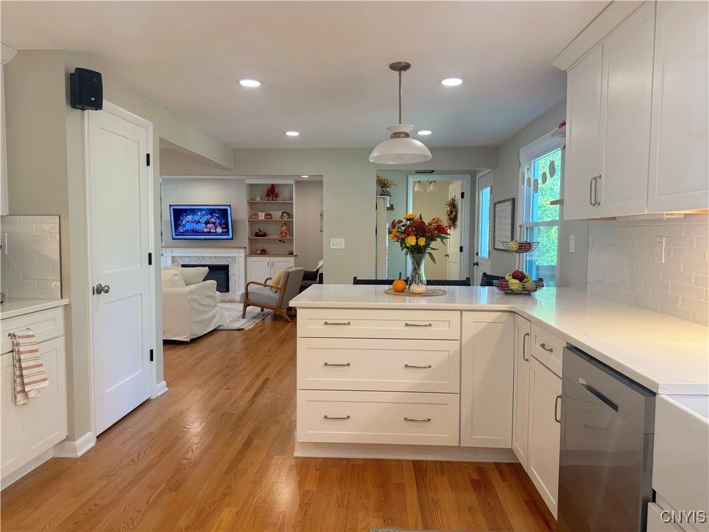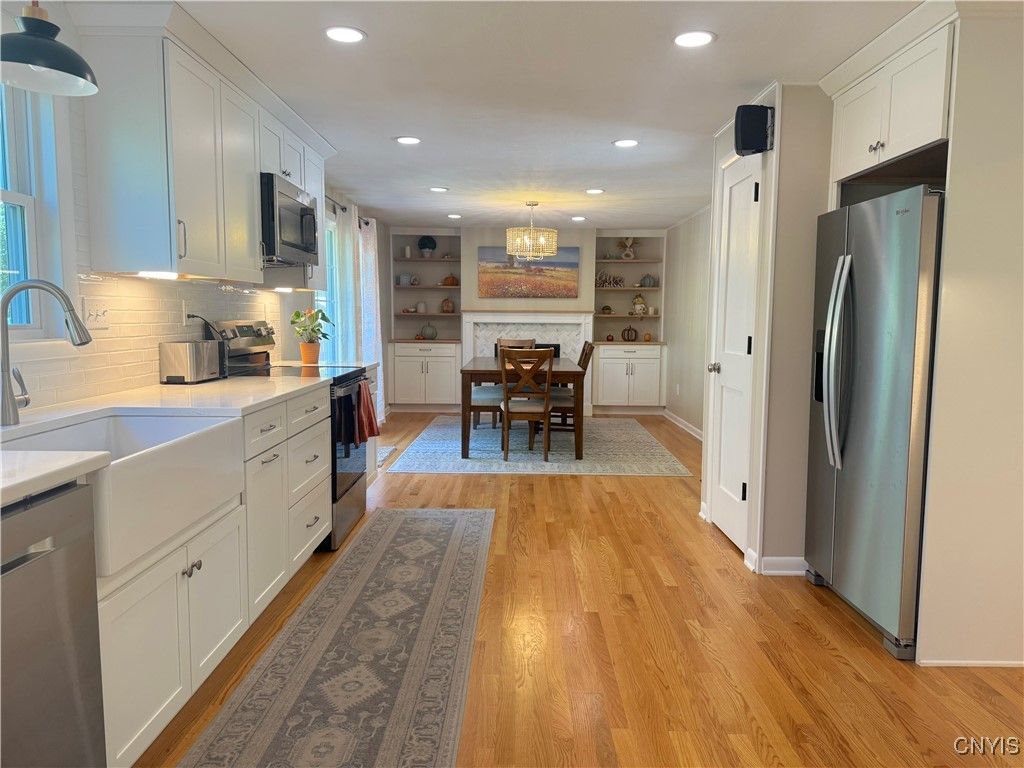 Remodeled & reimagined 4 bedroom 2.5 bath colonial in sought after FM schools. Open floor plan featuring living room with fireplace surrounded by custom built-ins leading to the stunning kitchen with white shaker cabinetry, quartz countertops, tile backsplash, farm sink, lots of recessed and under cabinet lighting, stainless steel appliances and breakfast bar. There is also a large open dining room that has a second fireplace surrounded by custom built-ins and sliding glass door leading to the newer deck overlooking the private treed back yard. Convenient first floor office with french doors, built-in desk, cabinetry & open shelving. In addition to all new fixtures & finishes find convenient touches such as bench/cubbies, mud room access from back yard with easy accessibility to half bath with heated floors. Upstairs find 4 bedrooms all with hardwood floors, fully remodeled main bath with dual vanity & heated floors. Primary bedroom has double closets & updated ensuite bath. Updates to mechanicals and systems including windows, doors, insulation/ventilation, gutters, radon mitigation system, electrical panel, furnace, water heater and so much more - list in attachments or come see for yourself. Showings begin Thursday 10/9.
