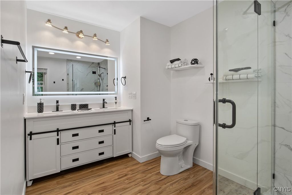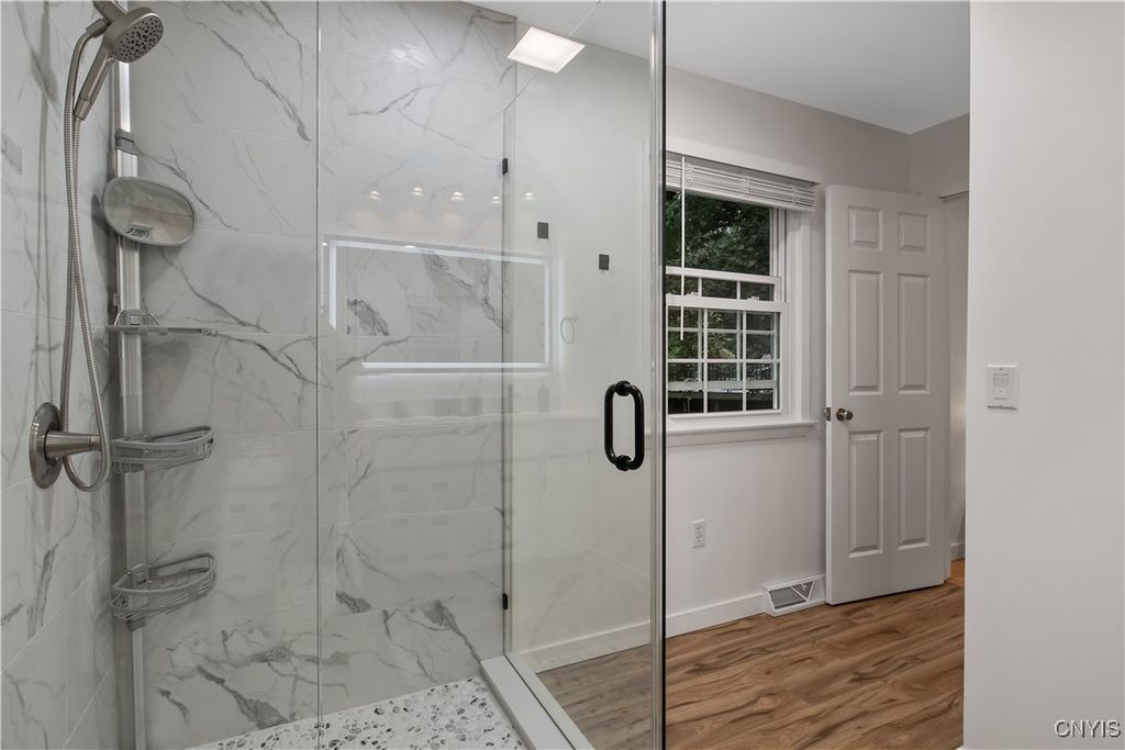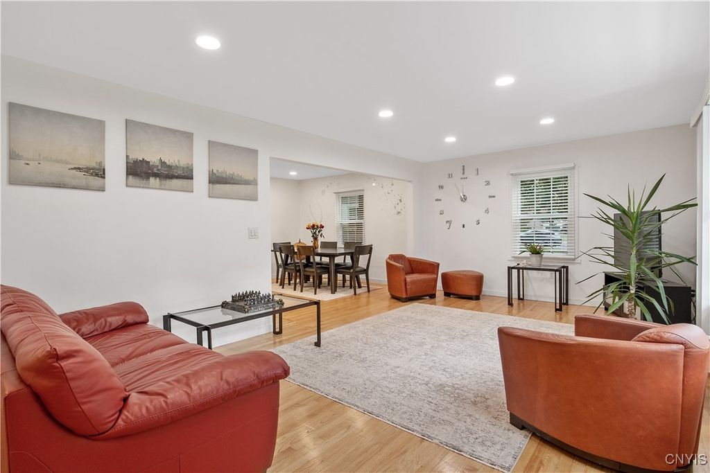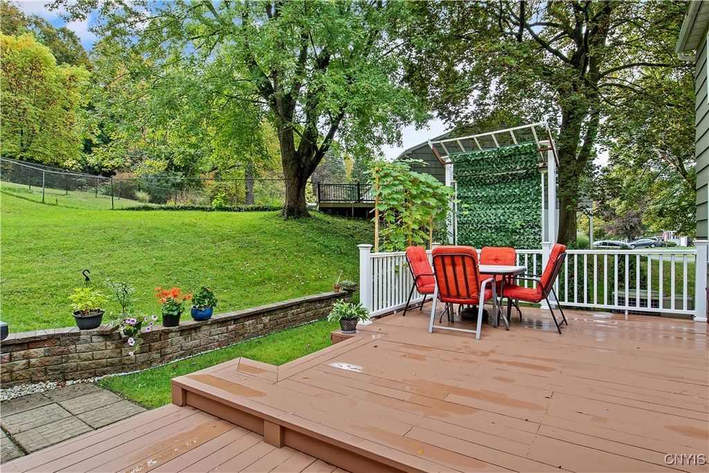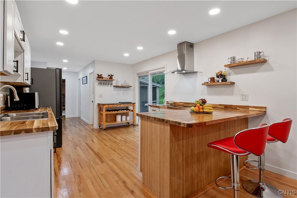 Welcome to this thoughtfully renovated Colonial that proves good things come in well-designed packages! This charming four-bedroom, two-and-a-half bathroom home has undergone a complete transformation, ensuring every corner reflects modern comfort while maintaining classic appeal. The heart of the home features a beautifully updated kitchen equipped with brand-new appliances and contemporary finishes that make meal preparation a joy. Kitchen features all new cabinets, butcherblock countertops, all new stainless steel appliances, country dining room with bar style seating and recessed lighting throughout. Throughout the house, tasteful updates create a cohesive flow between spaces, while the cozy fireplace in a private guest suite provides the perfect gathering spot for chilly evenings. The enclosed sunroom offers a delightful retreat where morning coffee tastes better and afternoon reading feels like a mini-vacation. Four generously sized bedrooms, including a spacious master bedroom with large master bath that features a Sleek double vanity, walk-in glass shower, and modern finishes meet everyday luxury and function. Outside, the modestly sized deck that faces a wooded lot presents endless possibilities for nature watching, gardening and grilling. Full basement workshop for DIY enthusiasts and hobbyists who appreciate dedicated project space. Conveniently located in the heart of the village of Manlius, close to all shopping including Tops, Wegmans and major clothing outlets. Outdoor enthusiasts will appreciate easy access to the scenic Green Lakes and Limestone Creek Greenway Trail and proximity to the highly regarded Fayetteville-Manlius High School district.