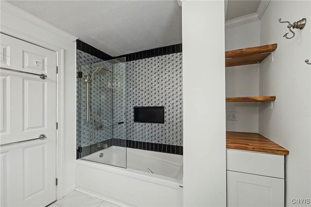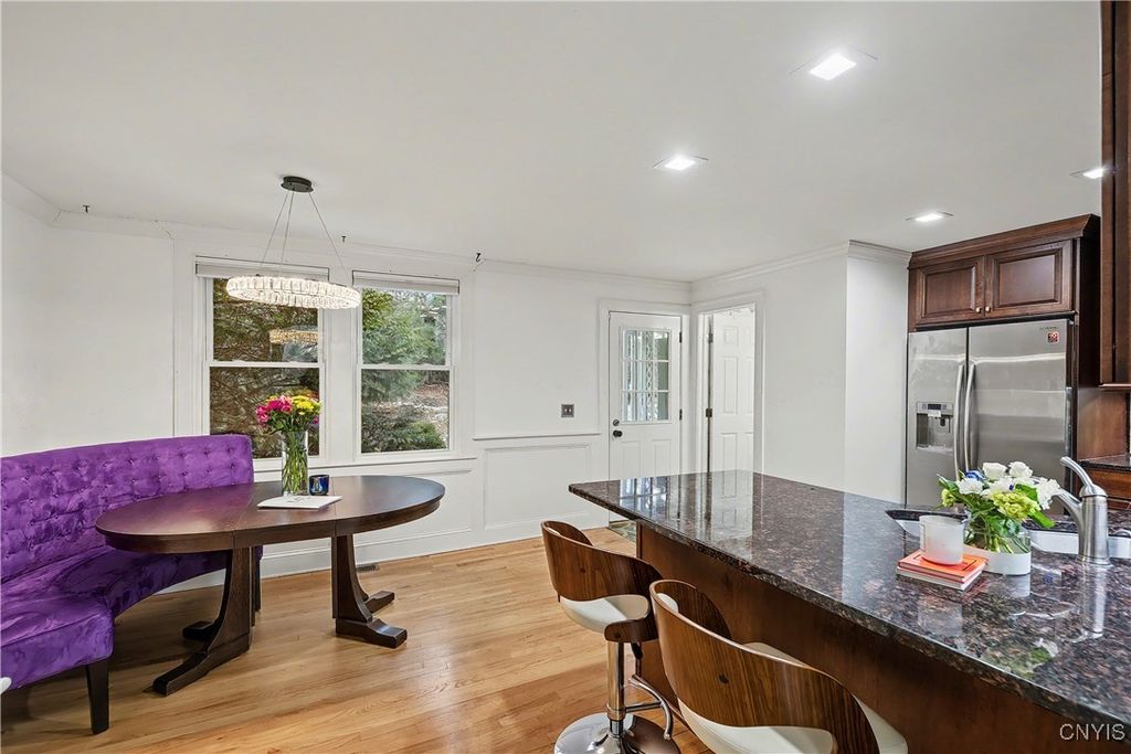 Ideally positioned in the heart of the village, this charming two-bedroom townhouse blends timeless character with modern sophistication. The inviting interior unfolds into a beautifully appointed eat-in kitchen featuring stainless steel appliances, granite countertops, and a designer backsplash, complemented by a convenient half bath. The living room exudes warmth and elegance with refined architectural detail, an electric fireplace, and thoughtfully updated lighting throughout. The second level offers two well-appointed bedrooms, including a spacious primary suite with generous closet space and stairs leading to a finished third level - an ideal retreat for a home office, studio, or additional storage. The lower level provides ample storage and a dedicated laundry area, enhancing everyday functionality. Completing the home is a detached garage equipped with an EV charger, offering both convenience and forward-thinking design. Enjoy a premier village lifestyle with effortless access to the lake, boutique shops, and acclaimed dining, all just moments from your door.