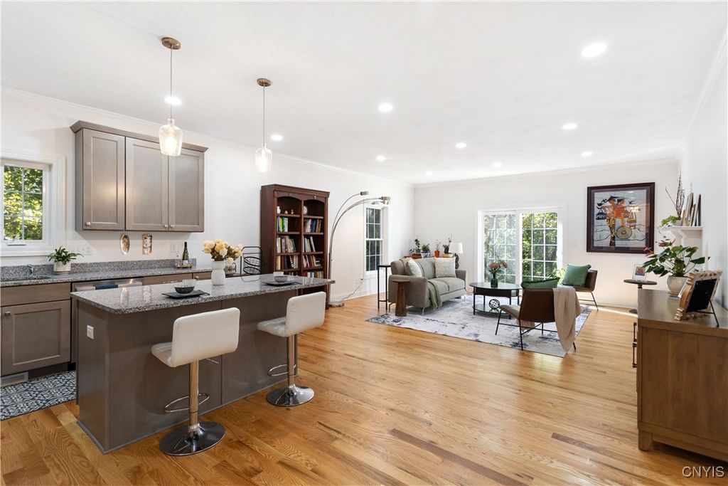 Welcome to this beautiful 4-bedroom ranch home, just 2 years young and perfectly blending modern design with comfort. Located within the highly sought-after Fayetteville-Manlius School District, this home offers an open-concept floor plan ideal for today's lifestyle. The gourmet kitchen features stainless steel appliances, sleek cabinetry, and a spacious island overlooking the dining and living areas - perfect for entertaining or family gatherings. The main level boasts sun-filled rooms, a private primary suite, and thoughtful finishes throughout. The recently finished basement provides exceptional extra living space - ideal for a home theater, gym, playroom, or office - offering endless possibilities. With its modern construction, single-level living, and convenient location close to shopping, dining, and parks, this home is move-in ready and waiting for you.
