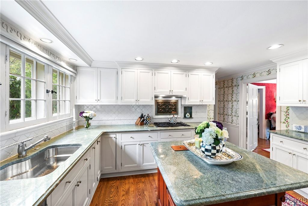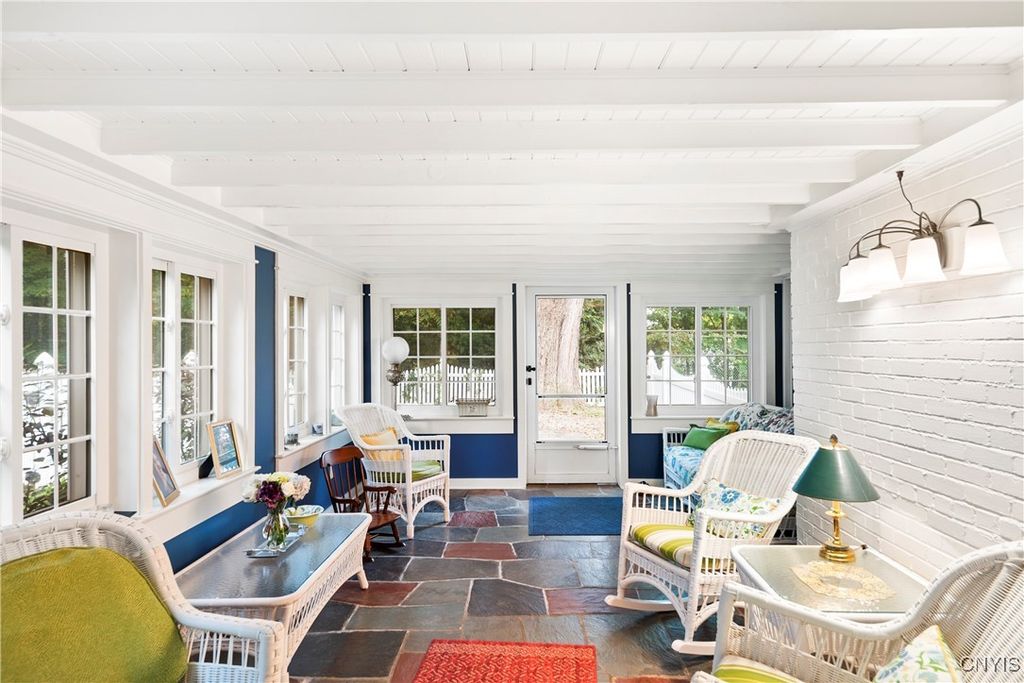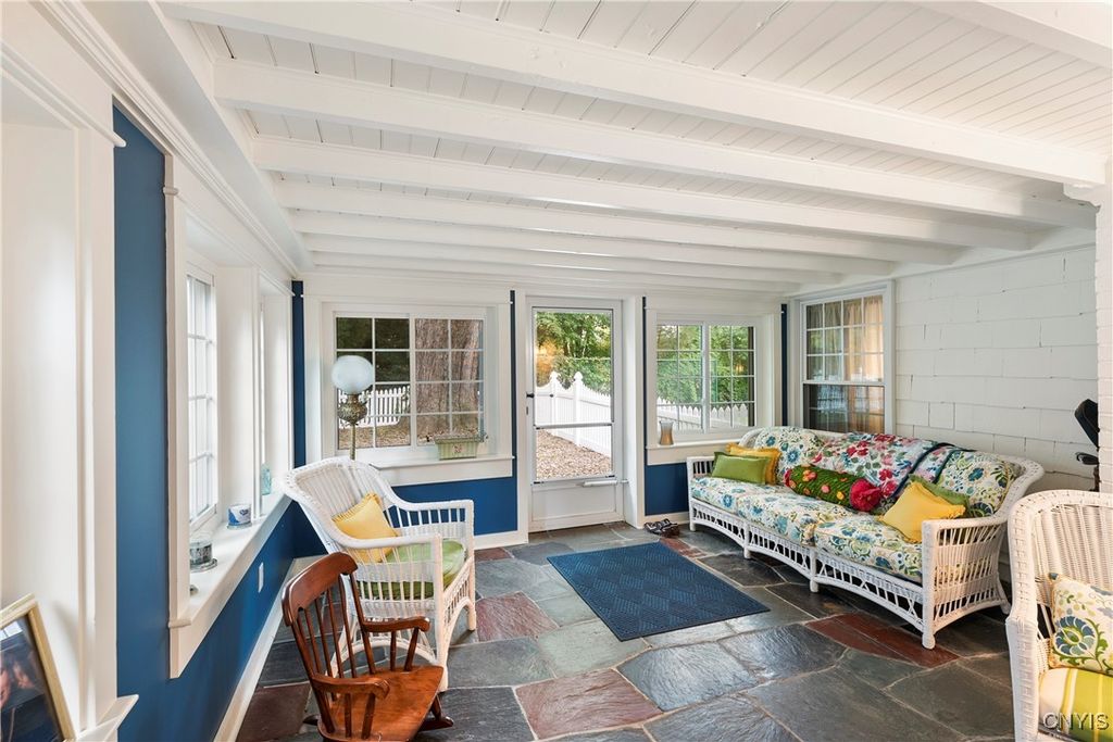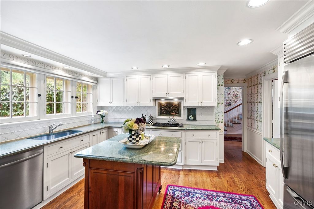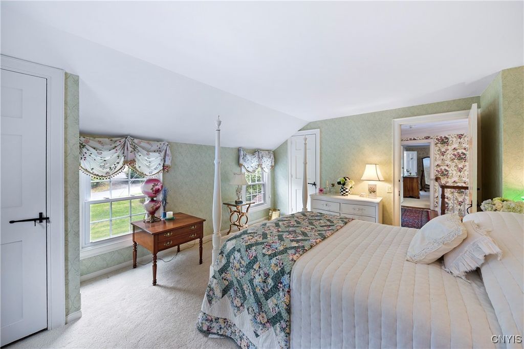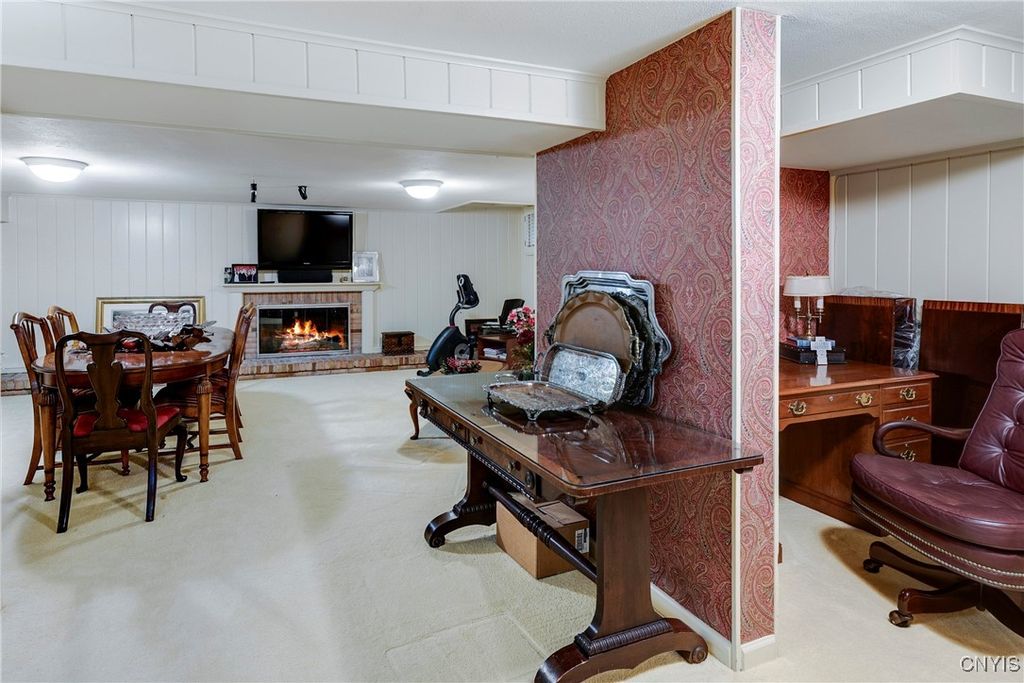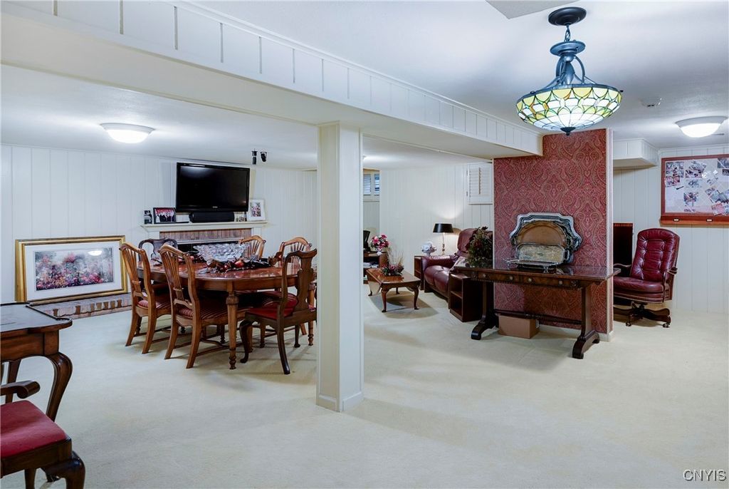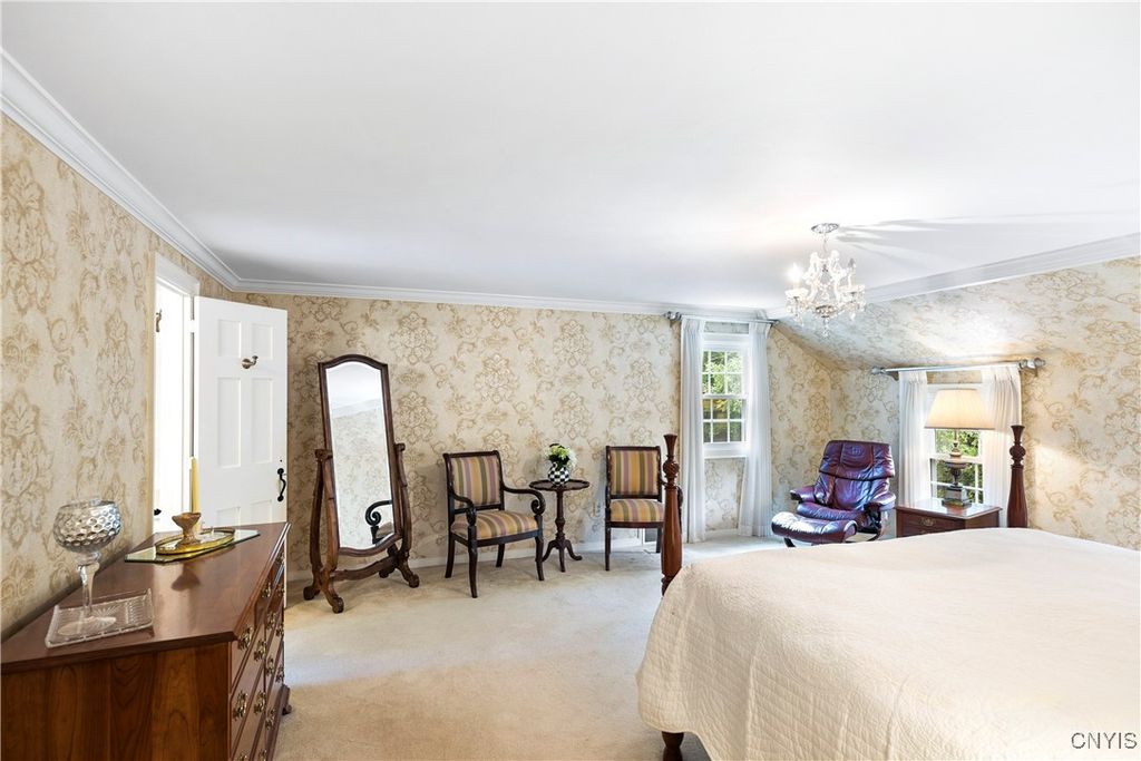 DeWitt Luxury Living on a Private .8-Acre Lot Experience timeless elegance in this beautifully maintained colonial, perfectly situated on a spacious, private .8-acre wooded lot. Inside, gleaming moldings, a grand staircase, and abundant natural light welcome you into a refined yet inviting living space. The cozy living room features a wood-burning fireplace, while the formal dining room sets the stage for memorable gatherings. The gourmet kitchen impresses with white cabinetry, granite countertops, and upscale appliances, flowing seamlessly into the family room, which boasts rich wood paneling and a warm gas fireplace. Step outside to the three-season porch overlooking lush, landscaped grounds, and a fenced in area for pets. Ideal for morning coffee or evening entertaining. Upstairs, three generous bedrooms include a luxurious primary suite with walk-in closet and spa-like bath. An updated second-floor bathroom adds modern comfort for family and guests. The partially finished basement includes a small workshop and a gas fireplace and provides additional living space or recreational flexibility. Enjoy outdoor amenities including a fenced yard and private tennis court, all just minutes from JD schools, and less than a mile to Wegmans and Route 481, offering easy access to Syracuse and the surrounding region. Move-in ready and impeccably cared for, this home offers classic colonial charm with modern updates for today's lifestyle.