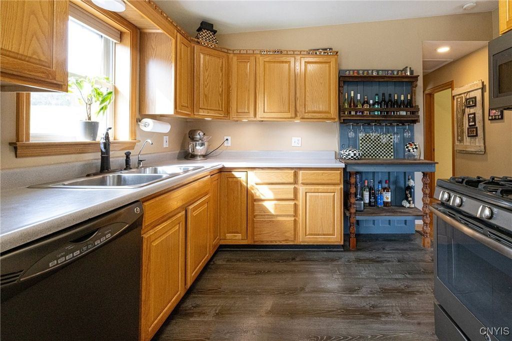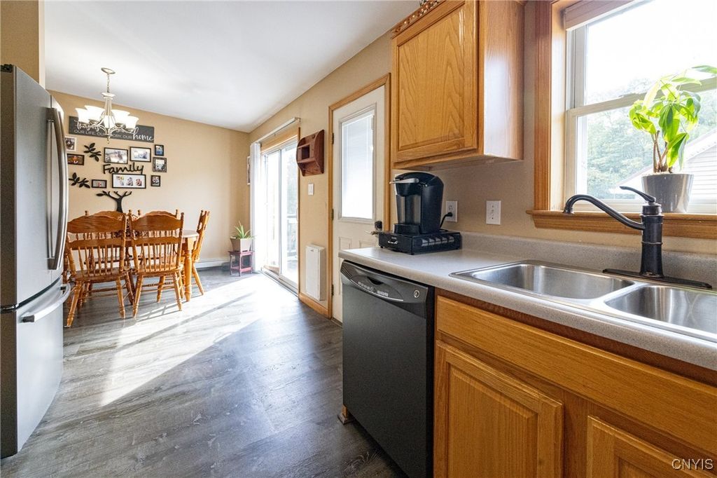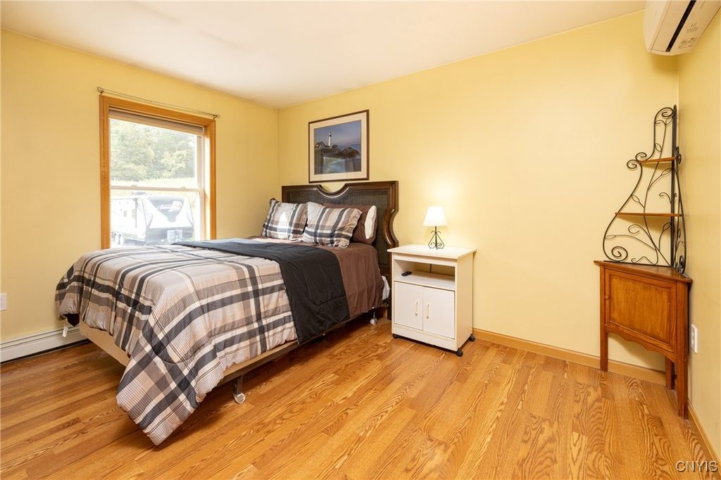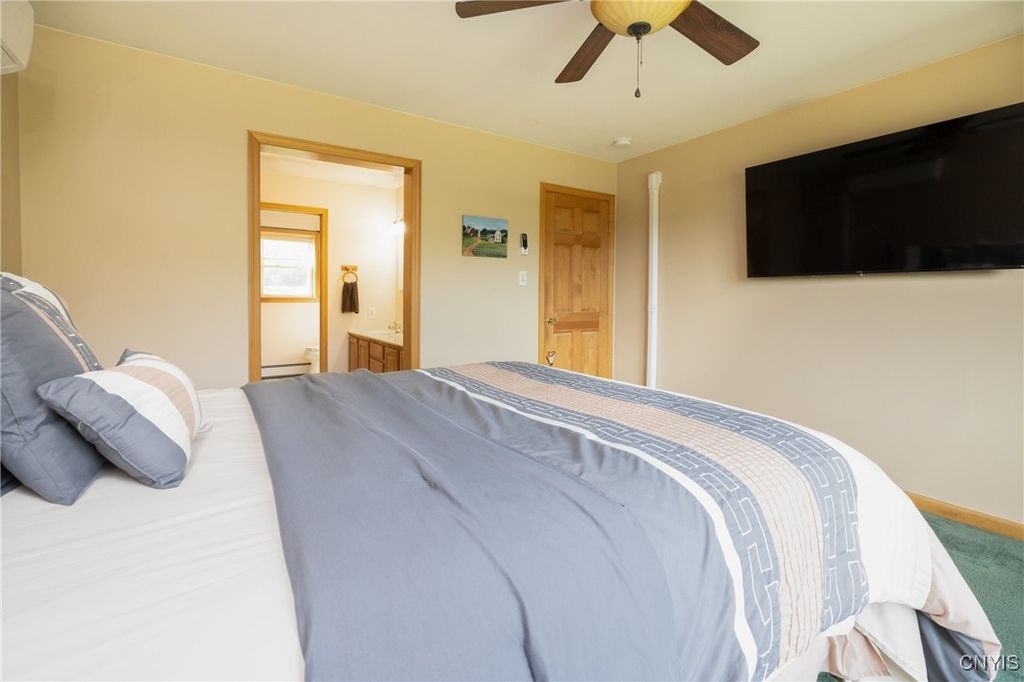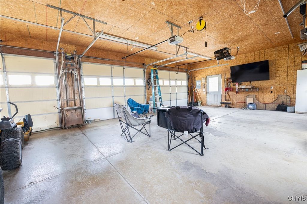 Updated raised ranch with a three-car garage set on 2.69 acres overlooking the scenic valleys and hills of Niles, New York. This home features 3 bedrooms, 2 full baths, and an open-concept floor plan that seamlessly connects the kitchen featuring updated appliances, dining room, and living area. The primary suite includes a spacious, bright bedroom with oversized bathroom / vanity with double sinks and a spacious closet. A large unfinished basement offers endless potential for additional living space, storage, or recreation. Modern split-unit HVAC systems provide efficient heating and cooling throughout the home. The three-car garage is insulated with heating / electric, designed as a versatile shop or workspace. Located in the heart of the beautiful Finger Lakes region, this property combines country living with comfort and convenience.