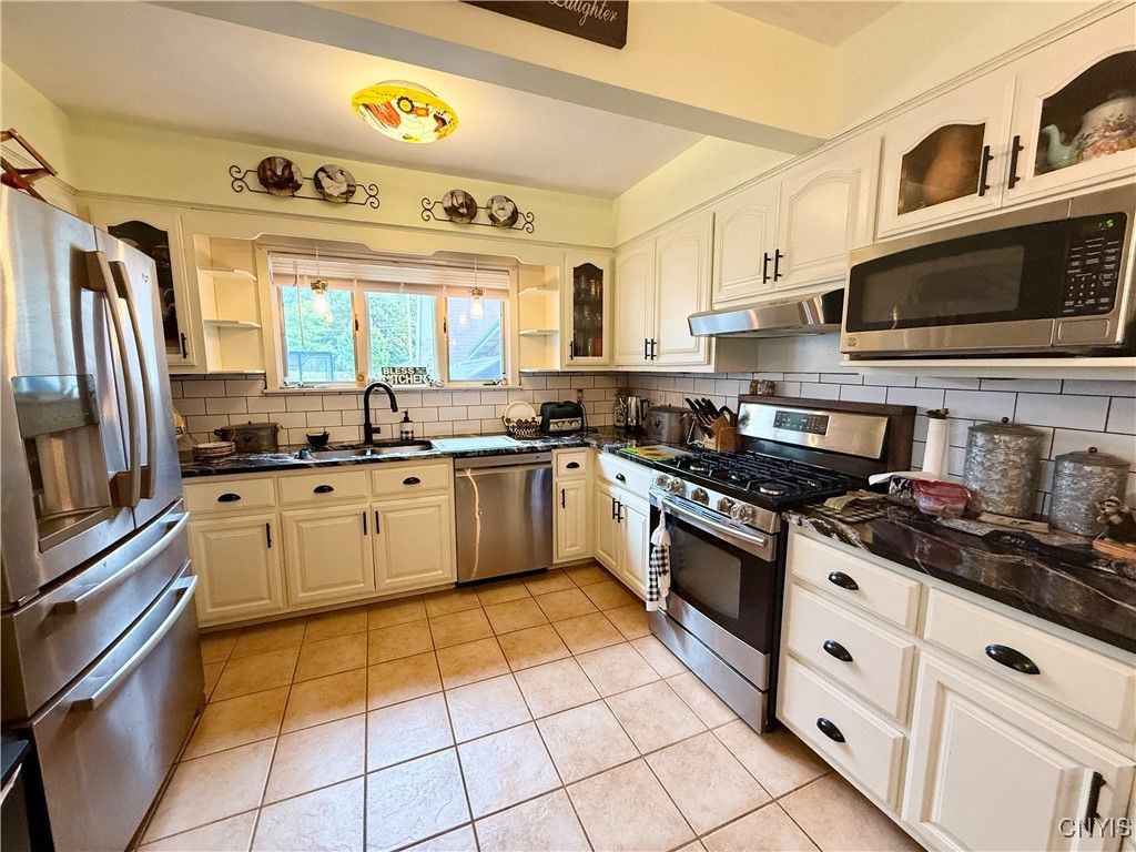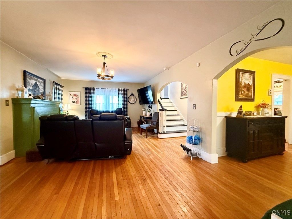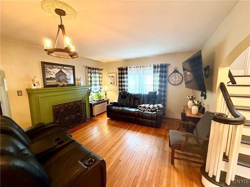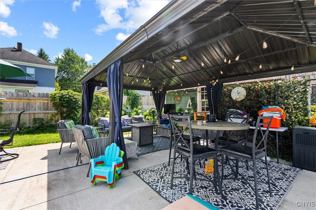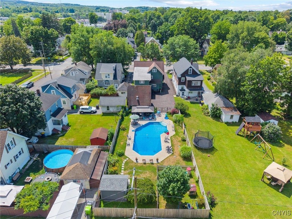 Spacious 5-Bedroom Colonial with Modern Upgrades! 3,000+ square feet of home offers the perfect blend of classic charm and contemporary updates. The kitchen boasts granite countertops, an island/breakfast bar, stainless steel appliances, & plenty of cabinet space. The first floor bedroom & full bath features a new sliding door to fenced-in, covered patio area. Four large bedrooms on the 2nd floor and 2nd full bath. The vast 3rd story attic is great for storage with easy staircase access. Additional highlights include; formal dining room, living room with fireplace, home office or library (currently used as a playroom), partially finished basement with kitchenette, "antique room" (previously wine cellar/storage), playroom, laundry room, & 1/2 bath! Backyard is fully fenced around a stunning 20x40 in-ground pool, complemented by a newly installed patio & pergola, creating the ultimate setting in summertime. Recent improvements (all done between 2021 -2025) include new central air system, new boiler, new tankless hot water tank, new garage doors, new hardtop gazebo, new cement around pool, new cement patio w/new sliding door & roof, new storage shed in back, new windows on front of house, new 1/2 bath in basement, new electric oven in basement kitchenette, new built-in bookcases in playroom/library, new pool pump, & new safety winter pool cover & more! This timeless classic is super convenient to restaurants, shopping, Turning Stone Casino, & completely move-in ready!