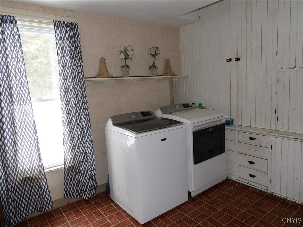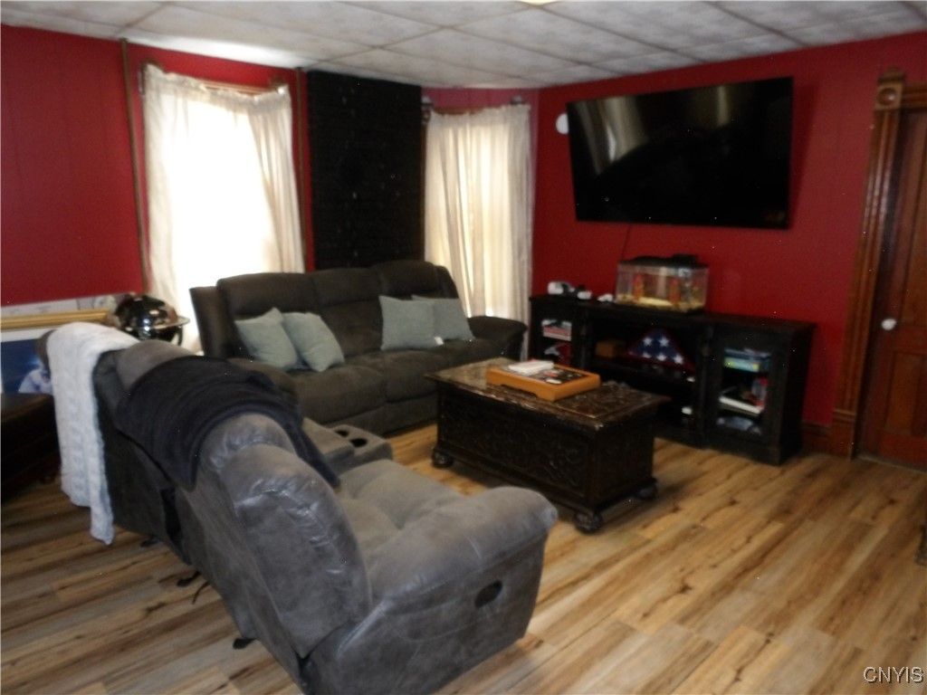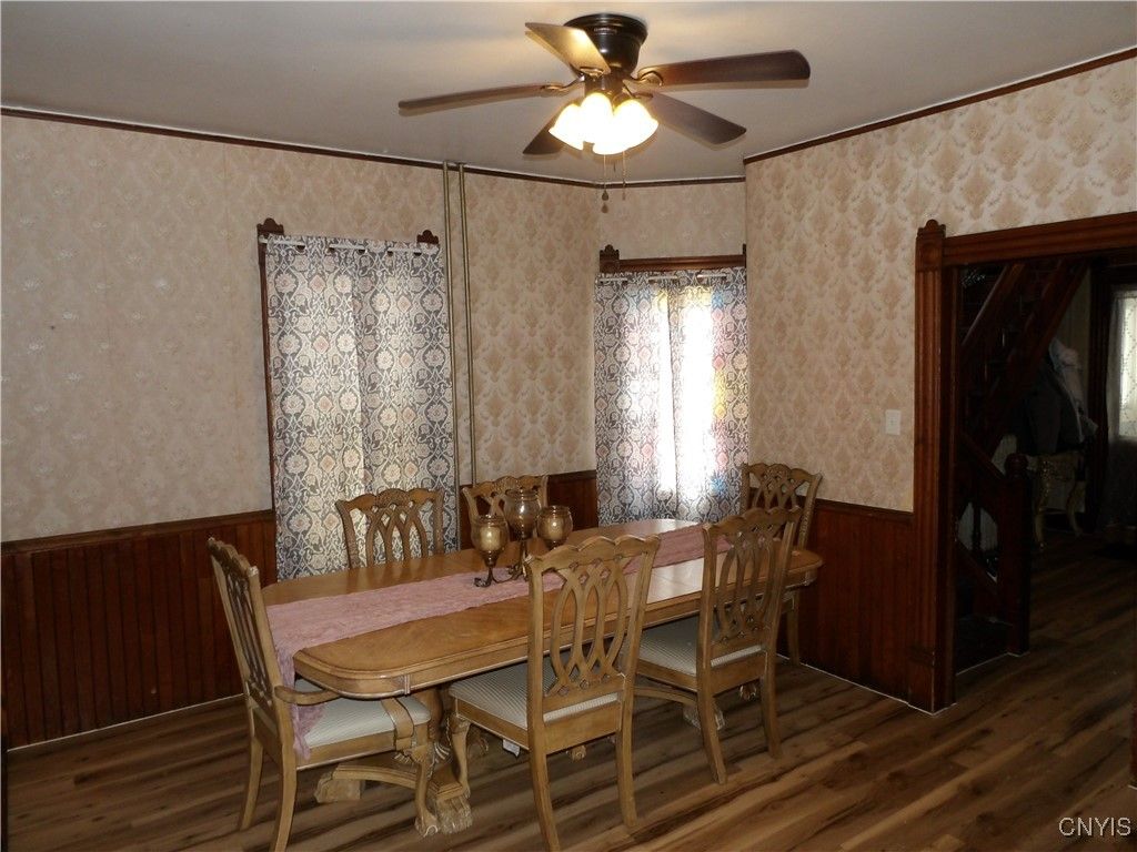 Welcome home to this spacious property located in the charming village of Homer, NY. The first floor offers a versatile layout featuring a family room, living room, formal dining room, eat in kitchen, a convenient half bath, first floor laundry, and a first-floor bedroom - perfect for guests or flexible living. Upstairs, you'll find four generously sized bedrooms, bonus room, and a large full bathroom with soaking tub and walk in shower. Step outside to enjoy the covered front porch, a deck ideal for entertaining, and a fully fenced backyard. The property is complete with a two-car detached garage. Schedule your private showing today and see all this home has to offer!