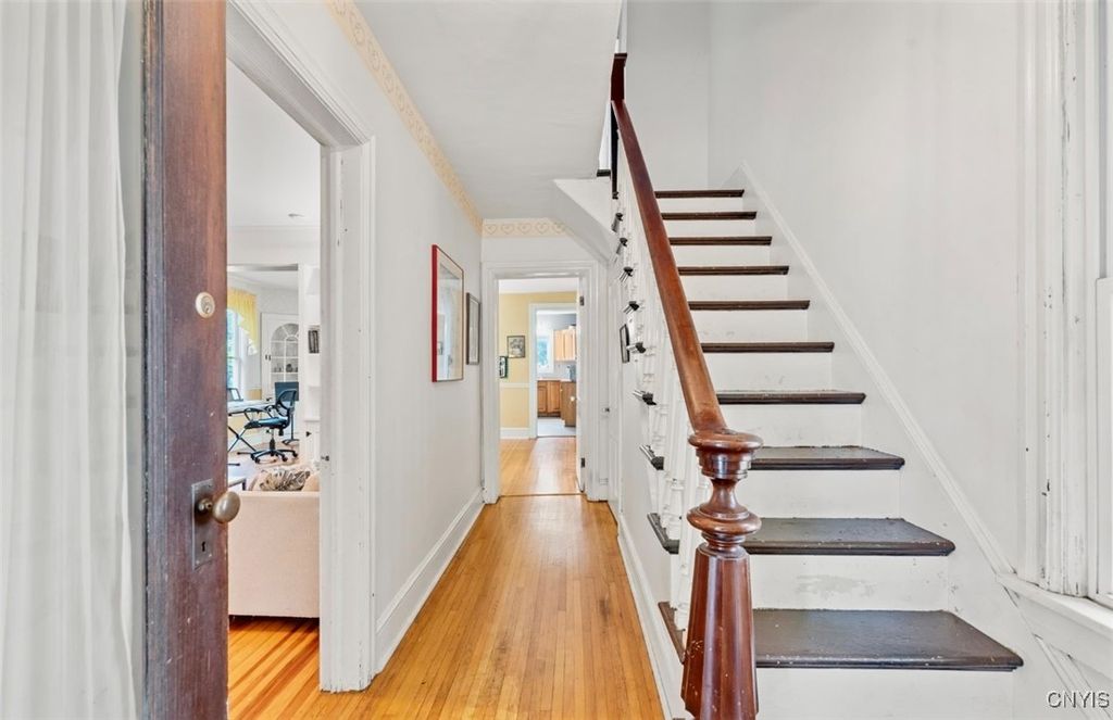 Welcome home to 7 Pendleton Street in Cortland. You will be amazed by the abundance of old world character and charm that this spacious property has to offer, including a huge yard, situated on almost a half acre in the city. This property features four bedrooms, one full-bathroom, along with tons of closet space, and storage throughout. As you enter this magnificent home you are greeted with beautiful hardwood floors that lead you to the cozy living room acquainted with built-in book shelves, and plenty of additional storage. The formal dining room is perfect for entertaining family and friends for any occasion. The Country eat-in Kitchen provides plenty of space to prepare your favorite meals, while you enjoy a great sunrise. The grand staircase will lead you upstairs to your four bedrooms, and one full bathroom. The old world character is evident throughout, with porcelain and wooden door knobs, and well maintained hardwoods. You will have added peace of mind, with many new updates, which include, upgraded electric service, newer bedroom windows, newer front and porch roof, and fresh paint throughout. Don't miss the opportunity to view this wonderful home.