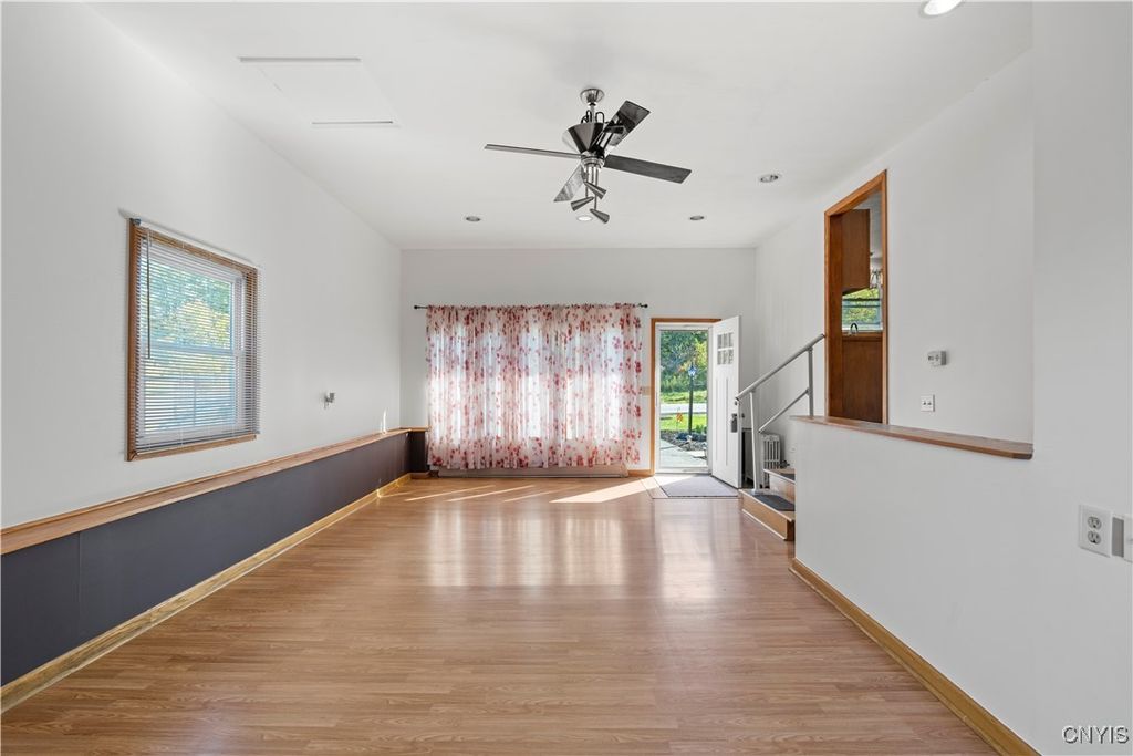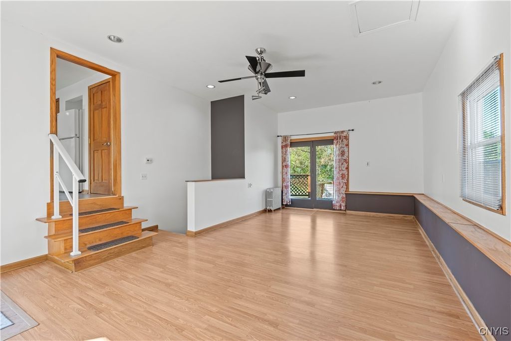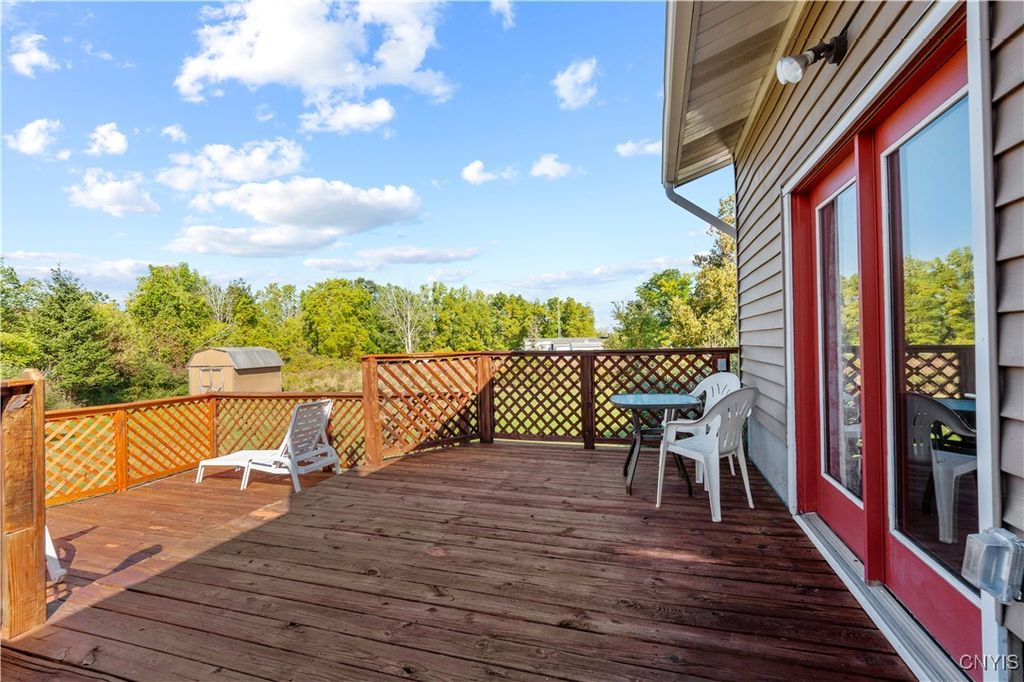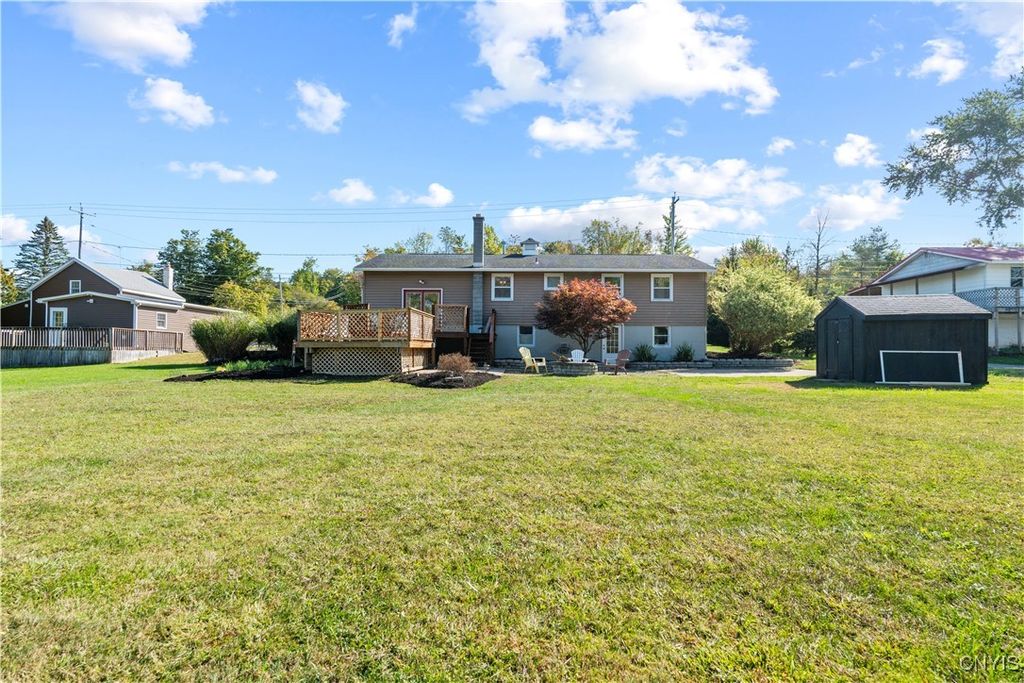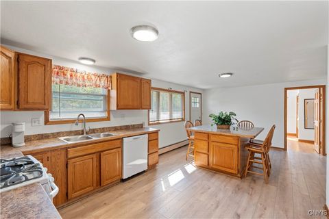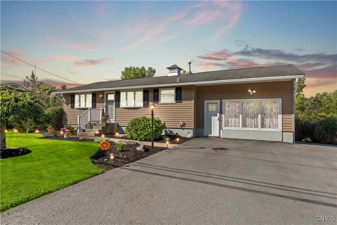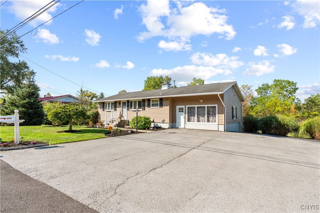 This well-crafted 3 bedroom, 1 bath Ranch home combines quality updates with comfortable living spaces. The spacious kitchen is a standout, featuring a huge center island, two pantries, brand-new appliances, and abundant storage. The bright, open living room adds an addition 384 sq. ft. and offers elevated ceilings, natural light, and walk-out access to a deck overlooking the private, wooded backyard. All three bedrooms are generously sized. The primary bedroom offers a versatile bonus room that could serve as a walk-in closet, home office, additional bedroom, or future ensuite bath.The finished walkout basement adds approximately 900 sq. ft. of living space, complete with a large rec room and family room ideal for entertaining or hobbies! Recent updates include interior paint, windows, landscaping and all major mechanicals. Large shed for additional storage needs. Within the Chittenango School District and property is USDA eligible! Delayed showings begin Saturday, 9/20 at 5:00 PM. Open house Sunday, 9/21 from 11:00 AM - 1:00 PM.