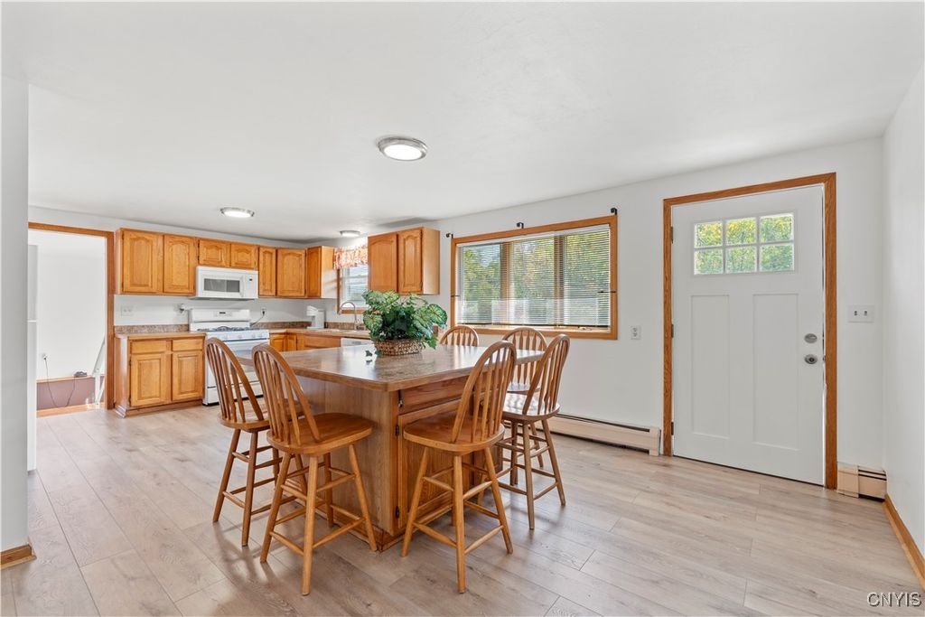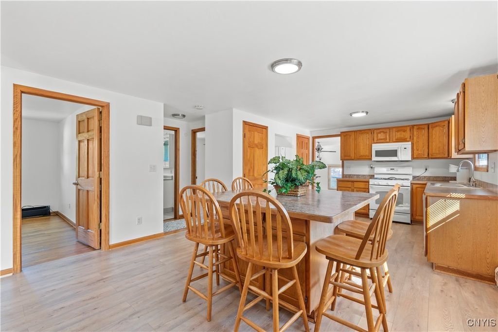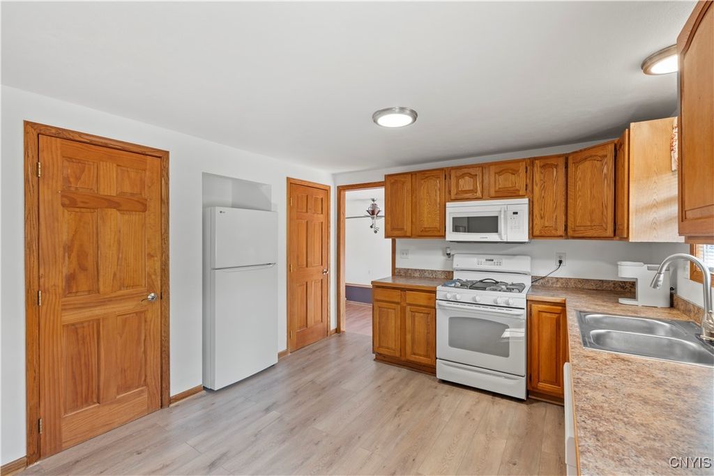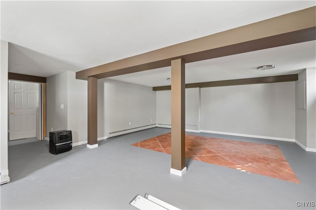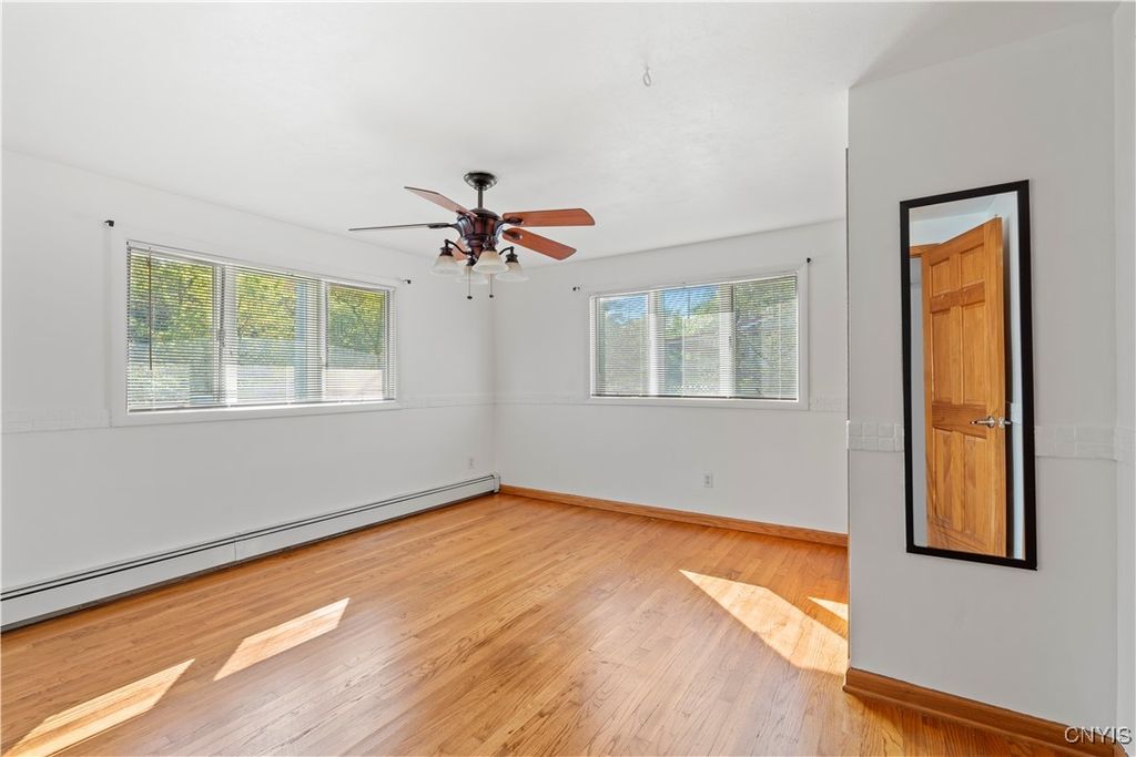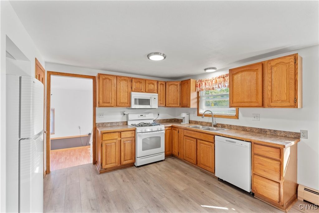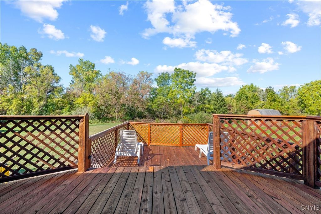 This well-crafted 3 bedroom, 1 bath Ranch home combines quality updates with comfortable living spaces. The spacious kitchen is a standout, featuring a huge center island, two pantries, brand-new appliances, and abundant storage. The bright, open living room adds an addition 384 sq. ft. and offers elevated ceilings, natural light, and walk-out access to a deck overlooking the private, wooded backyard. All three bedrooms are generously sized. The primary bedroom offers a versatile bonus room that could serve as a walk-in closet, home office, additional bedroom, or future ensuite bath.The finished walkout basement adds approximately 900 sq. ft. of living space, complete with a large rec room and family room ideal for entertaining or hobbies! Recent updates include interior paint, windows, landscaping and all major mechanicals. Large shed for additional storage needs. Within the Chittenango School District and property is USDA eligible! Delayed showings begin Saturday, 9/20 at 5:00 PM. Open house Sunday, 9/21 from 11:00 AM - 1:00 PM.