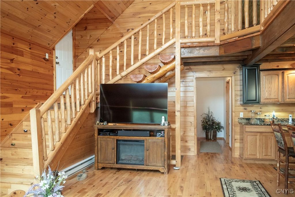 Charming Log-Sided Home Near Tug Hill ! Welcome to this fully furnished 3-bedroom, 2-bath log-sided home, offering the perfect blend of rustic charm and modern comfort, with direct access to the main snowmobile trail!! Featuring an open floor plan, the home's centerpiece is a spacious kitchen with a large granite island, perfect for gathering and entertaining. The inviting great room opens to a deck, ideal for enjoying the serene surroundings. An oversized 2 - stall garage with a workshop area provides plenty of space for vehicles and projects, while an additional unfinished bonus room offers endless possibilities- convert it into a fourth bedroom, home theater or a game room to suit your needs. Set on 1.25 acres, the property includes two separate storage buildings, perfect for gardening tools, snowmobiles or summer and winter gear. With 9 -foot ceilings in the expansive basement, there's even more potential for a lower- level rec room or additional living space. Outdoor enthusiasts will love the easy access to Tug Hill's endless snowmobile trails, while the home's proximity to Boonville restaurants, golf course and shops ensures convenience year-round. This move-in-ready, newly stained home, has space, comfort and adventure built right in- don't miss the chance to make this yours!