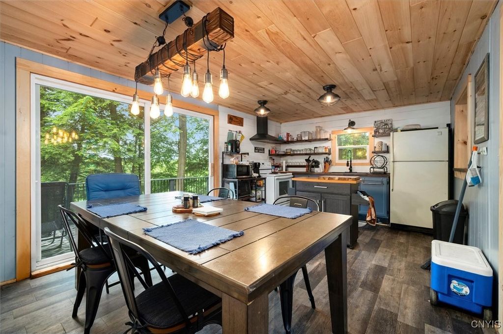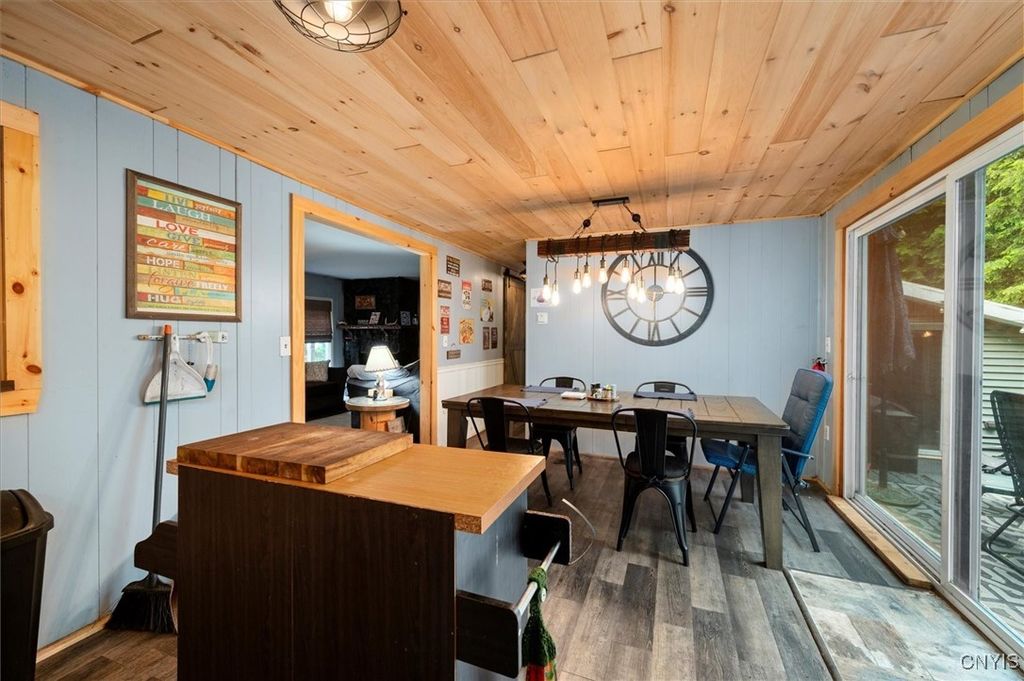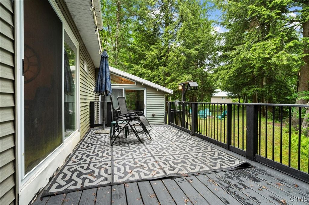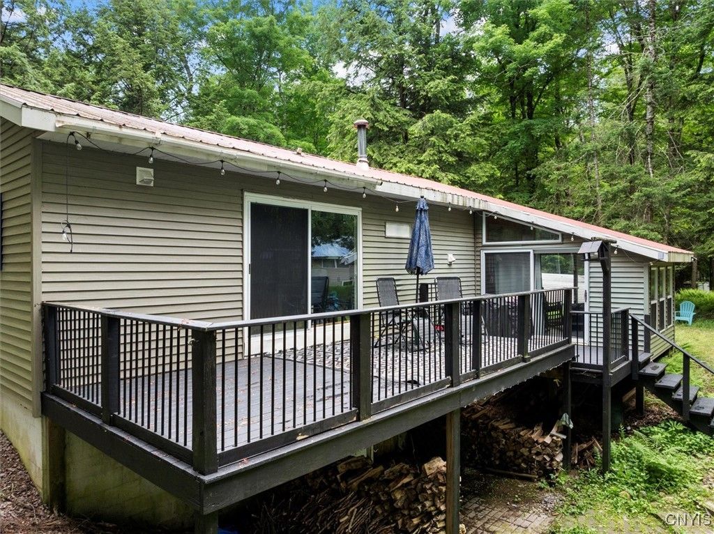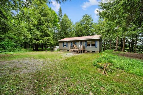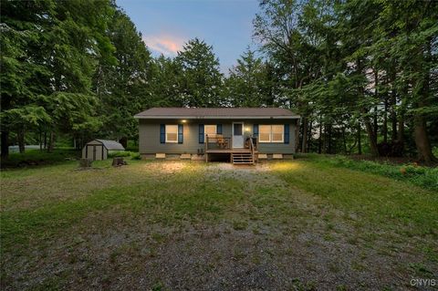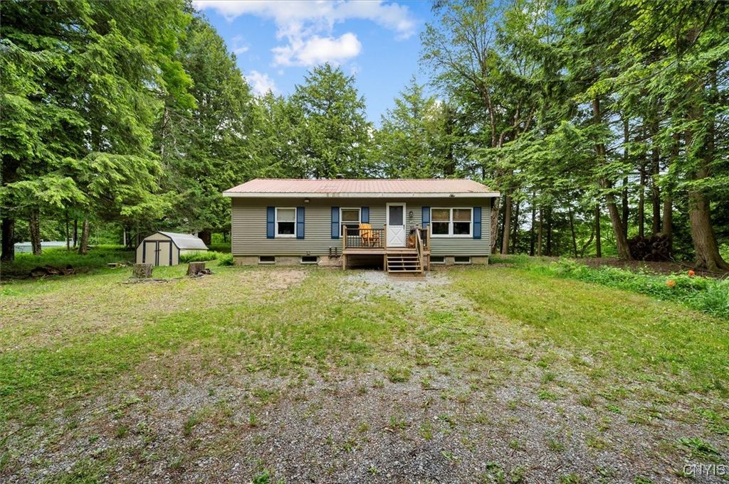 Situated along the Black River, you'll find this charming, one story ranch style home. With winter comes snowmobiling, shoe shoeing and x country skiing. In under 3 miles, hop on the S73 and 837 trails that can bring you to the C7 trail headed toward Old Forge and beyond!. There are beautiful trails for snowshoeing and X country skiing nearby. Spend the summer months fishing, boating, or enjoying the serene beauty of the river as it gently winds through the forest, with the added bonus of quick access to the stunning open waters of Kayuta Lake, perfect for exploration and adventure. This location is a true paradise for those who appreciate wildlife and tranquility. Inside, you'll discover two comfortable bedrooms and a full bathroom with laundry facilities. The master bedroom features convenient access to the bathroom and opens up to a beautiful sunroom through a sliding glass door. The common area is ideal for socializing and cooking with family and friends. Additionally, the walk-out basement serves as a mini movie theater and recreation room, with the potential to be finished into a third bedroom. This property is the perfect place to escape the hustle and bustle of life to relax and rejuvenate!