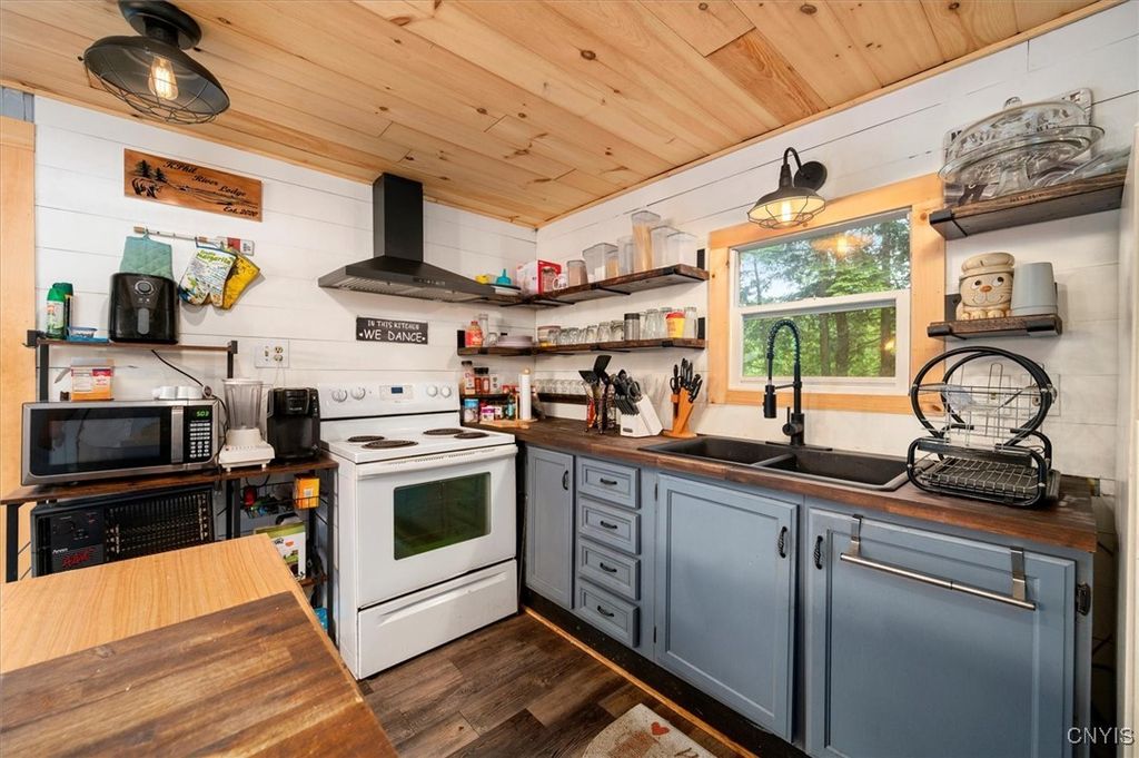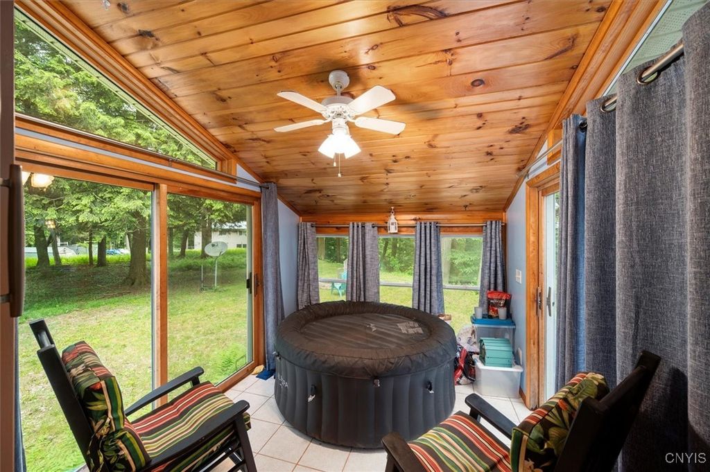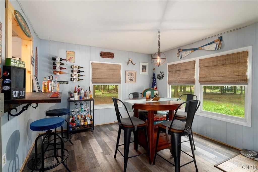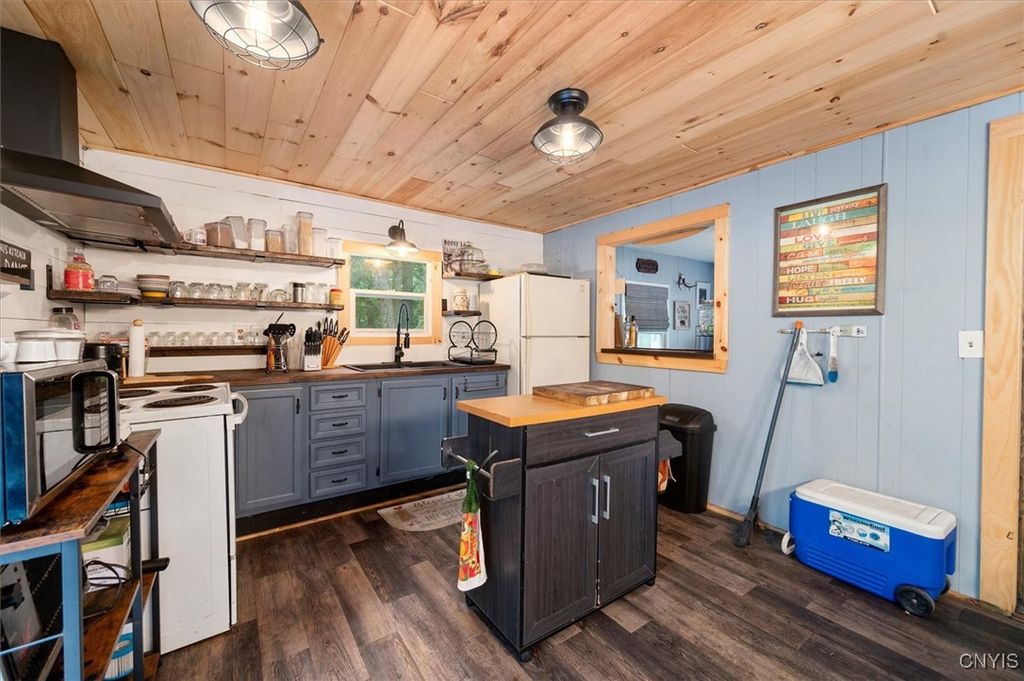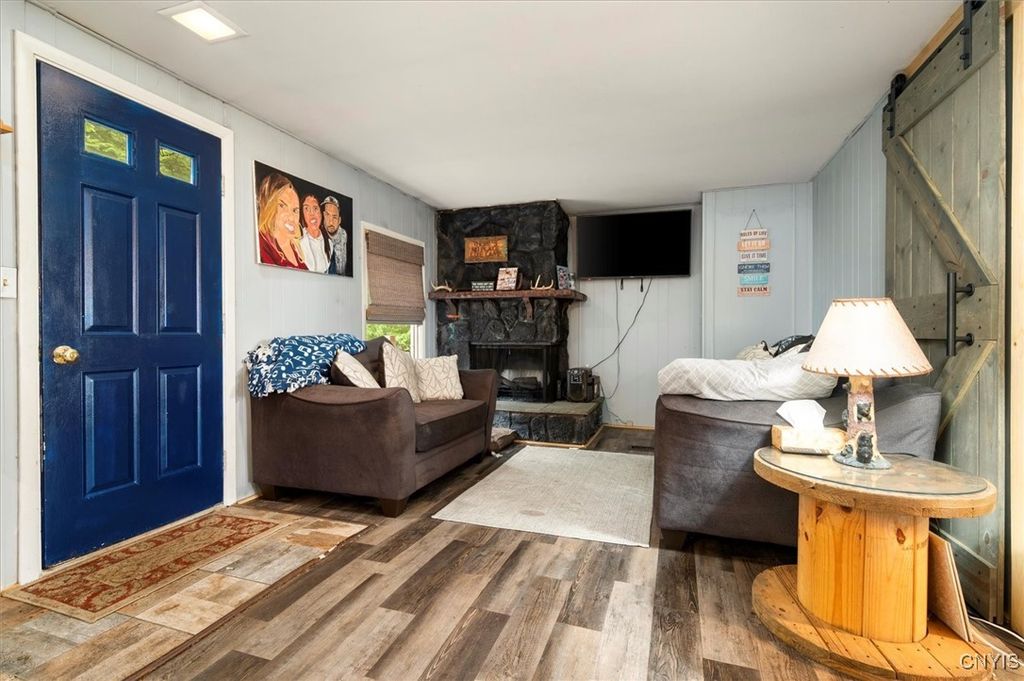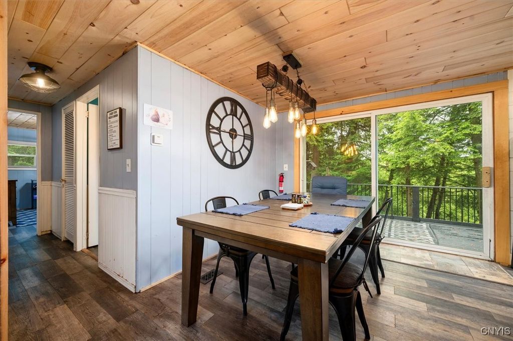 Situated along the Black River, you'll find this charming, one story ranch style home. With winter comes snowmobiling, shoe shoeing and x country skiing. In under 3 miles, hop on the S73 and 837 trails that can bring you to the C7 trail headed toward Old Forge and beyond!. There are beautiful trails for snowshoeing and X country skiing nearby. Spend the summer months fishing, boating, or enjoying the serene beauty of the river as it gently winds through the forest, with the added bonus of quick access to the stunning open waters of Kayuta Lake, perfect for exploration and adventure. This location is a true paradise for those who appreciate wildlife and tranquility. Inside, you'll discover two comfortable bedrooms and a full bathroom with laundry facilities. The master bedroom features convenient access to the bathroom and opens up to a beautiful sunroom through a sliding glass door. The common area is ideal for socializing and cooking with family and friends. Additionally, the walk-out basement serves as a mini movie theater and recreation room, with the potential to be finished into a third bedroom. This property is the perfect place to escape the hustle and bustle of life to relax and rejuvenate!