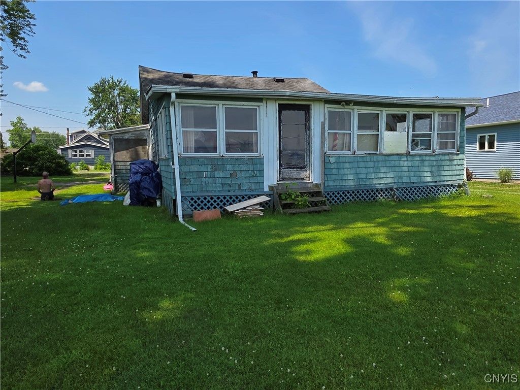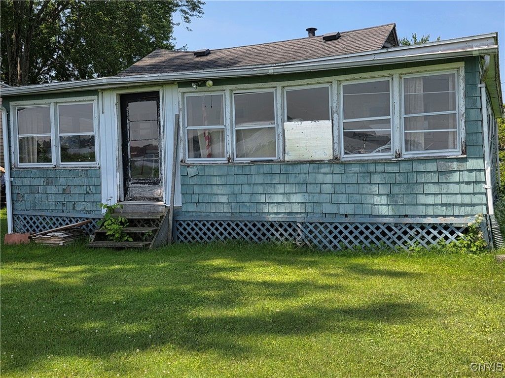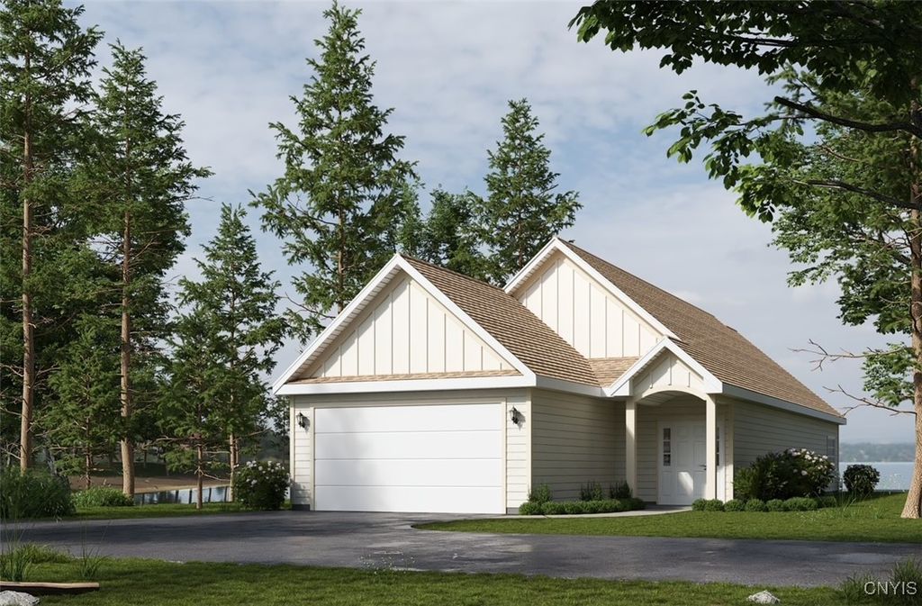 Seller now willing to sell as camp; but would really like to see a new, custom home built there as suggested in last 6 images. More photos to come of camp itself. Your opportunity to be the 1st built home in Damon Point Development. Martin Custom homes, in conjunction with KK-J Architecture, PLLC and the seller are offering this proposed 1605 sq. ft. 3 bedroom, 2 full bath ranch on a 50' x 200' lot with 57' of prime Oneida Lake waterfront. Enjoy the view from your vaulted-ceiling great room looking past your 475' Trex deck to your future dock. There is a gas fireplace in your great room for those chilly Upstate nights and central-air connected to your 96% efficient gas-fired furnace to be comfortable year round. Your kitchen shows both a breakfast bar and a separate eating area where you can enjoy the water view. Plenty of cabinets and a separate pantry let you stock up for family and friend gatherings. The primary bedroom features an en-suite full bath and is located adjacent to the great room, while the other 2 bedrooms are more secluded from the greatroom so as not to disturb children's sleep. Martin Custom Homes knowledge and experience has included adequate allowances for you to pick the colors and designs of most of the interior items that make a custom home your own. They will also work with buyers if they have a different idea of what they want to build on this prime site and have built in an allowance for site work. Please see the proposed floor plan and spec sheets with allowances in the photo section.